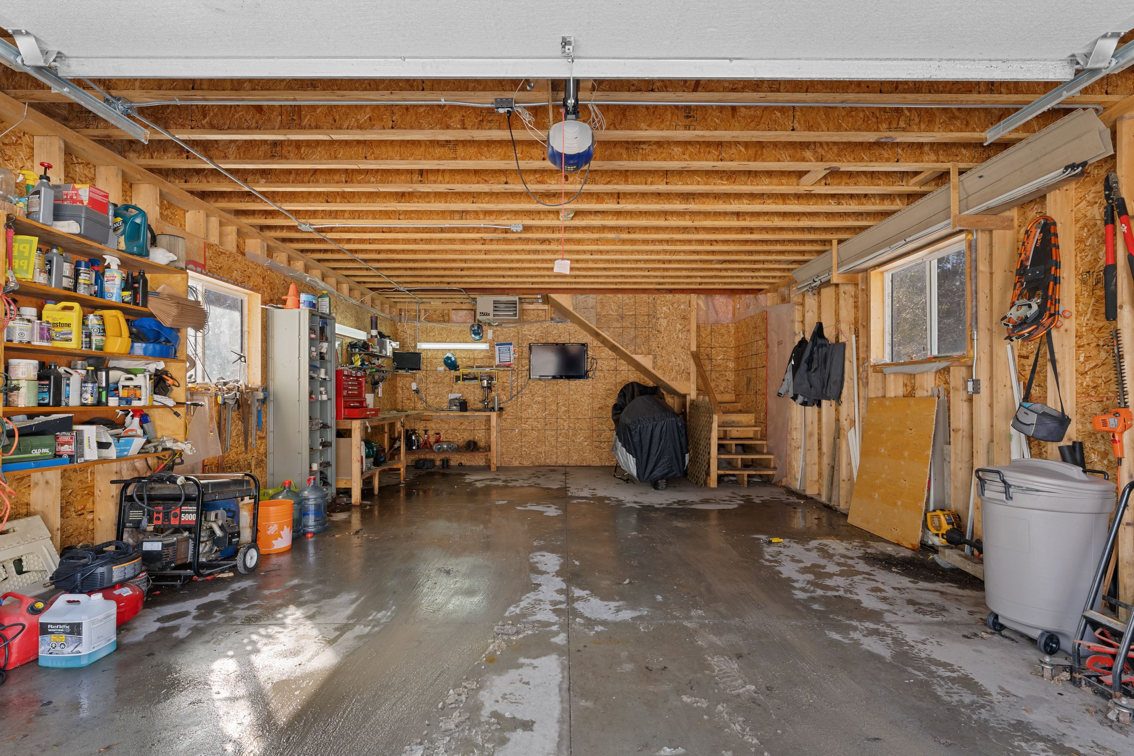• Heated garage with loft offers ample storage and workshop potential.
