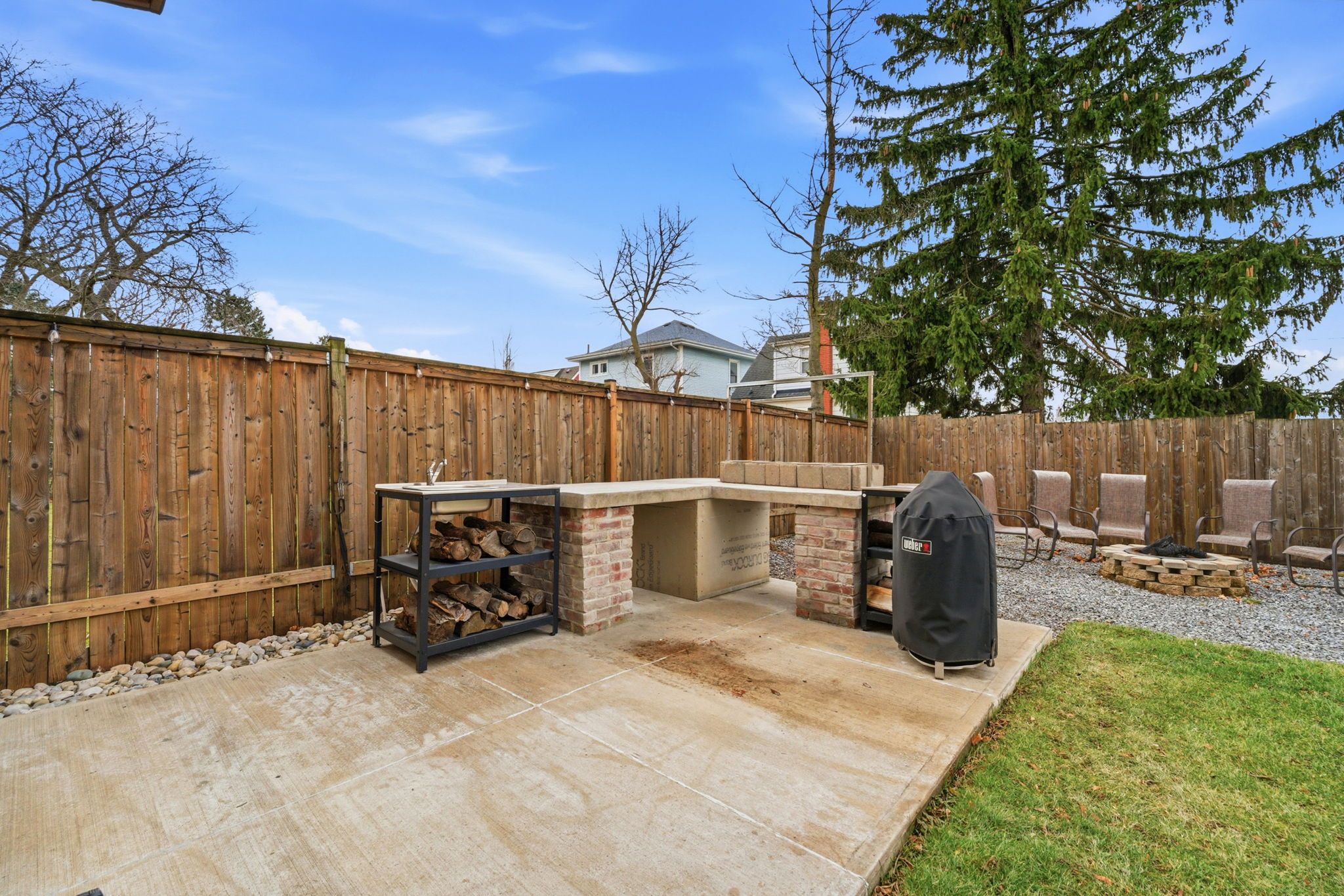 • Fully landscaped backyard includes outdoor kitchen setup with built-in BBQ.
