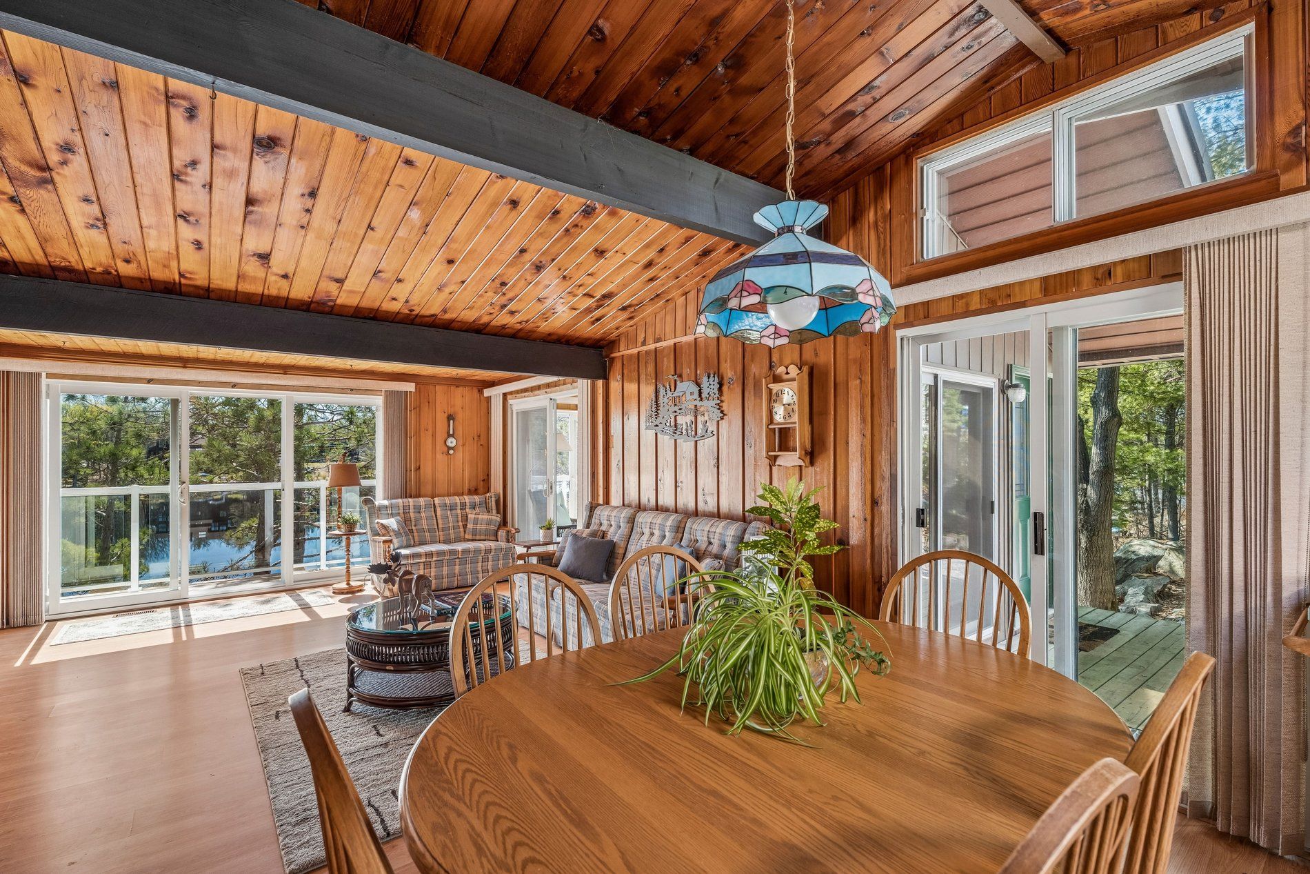 Welcome to this beautifully maintained waterfront family home on charming loon lake, offering southwest exposure and peaceful lakefront living less than two hours from the gta. Proudly owned by the same family since the 1960s, this 2-bedroom, 2-bath bungalow offers over 1,200 sq ft of living space with a full unfinished basement featuring workshop potential. Thoughtfully winterized for year-round use, the property is situated on a municipally maintained road with garbage collection and snow removal. Enjoy stunning lake views from large windows throughout, a bright sunroom, and a spacious deck overlooking the water. Custom permanent inlaid granite stone steps lead you down to your private dock - perfect for morning coffee or quiet evenings by the lake. The recently updated spa-inspired bathroom features a large walk-in stone shower and large jetted tub. Additional features include a propane furnace, propane fireplace, bbq hookup, generator, tile roof, well-maintained septic system, and private well water source. Ample storage is found throughout the home, along with multiple levels of landscaped grading that enhance usability and outdoor enjoyment. Two large garages provide exceptional space for vehicles, boats, jet skis, and all your cottage essentials, with additional workshop potential. Located just minutes from downtown gravenhurst and close to highway 11, enjoy convenient access to local shops, dining, and the gravenhurst wharf, offering a vibrant waterfront community experience. A rare opportunity to own a true legacy property on loon lake - ready for a new family to enjoy for generations to come.