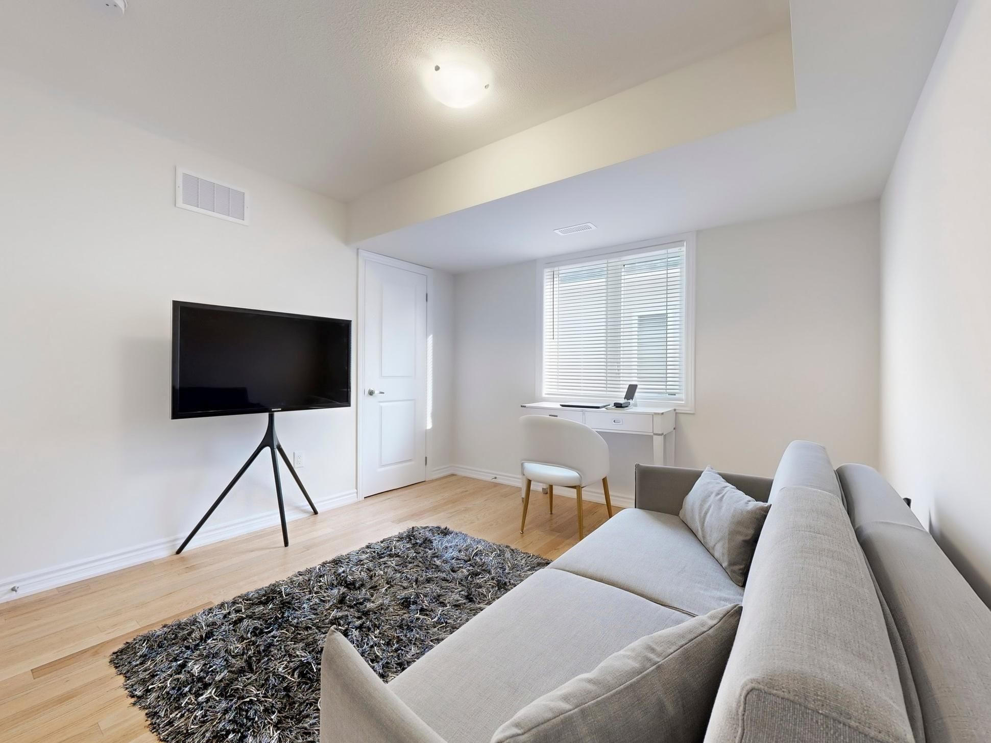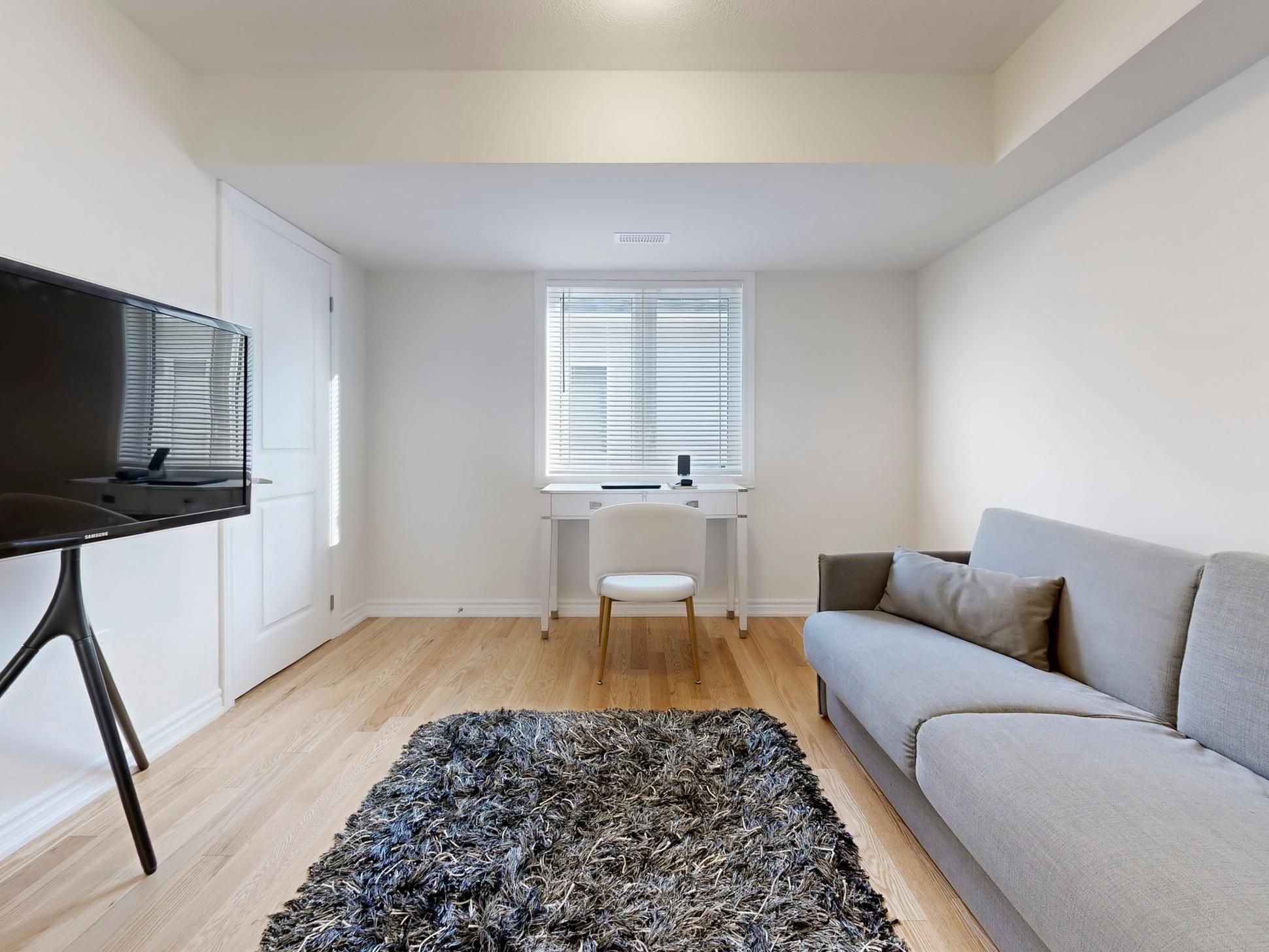 • Fully finished basement with extra bedroom and high ceilings for additional space.