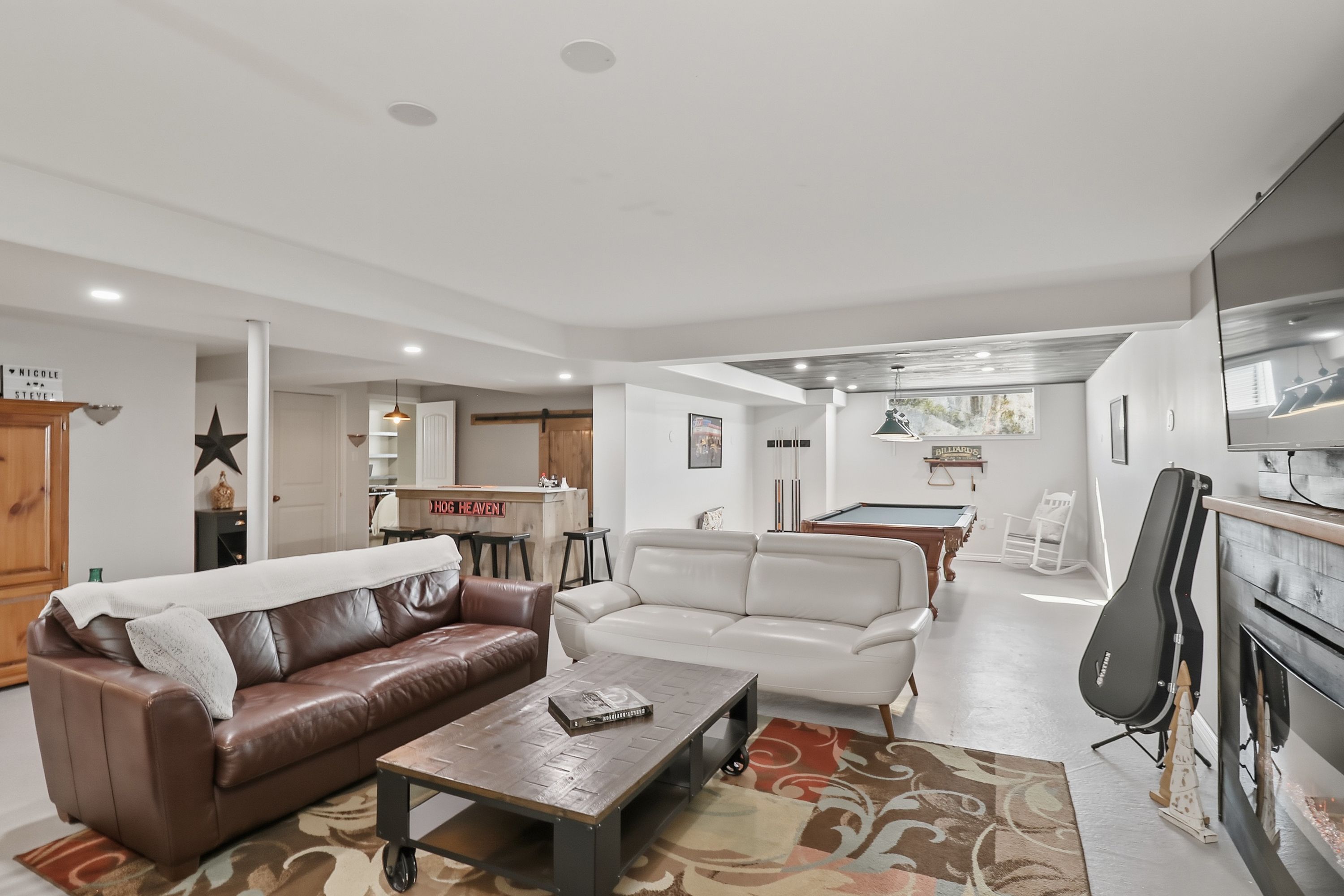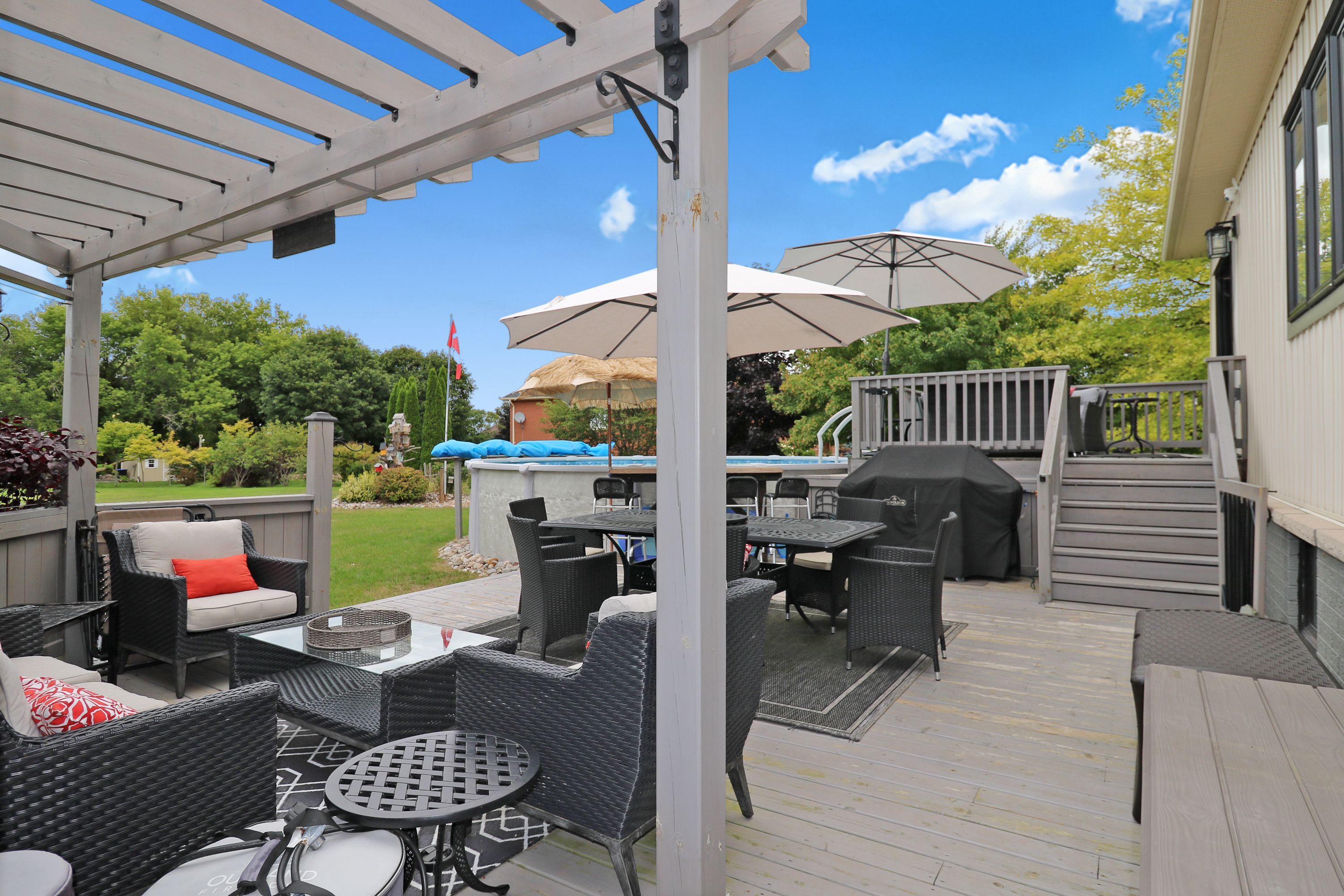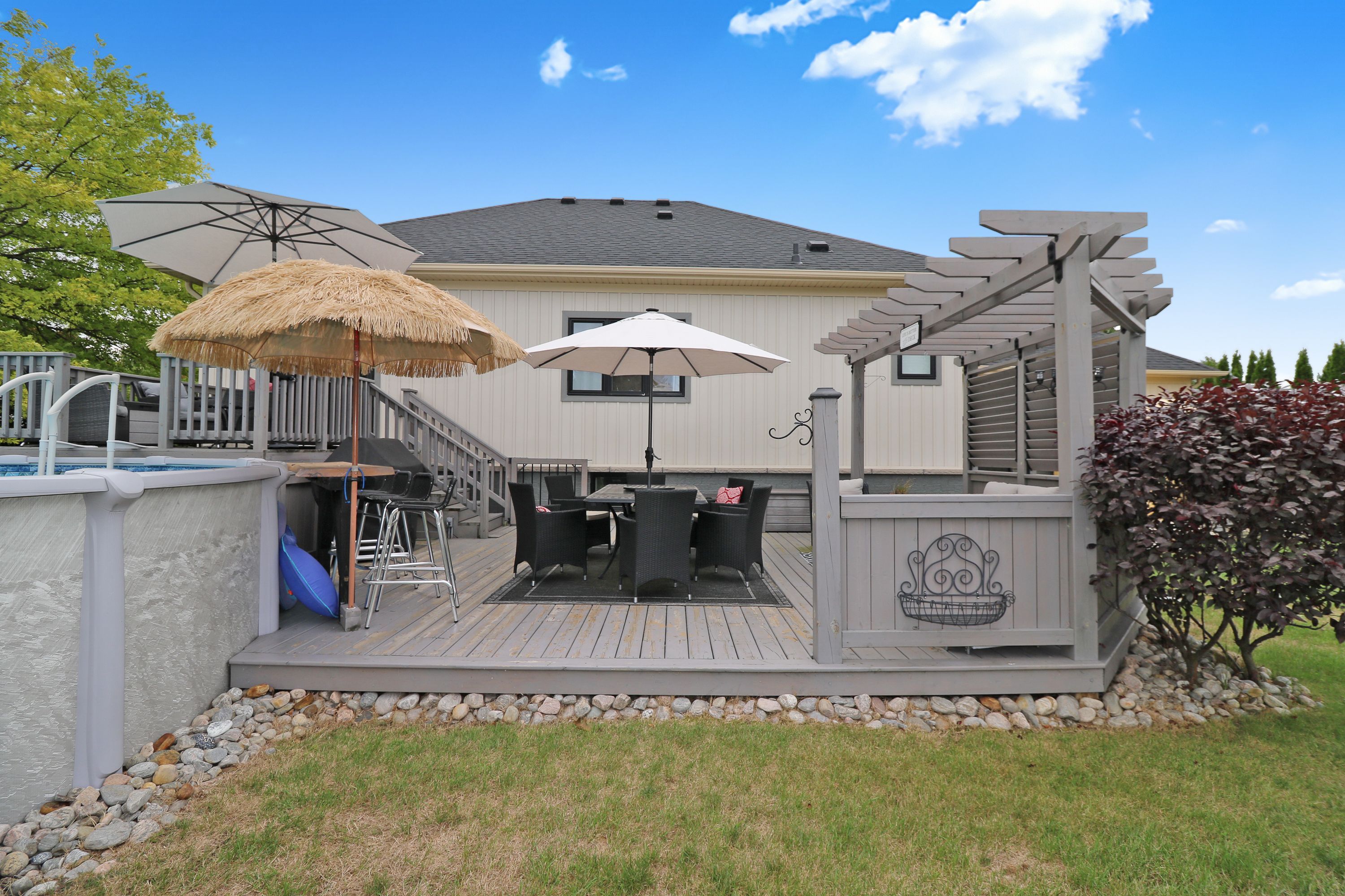 "wasaga sands," one of wasaga beach's most sought-after communities. This beautifully cared-for executive bungalow offers amazing value in a neighbourhood surrounded by luxury homes. Set on over three quarters an acre with 1,500 sq ft on the main level plus a fully finished basement, giving you plenty of space to live, relax, and entertain. The flexible layout is perfect for families, couples, retirees, or anyone looking to downsize without giving up comfort. Inside, you'll love the bright and inviting feel. The cozy front living room is separate from the eat-in kitchen, creating warm and functional spaces for everyday life. The main floor features 3 bedrooms, a full family bath, and a private ensuite in the primary bedroom. The finished basement adds even more room with an extra bedroom and a large rec room, perfect for movie nights, a games room, home gym, guest space, or family gatherings. The basement rough in bathroom can be accessed by the bedroom door to create an ensuite or semi ensuite. Step outside to enjoy the peaceful oversized yard, a 2-tier deck, and an above-ground gas heated pool-ideal for summer fun and outdoor entertaining. Located just minutes from golf, trails, shopping, and the world's longest freshwater beach, this home also offers easy access to collingwood and blue mountain village. This is a rare chance to own a standout home in one of wasaga beach's finest estate communities.