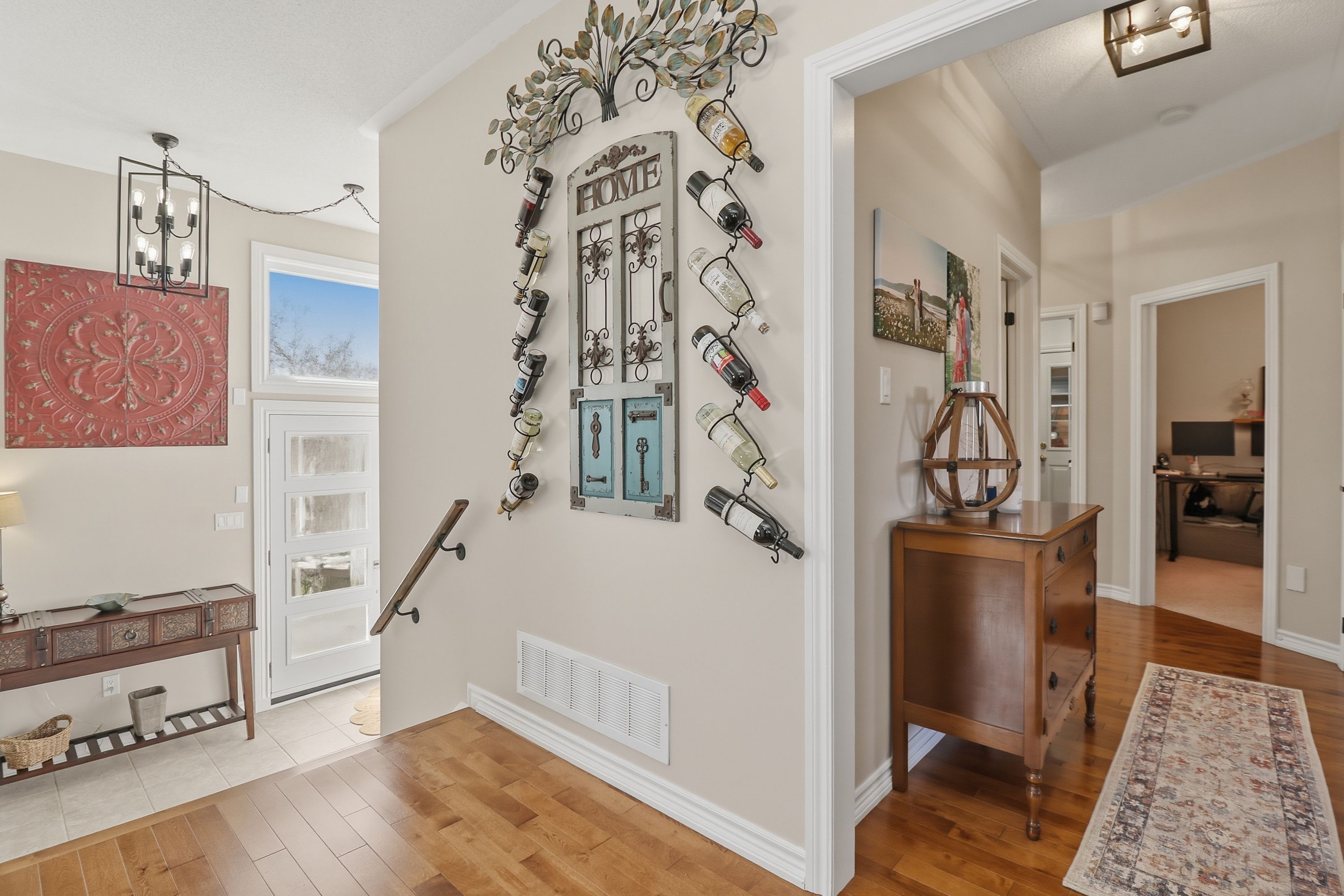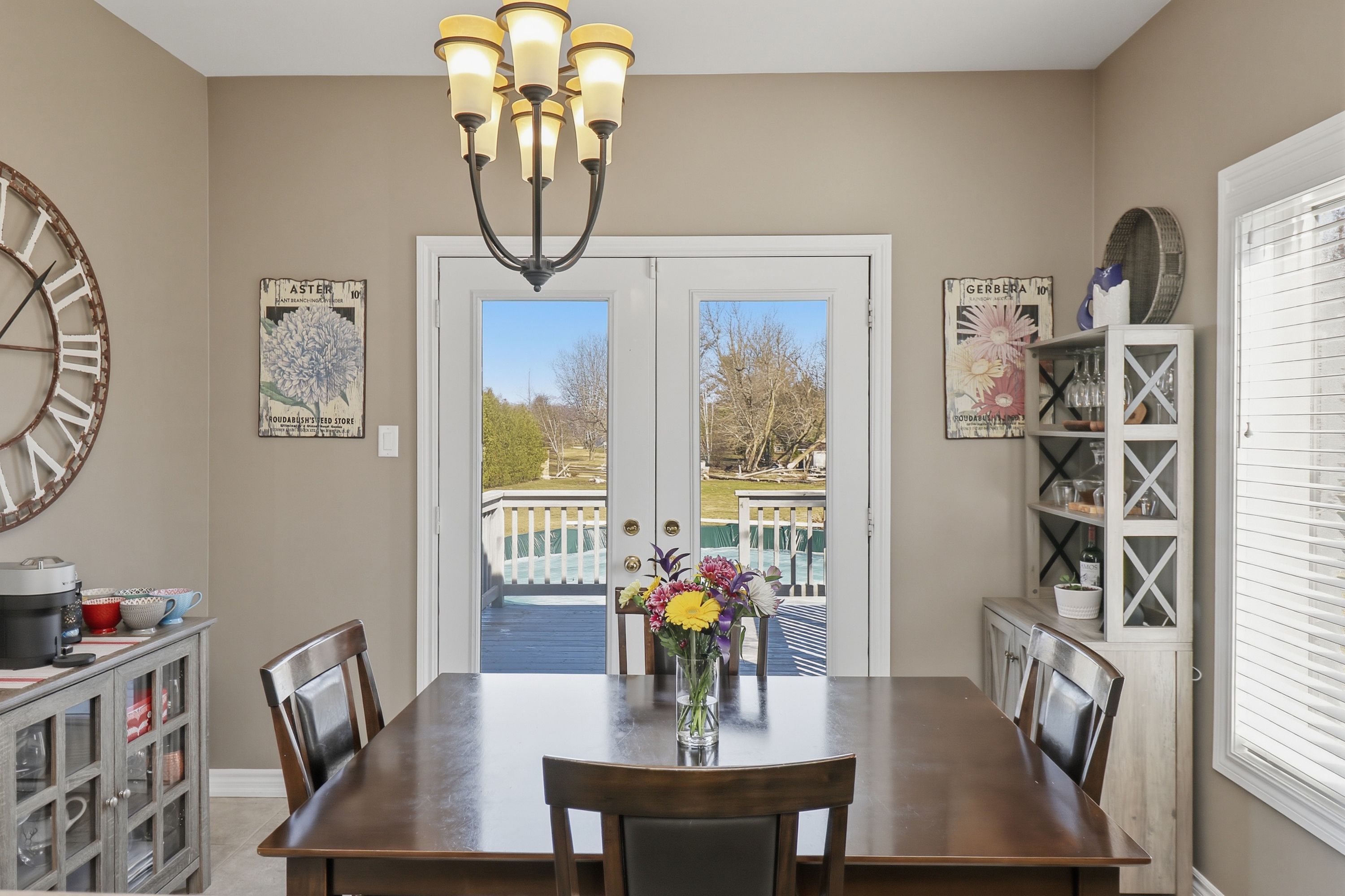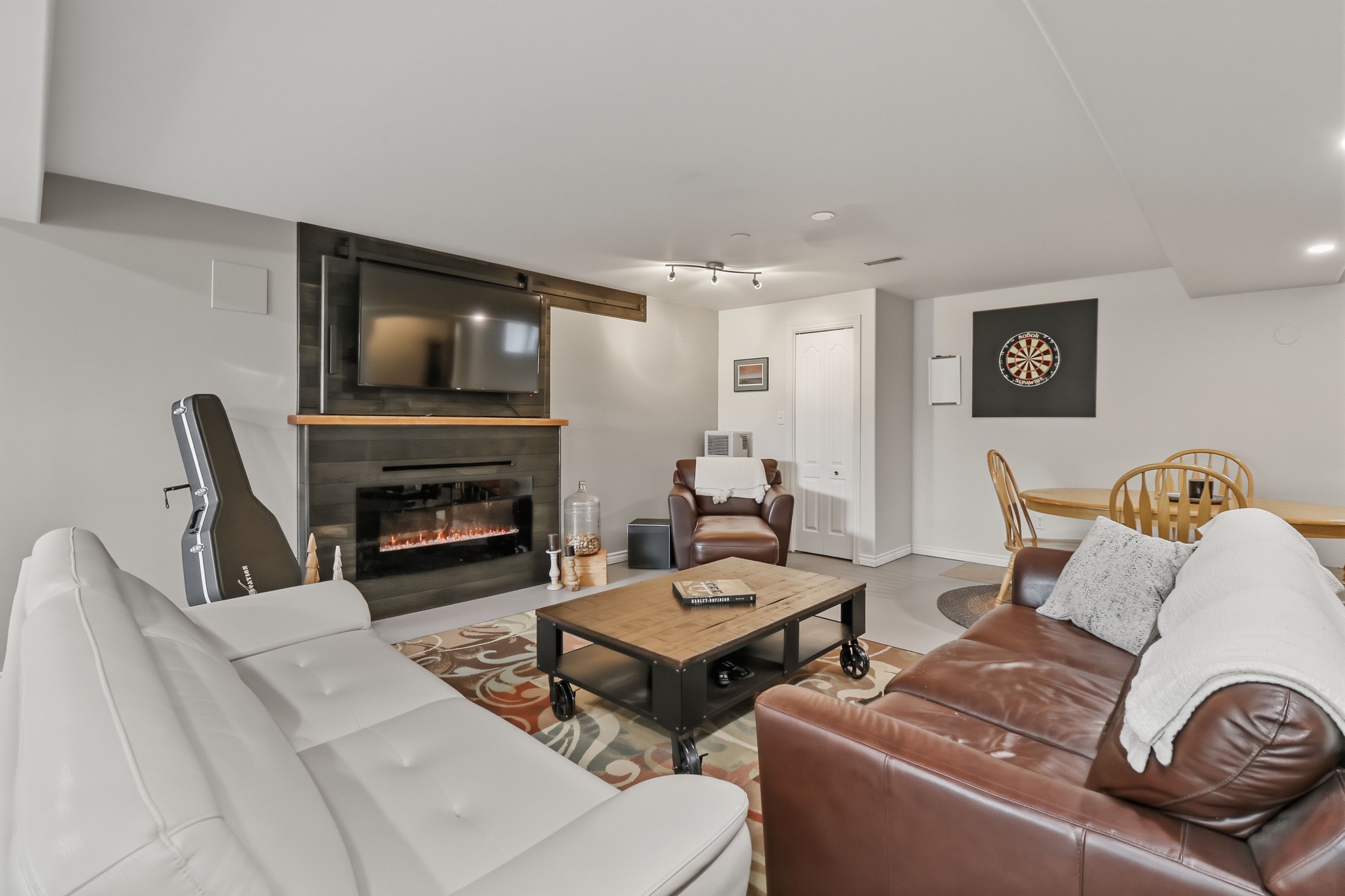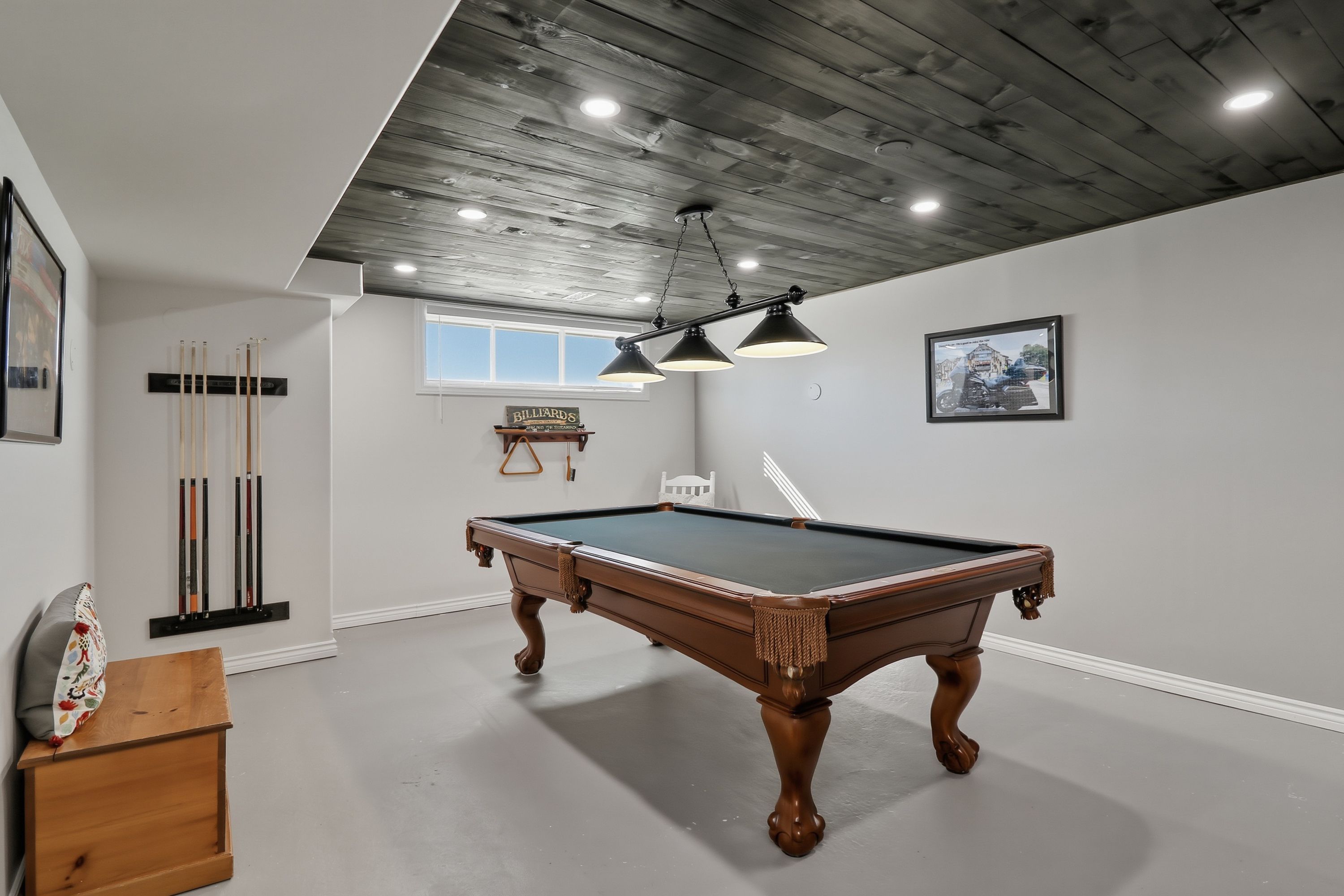"wasaga sands," one of wasaga beach's most sought-after communities. This beautifully cared-for executive bungalow offers amazing value in a neighbourhood surrounded by luxury homes. Set on over three quarters an acre with 1,500 sq ft on the main level plus a fully finished basement, giving you plenty of space to live, relax, and entertain. The flexible layout is perfect for families, couples, retirees, or anyone looking to downsize without giving up comfort. Inside, you'll love the bright and inviting feel. The cozy front living room is separate from the eat-in kitchen, creating warm and functional spaces for everyday life. The main floor features 3 bedrooms, a full family bath, and a private ensuite in the primary bedroom. The finished basement adds even more room with an extra bedroom and a large rec room, perfect for movie nights, a games room, home gym, guest space, or family gatherings. The basement rough in bathroom can be accessed by the bedroom door to create an ensuite or semi ensuite. Step outside to enjoy the peaceful oversized yard, a 2-tier deck, and an above-ground gas heated pool-ideal for summer fun and outdoor entertaining. Located just minutes from golf, trails, shopping, and the world's longest freshwater beach, this home also offers easy access to collingwood and blue mountain village. This is a rare chance to own a standout home in one of wasaga beach's finest estate communities.