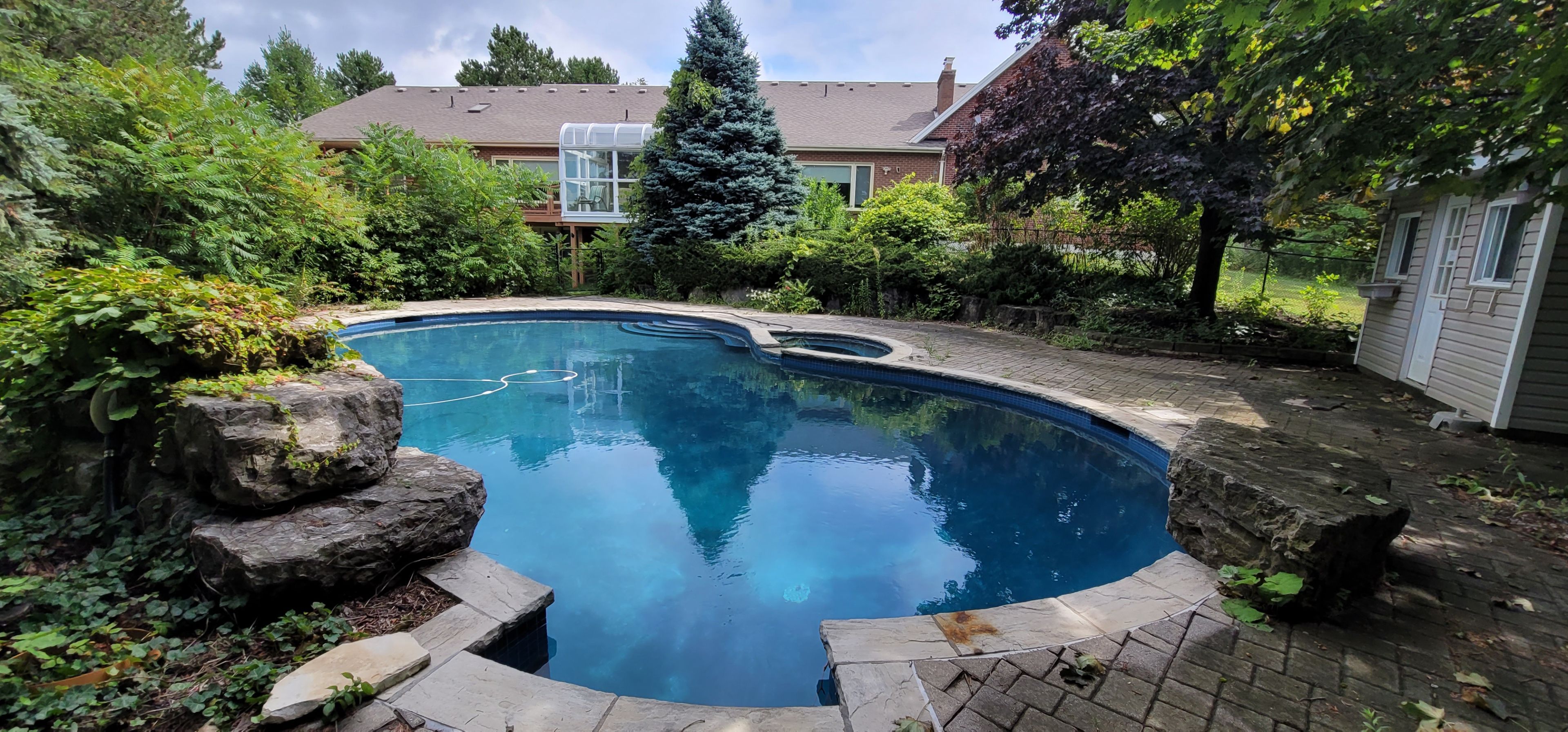 Rare-find gem- one of a kind bungalow with stone front. 2 arce scenery land + approx. 9000 sq. Ft. Living space! Hiding in quiet countryside but close to vivid city living. 13' high cathedral ceiling in living room. Abundant natural light via high windows & skylight. Four (4) huge en-suite bedrooms, plus library and other 3 bedrooms. Open concept kitchen w/ large center island & granite countertop. Marble and hardwood floor throughout entire house. Walk-out basement to backyard. Inground heated pool and spa surrounded by mature landscaping. Four (4) car garage & circular driveway. Huge sun-filled glass-enclosed sunroom and deck overviewing beautiful backyard. 3 sets of furnace and central air conditioning. Back-up power supply--generator for emergency electricity. Few minutes to hwy 404. Close to shopping mall, grocery, restaurants and go station.