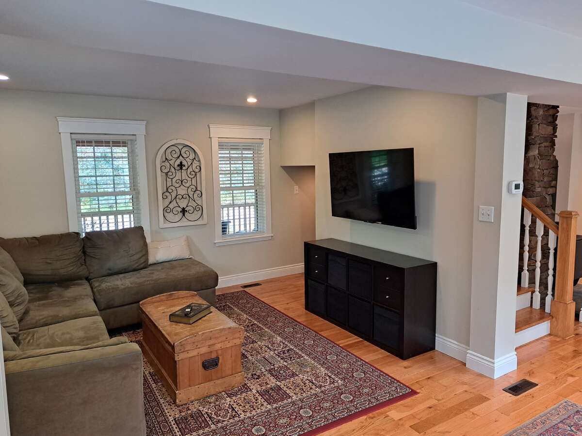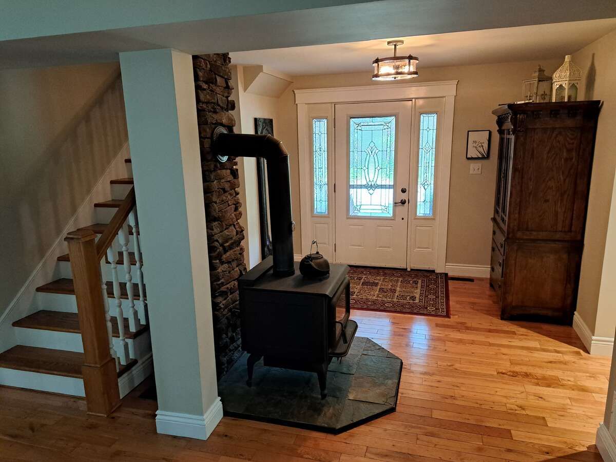For more info on this property, please click the brochure button. Beautiful three-bedroom, three-bath property sitting on a quiet dead end street. Enjoy relaxing in the hammock on the large covered front deck (57 x 8) or chose the rear deck (25 x 10), which overlooks a small stream running through mature trees in a park-like setting. This home was completely renovated in 2008 including all new wiring, plumbing, mechanical, windows, roof, siding, landscaping, well, septic tank, and more. Many of the original features of the original home were preserved, including a centrally located chimney and much of the mill work, which contributes to the unique character of this home. Custom features include sound-proofing insulation in all bathroom and bedroom walls and in-floor heating in the master bath. The large detached garage (24 x 36) is fully insulated and includes three oversized bays and an upper level perfect for a woodworking or additional storage. The back barn (23x11), which is also insulated and heated is perfect for a home gym or guest bunkie, and it has great potential for a legal adu. If you are looking for peaceful country living in town, this is the property for you.