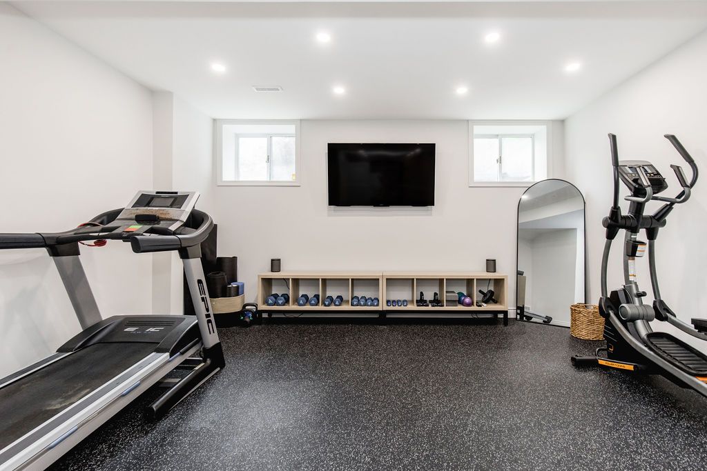 • Bright finished basement with gym, guest room, and heated floors.