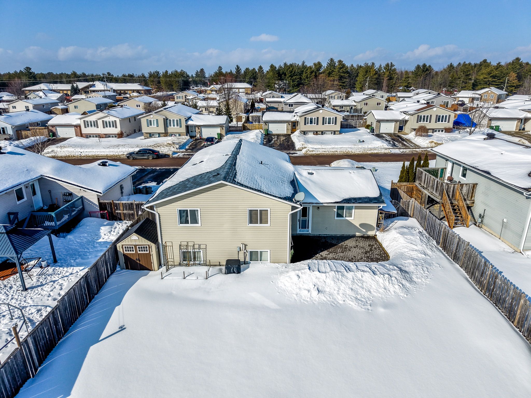 This well-maintained home is walking distance to valour (k-12) and st. Francis (k-6)schools, petawawa terrace park, restaurants, shops, a short drive to petawawa point beach/boat launch and a 5-minute commute to garrison petawawa. The large foyer welcomes you with access to the fully fenced-in backyard with a large interlock patio ideal for your outdoor entertaining, and a storage shed to keep the lawn and garden tools tucked away. The attached garage is approximately 20ft x 13ft and is insulated, offering additional storage space. Inside, the hardwood steps lead you to the warm and inviting main floor with ample natural sunlight, hardwood floors and a kitchen with wood cabinetry and plenty of prep space. A full bathroom and three bedrooms complete this level. The lower level offers a second full bathroom, two additional spacious bedrooms and plenty of storage space. The family room offers ample space to have gatherings, and room to accommodate a kids' play area, home gym or work space.
