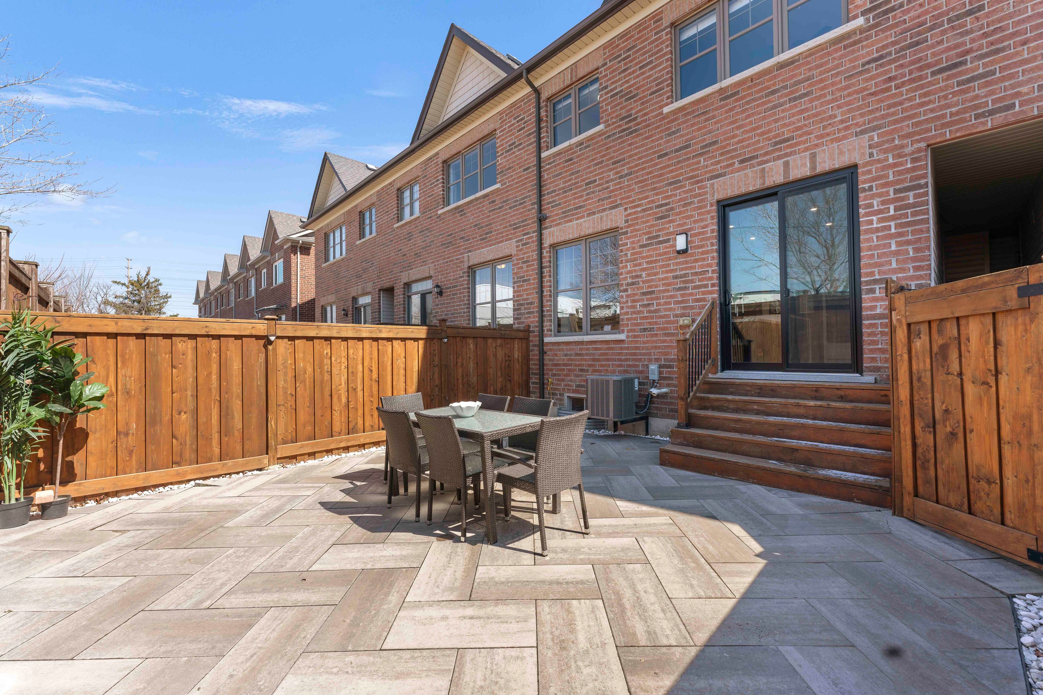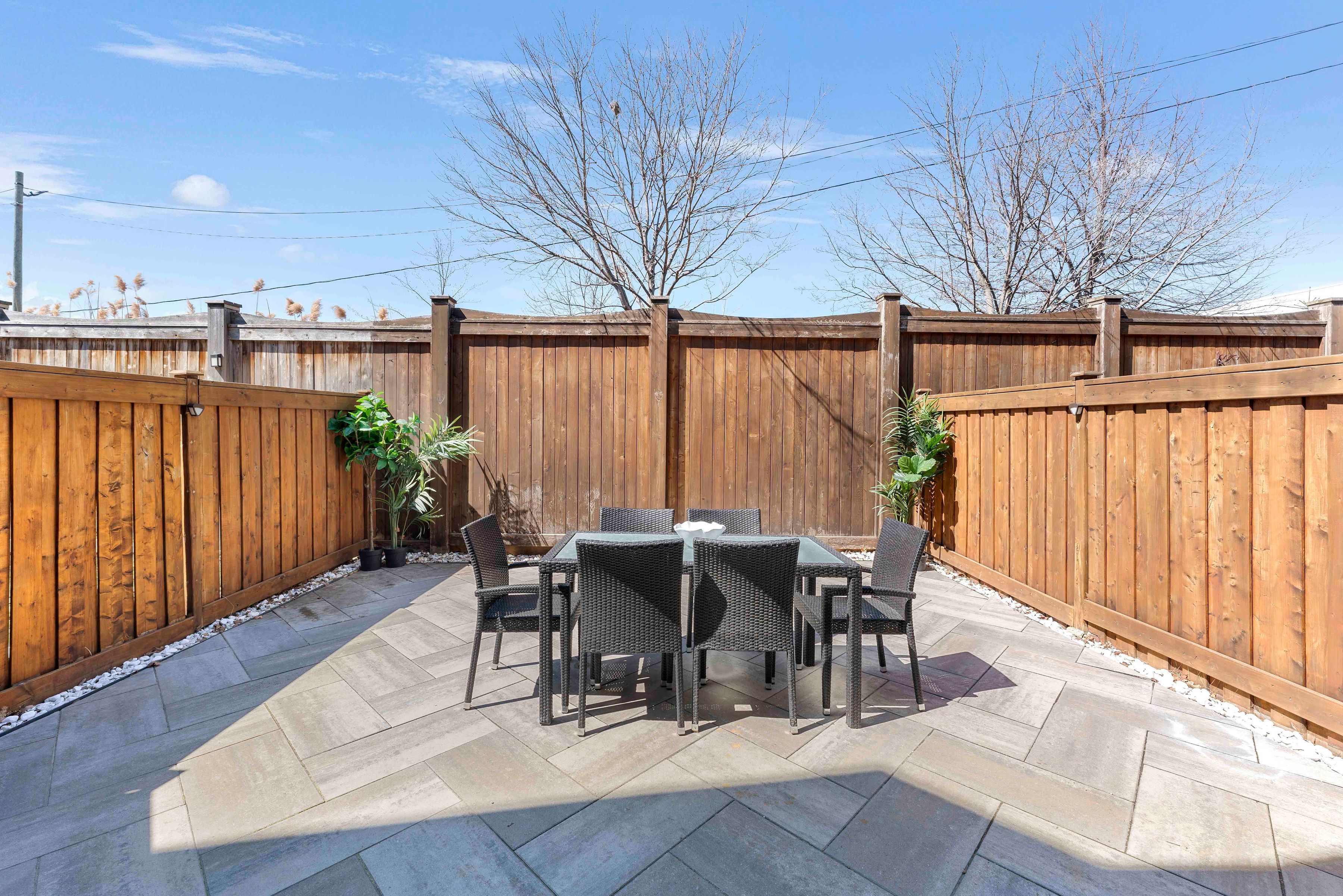 • Private backyard with large interlock pavers, perfect for relaxation.