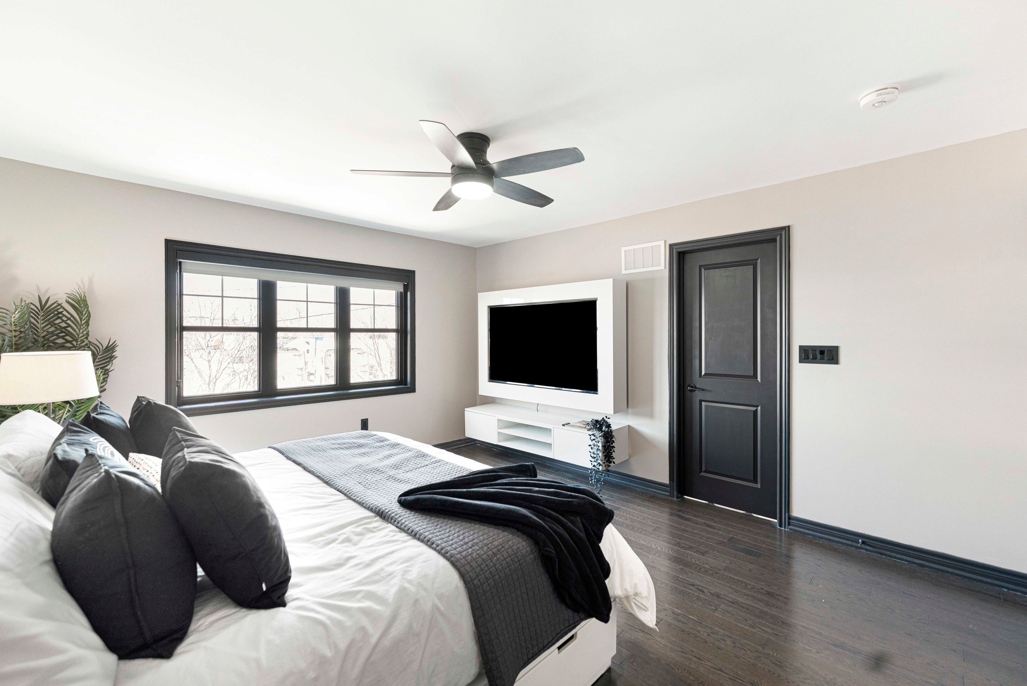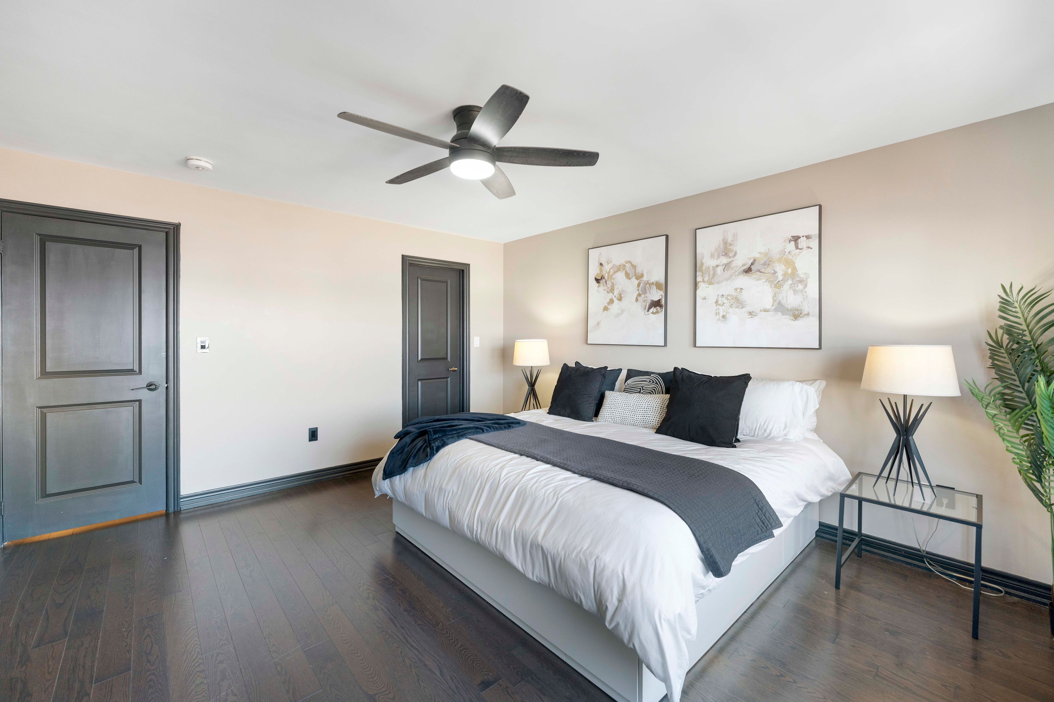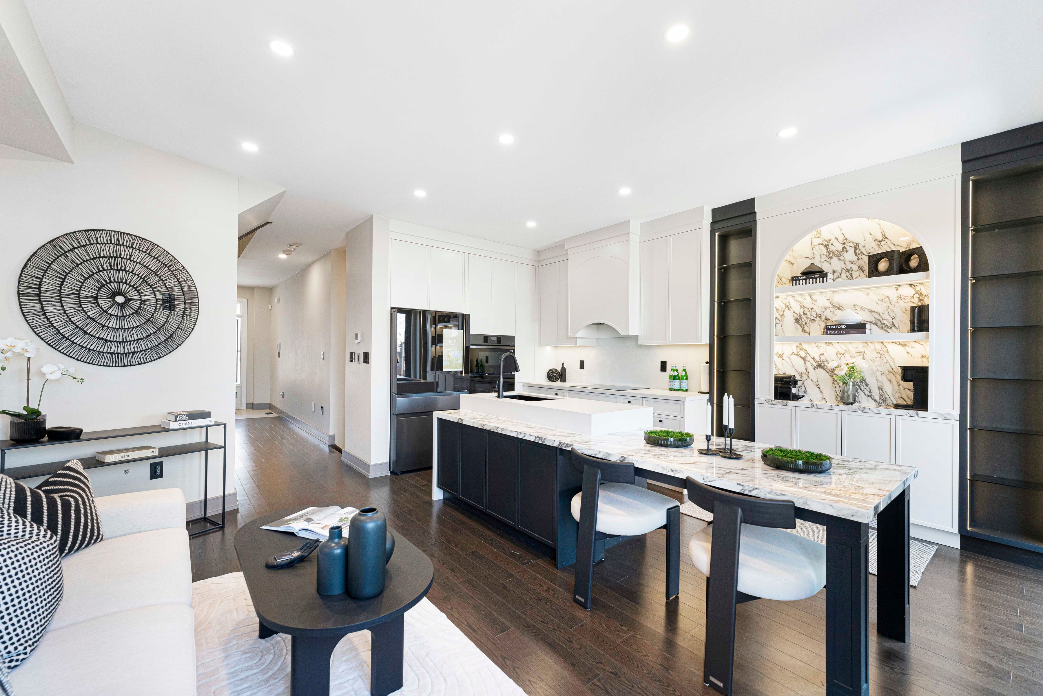 • Bright, open-concept layout with rich hardwood flooring throughout.