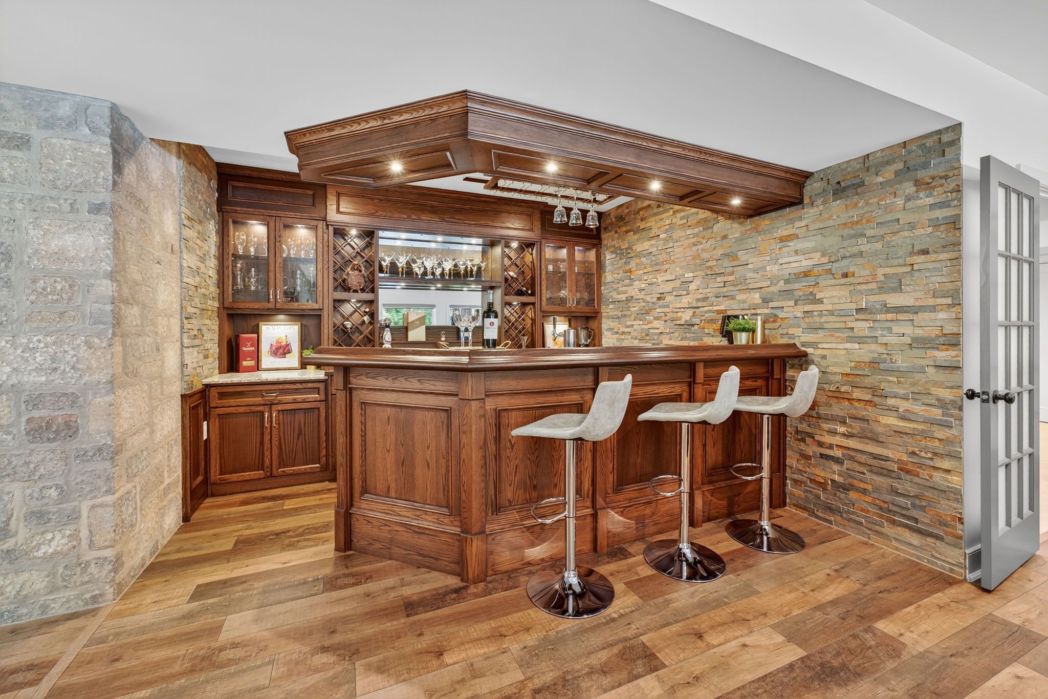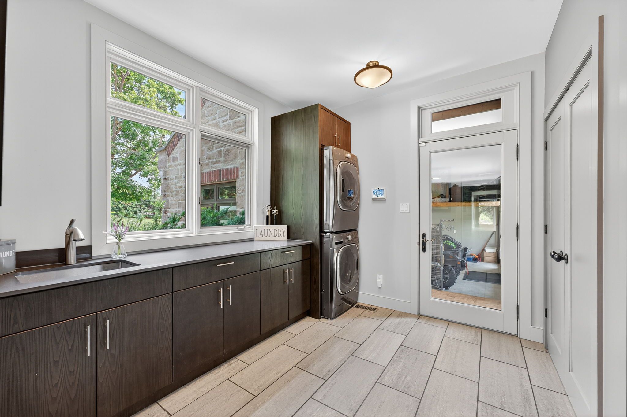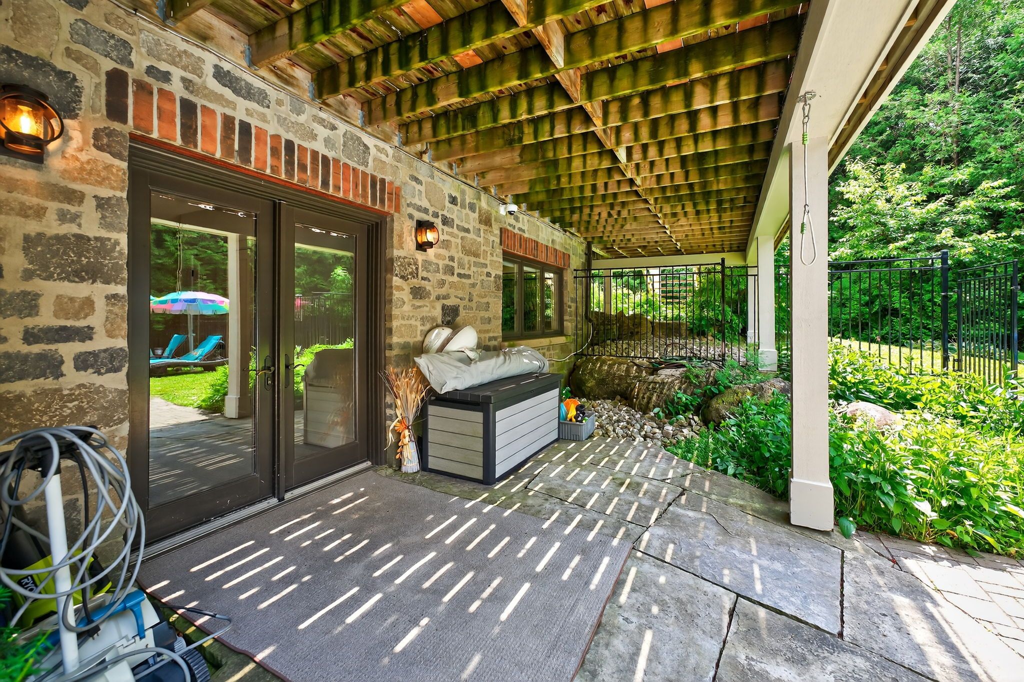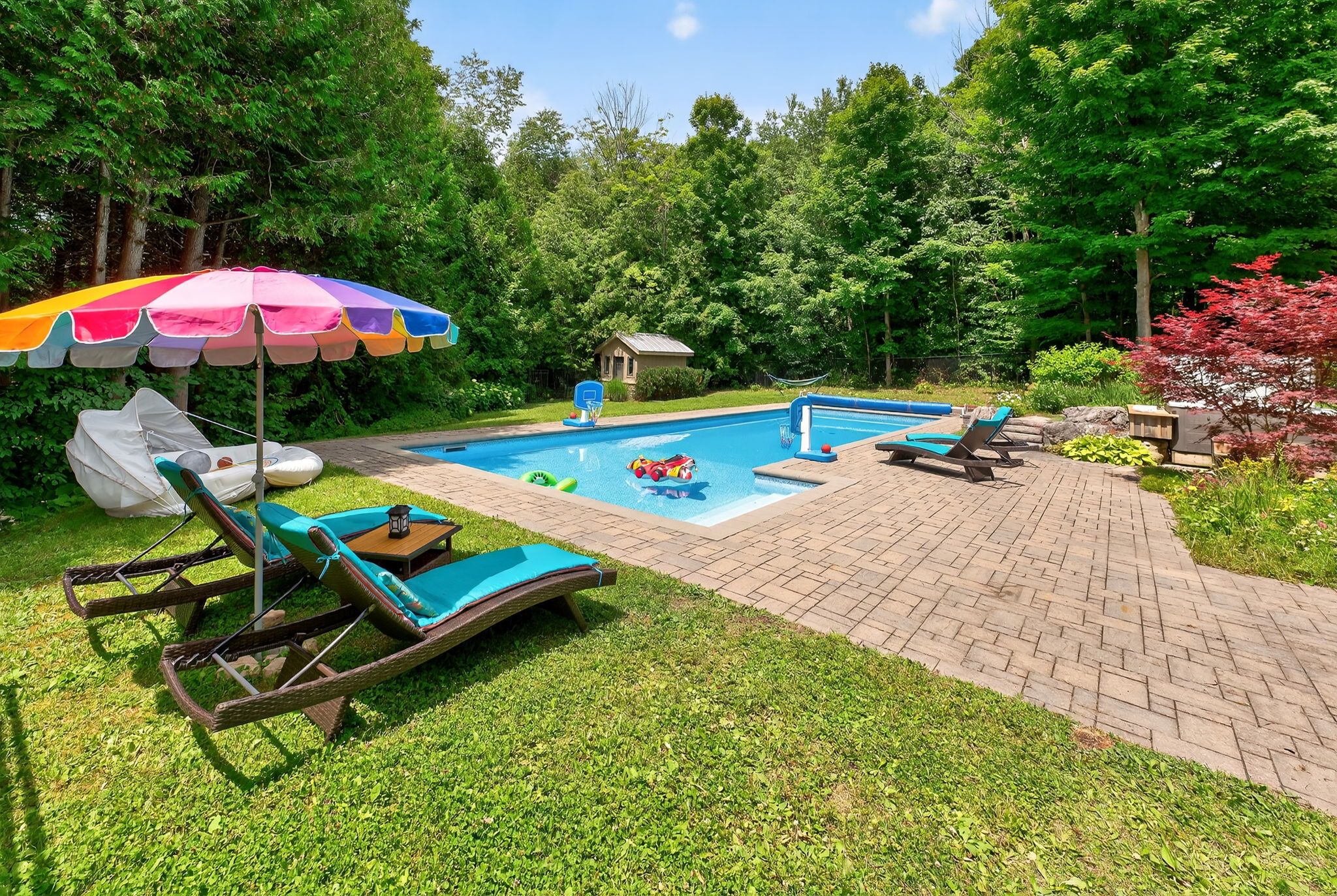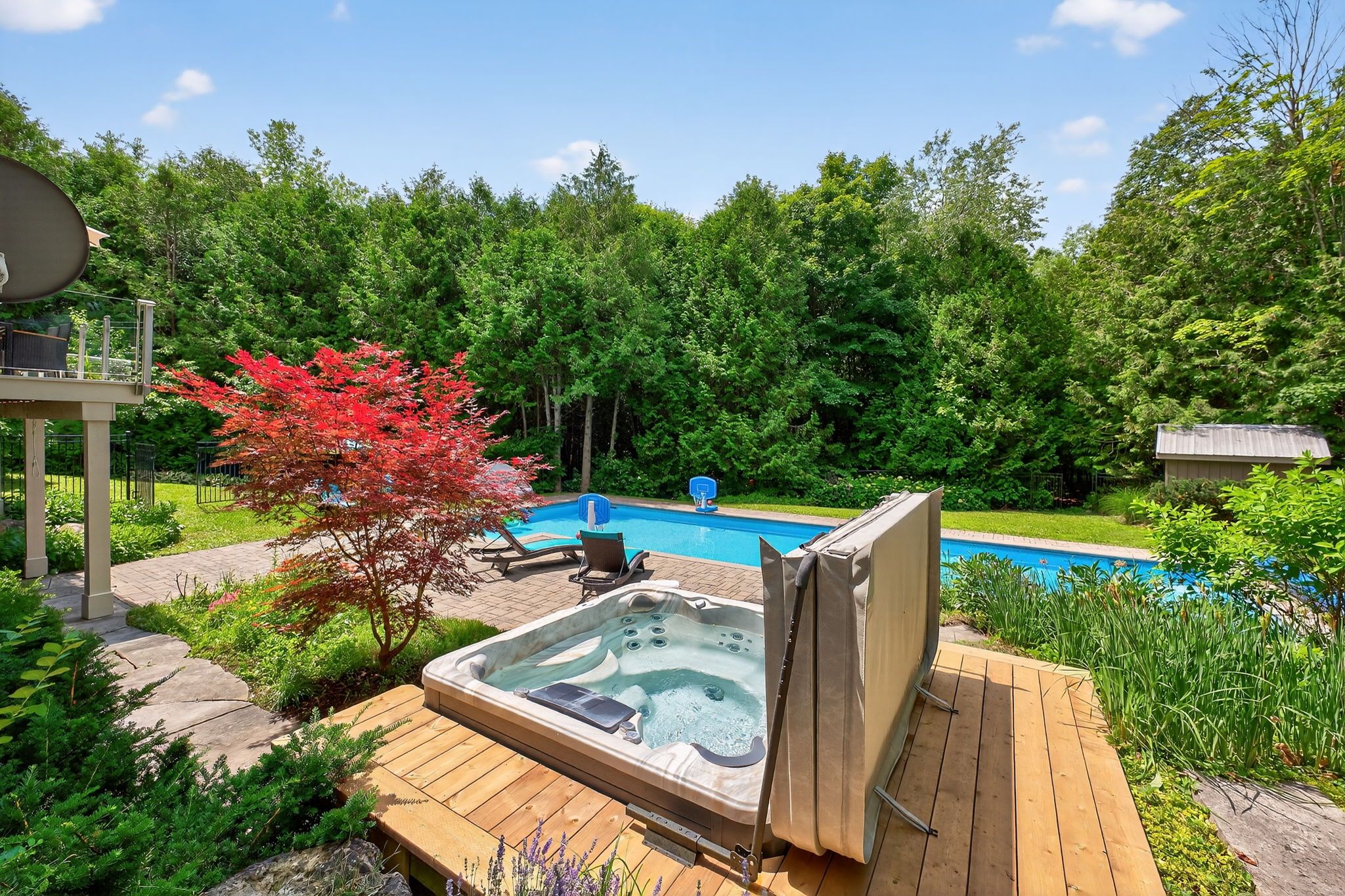 Tucked on a quiet crescent, this extraordinary 2. 79-acre estate offers an exquisite blend of refined living and natural serenity. Inspired by an old mill design, the stone-and-mortar exterior exudes timeless character and craftsmanship. Surrounded by mature trees, the grounds feel like a private resort complete with a heated saltwater pool, hot tub, tranquil decorative pond, and a forested fire pit area. Meandering trails lead directly to the grand river, making this a rare lifestyle opportunity. With over 4,500 sq ft of finished space, the interior is equally exceptional. Vaulted ceilings, hardwood flooring, and expansive windows create a bright, airy feel throughout. The chefs kitchen is a standout, featuring premium appliances, a centre island with breakfast bar, and a charming built-in window bench. The dining room, enhanced by a custom buffet, opens to an entertainment-sized deck for effortless indoor-outdoor flow. In the great room, floor-to-ceiling windows and a stone fireplace make a bold yet inviting statement. A private interior bridge leads to the main-level primary suite - a private sanctuary with spa-like five-piece ensuite, fireplace, walk-in closet, and its own secluded deck overlooking the backyard. The upper level offers three additional bedrooms, a five-piece bathroom, and a loft with views of the great room below. The finished walkout lower level is designed for entertaining, complete with a custom wet bar, two wine fridges, keg fridge, propane fireplace, in-floor heating, and oversized windows. A gym (optional 5th bedroom), private office, stylish bathroom, and cold storage add to the homes versatility. Every element of this property has been curated with intention, offering a lifestyle of quiet luxury, comfort, and connection to nature.