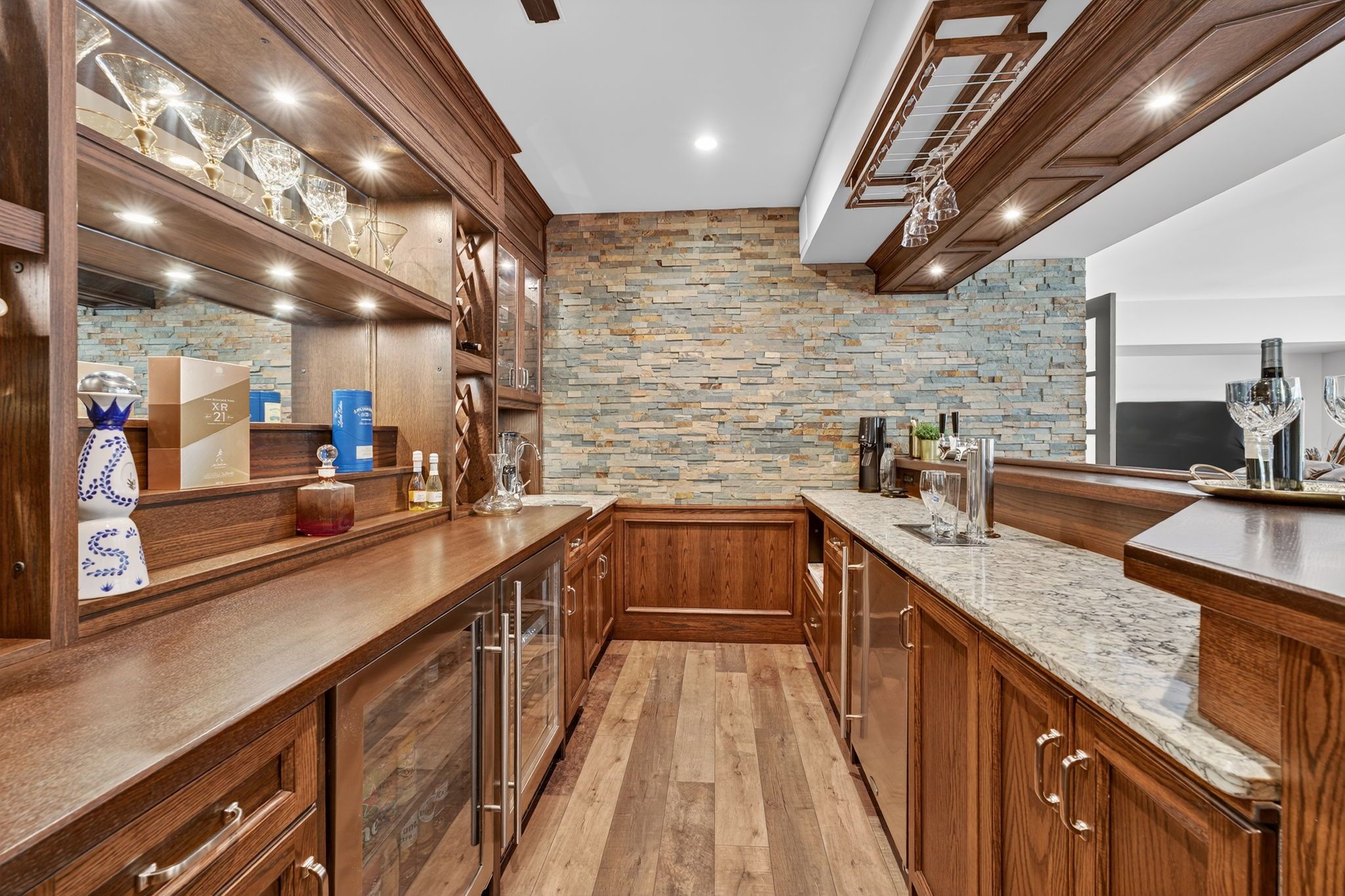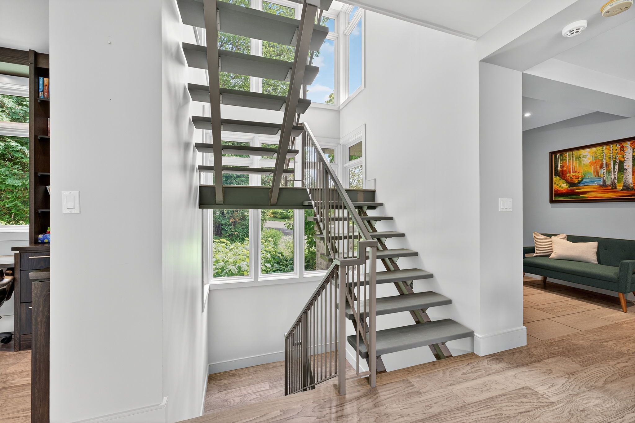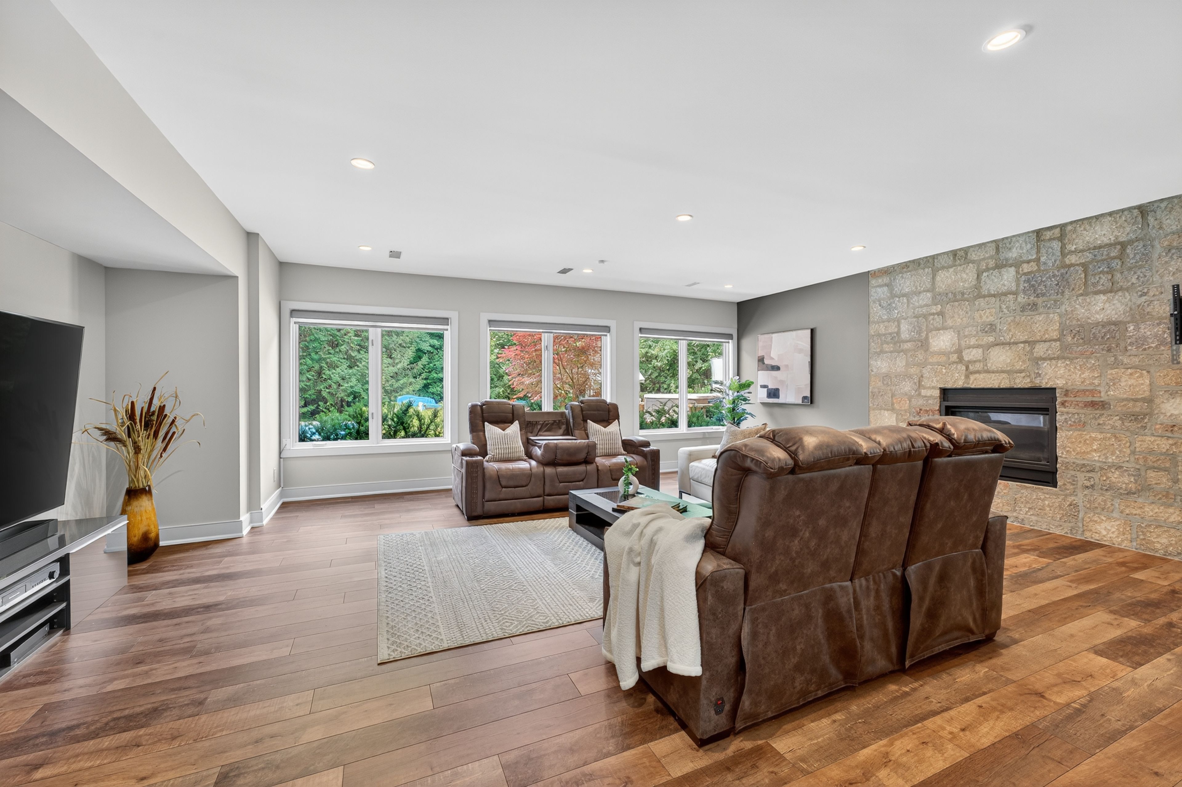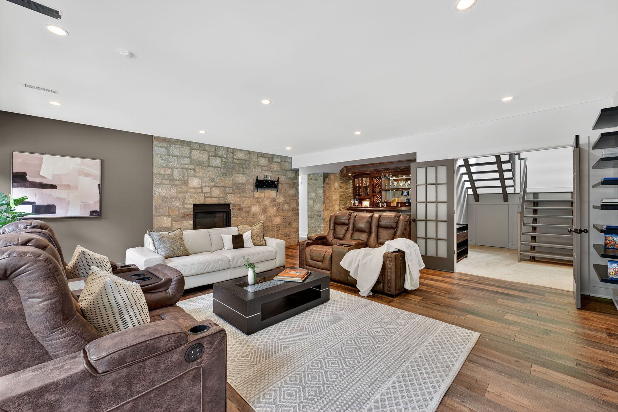 Tucked on a quiet crescent, this extraordinary 2. 79-acre estate offers an exquisite blend of refined living and natural serenity. Inspired by an old mill design, the stone-and-mortar exterior exudes timeless character and craftsmanship. Surrounded by mature trees, the grounds feel like a private resort complete with a heated saltwater pool, hot tub, tranquil decorative pond, and a forested fire pit area. Meandering trails lead directly to the grand river, making this a rare lifestyle opportunity. With over 4,500 sq ft of finished space, the interior is equally exceptional. Vaulted ceilings, hardwood flooring, and expansive windows create a bright, airy feel throughout. The chefs kitchen is a standout, featuring premium appliances, a centre island with breakfast bar, and a charming built-in window bench. The dining room, enhanced by a custom buffet, opens to an entertainment-sized deck for effortless indoor-outdoor flow. In the great room, floor-to-ceiling windows and a stone fireplace make a bold yet inviting statement. A private interior bridge leads to the main-level primary suite - a private sanctuary with spa-like five-piece ensuite, fireplace, walk-in closet, and its own secluded deck overlooking the backyard. The upper level offers three additional bedrooms, a five-piece bathroom, and a loft with views of the great room below. The finished walkout lower level is designed for entertaining, complete with a custom wet bar, two wine fridges, keg fridge, propane fireplace, in-floor heating, and oversized windows. A gym (optional 5th bedroom), private office, stylish bathroom, and cold storage add to the homes versatility. Every element of this property has been curated with intention, offering a lifestyle of quiet luxury, comfort, and connection to nature.