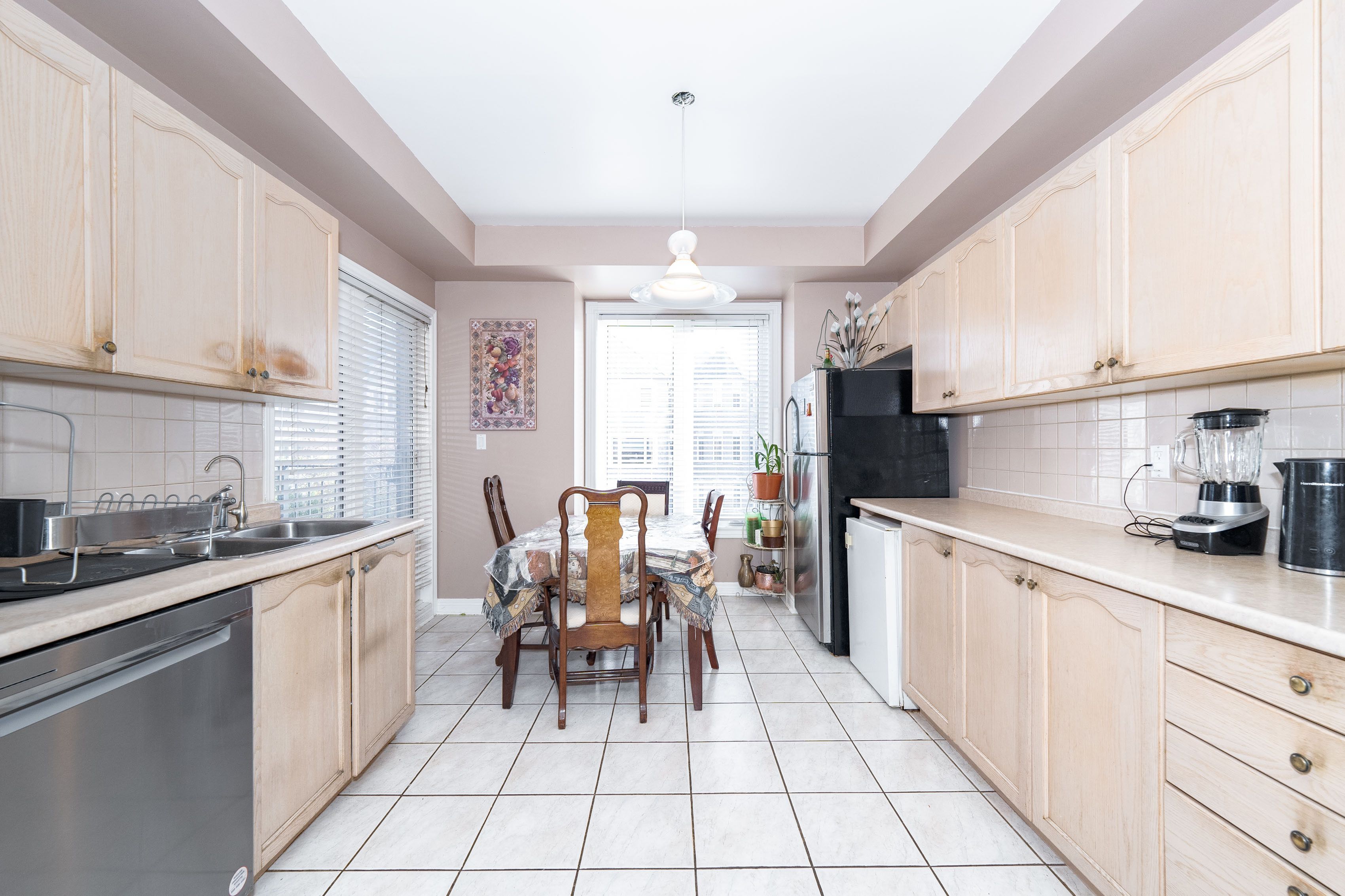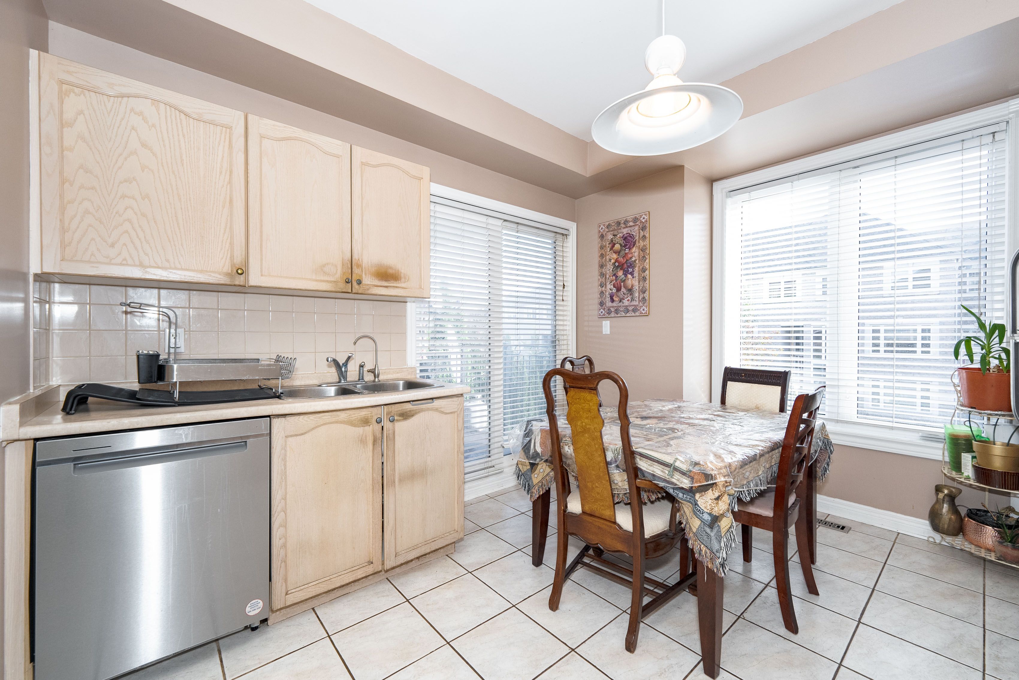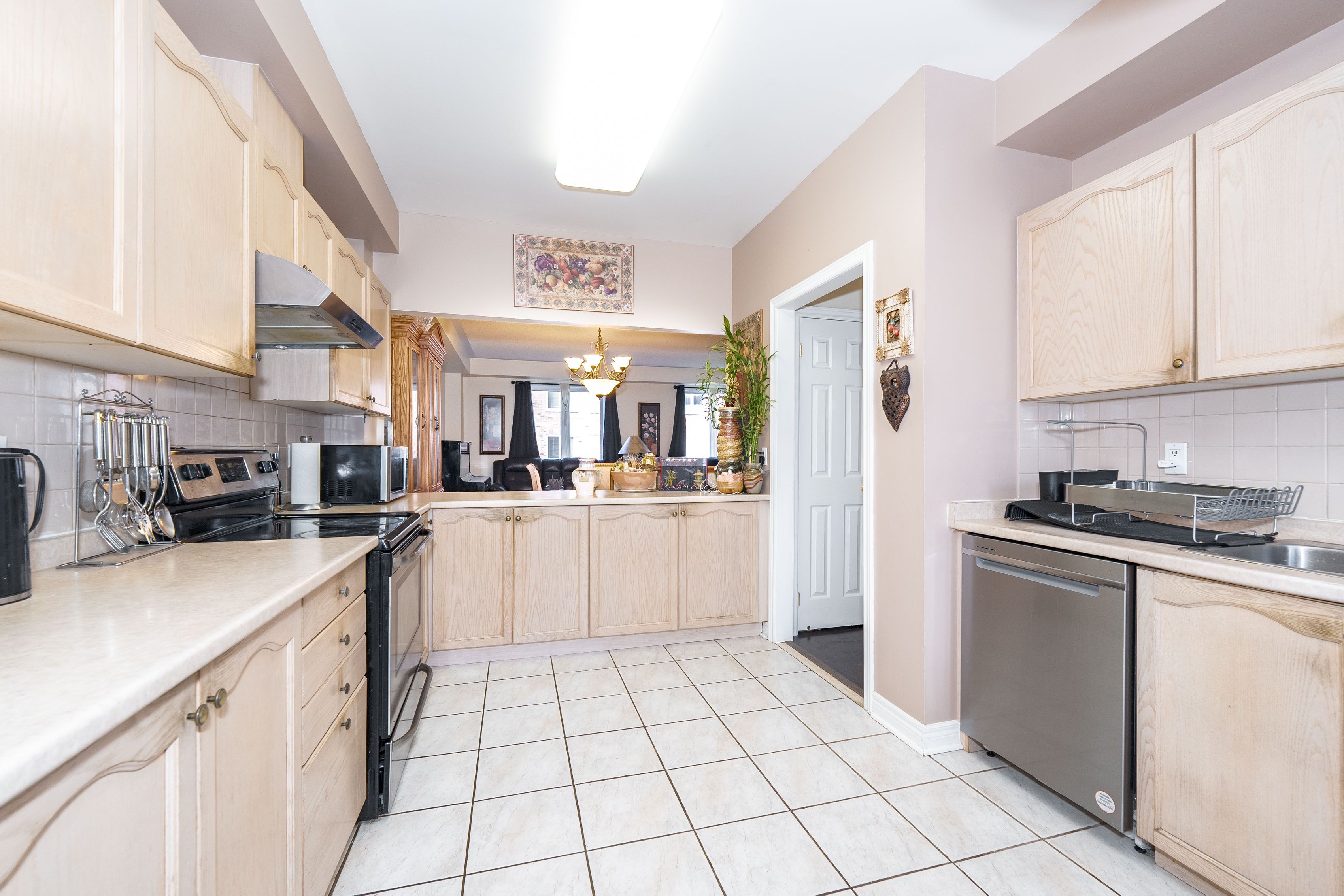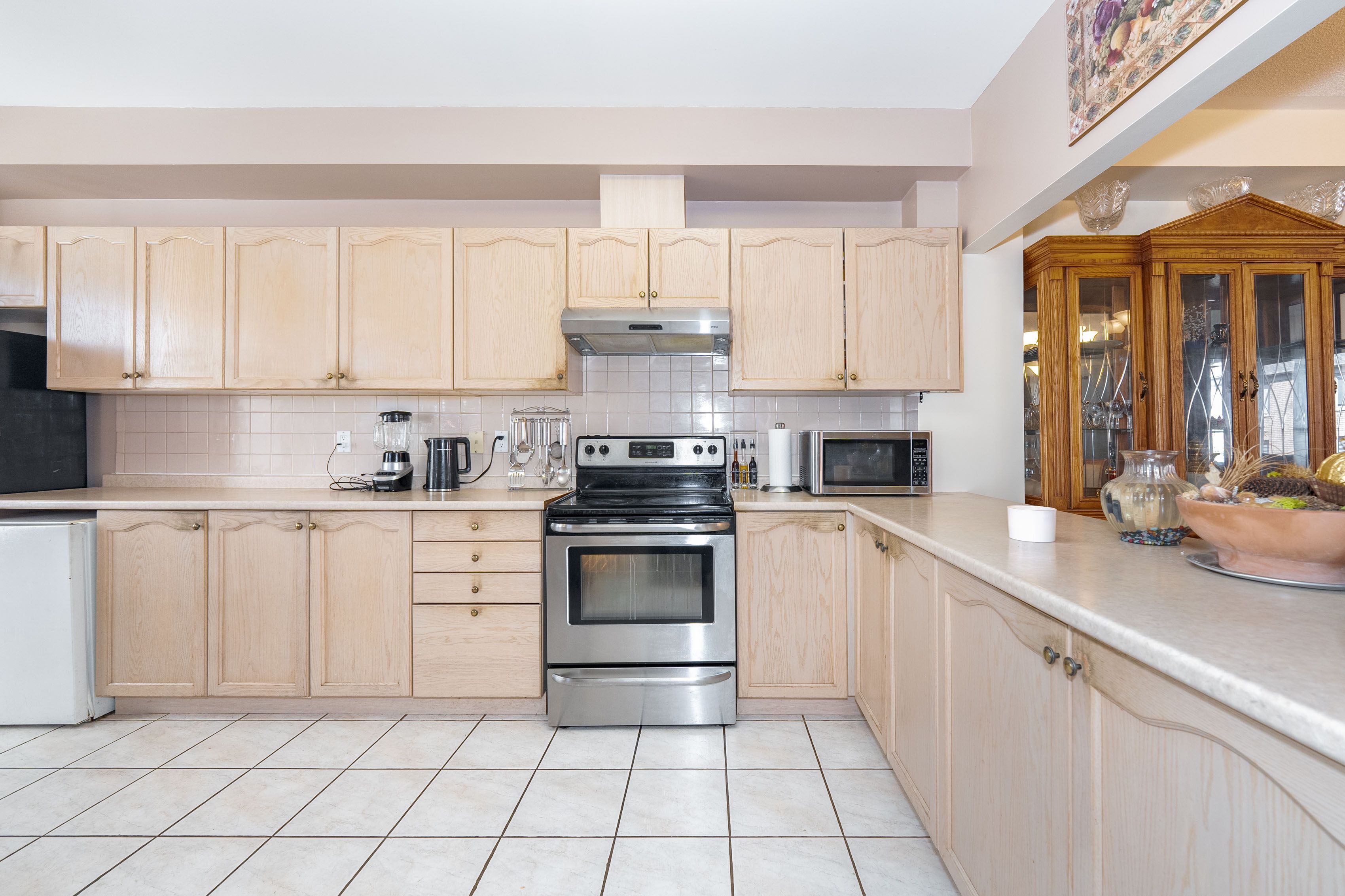• Spacious eat-in kitchen with walkout balcony and extra cabinetry.