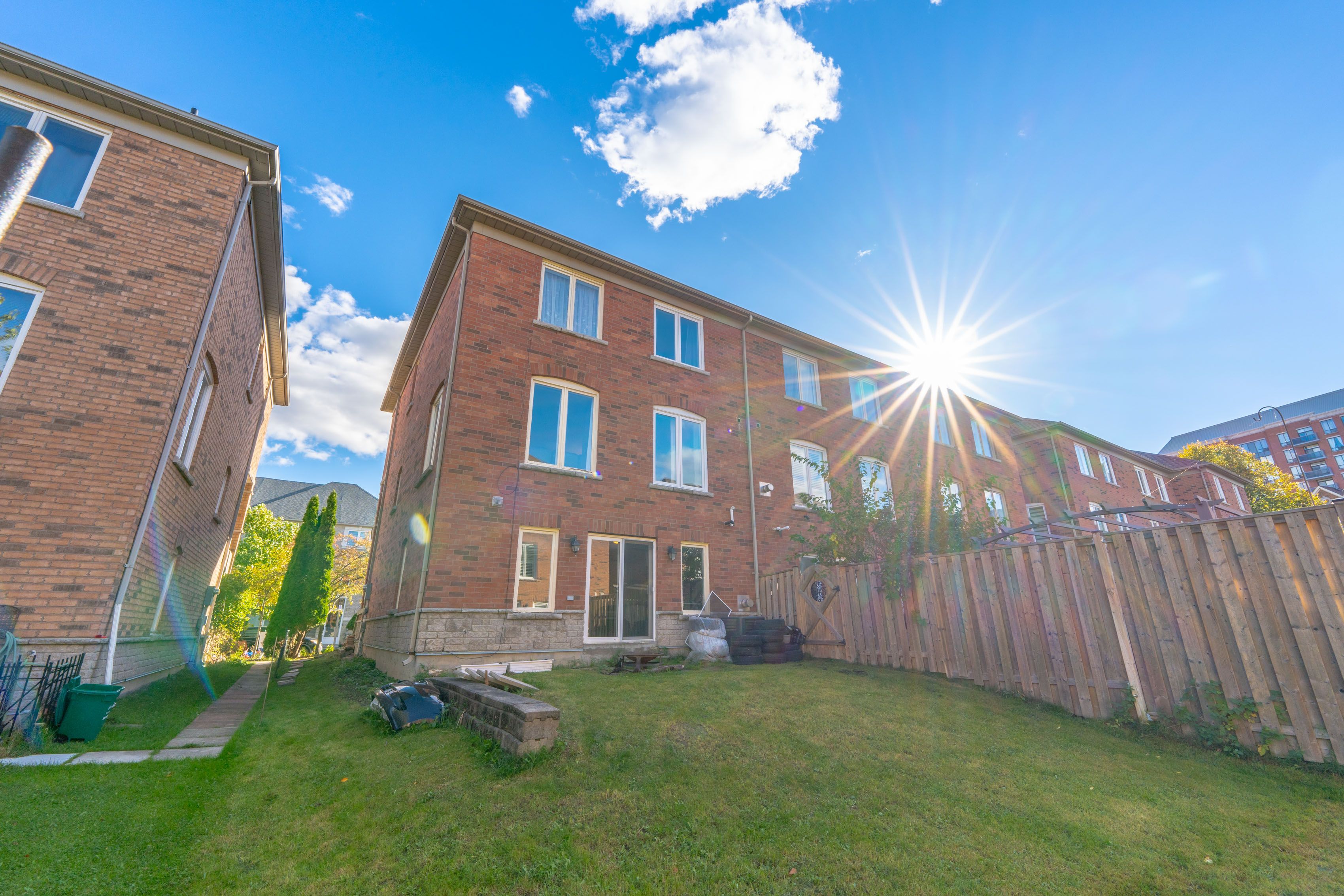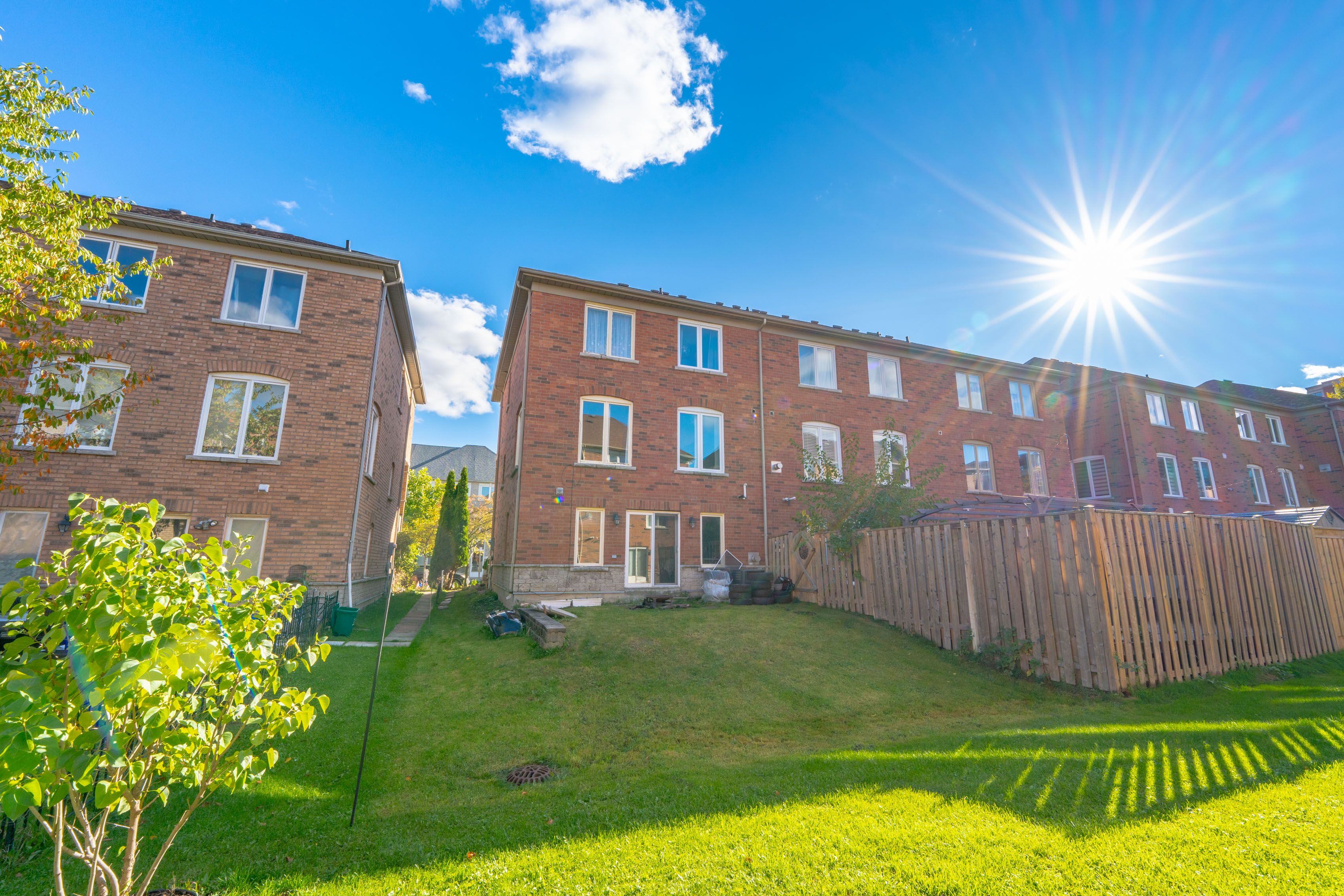 La dolce vita; largest freehold townhouse model "clainborne" built by times developments, no monthly maintenance fee, nestled in a peaceful residential area with park, pond, playground and high-ranking schools like st. Robert's, doncrest, thornlea. Interlocking double driveway with no sidewalk and 2 parking spaces built in garage, landscaped, large eat-in kitchen, walk to balcony from breakfast area, extra kitchen cabinetry, combined open concept living/dining, large family room in lower level with walk out to yard, large prime br with 5 pc ensuite, oval top. Newer hardwood flooring, fresh paint and upgraded some windows. Close all amenities, shops, restaurants, grocery stores and major highways like 404, hwy 7.