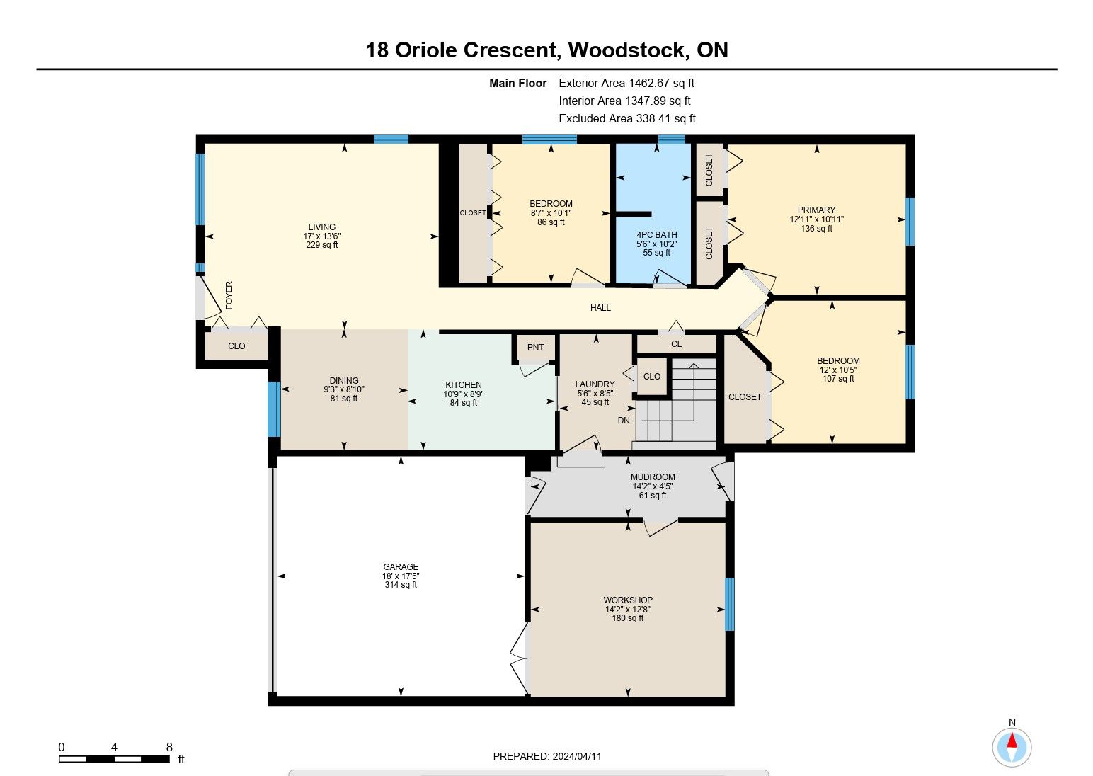 This brick bungalow offers 3 comfortable bedrooms, 2 bathrooms, double car garage as well as a heated, insulated workshop. As you enter the home you will appreciate the newer luxury plank flooring on most of the main floor, along with other updates such as, lighting, freshly painted updated, bright kitchen that opens up to the dining and living areas making it ideal for hosting and everyday living. The main floor has 3 nice sized bedrooms a 4 piece bath and main floor laundry. Heading down to the basement you will notice such features as the additional cozy sitting area or make it into an office, with french doors for added privacy. Enjoy a bit of friendly competition in the large recreation room playing ping pong, board games or having movie nights, a 3 piece washroom is also located in the basement. The double garage is (17. 5 ft x 18 ft) provides versatile parking and storage options with the added bonus room just behind the garage for additional storage, tools, equipment, or a gym. Even more impressive, the property includes a heated, insulated 21x12 ft workshop that can be used for countless purposes-such as a woodworking area, art studio, or an area to enjoy the outdoors with a garage door and 8. 5'x10' patio. This home has easy access to the 400 series highways, shopping and woodstock's beautiful pittock park conservation area for biking, canoeing and walking trails. Recent updates, new luxury vinyl plank flooring 2024, furnace 2024, workshop/garage door 2021, roof 2016, water heater owned. All measurements done by iguide.