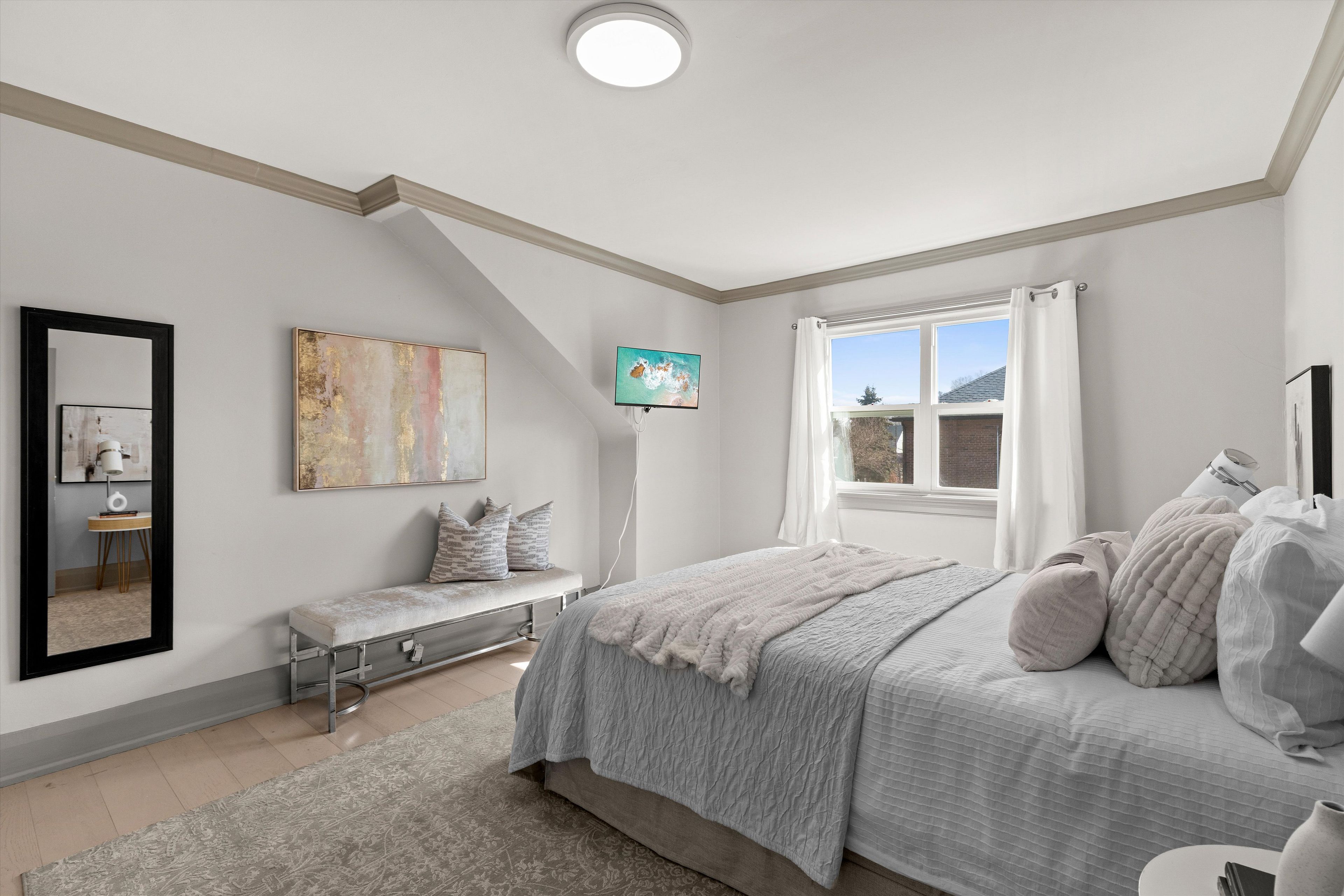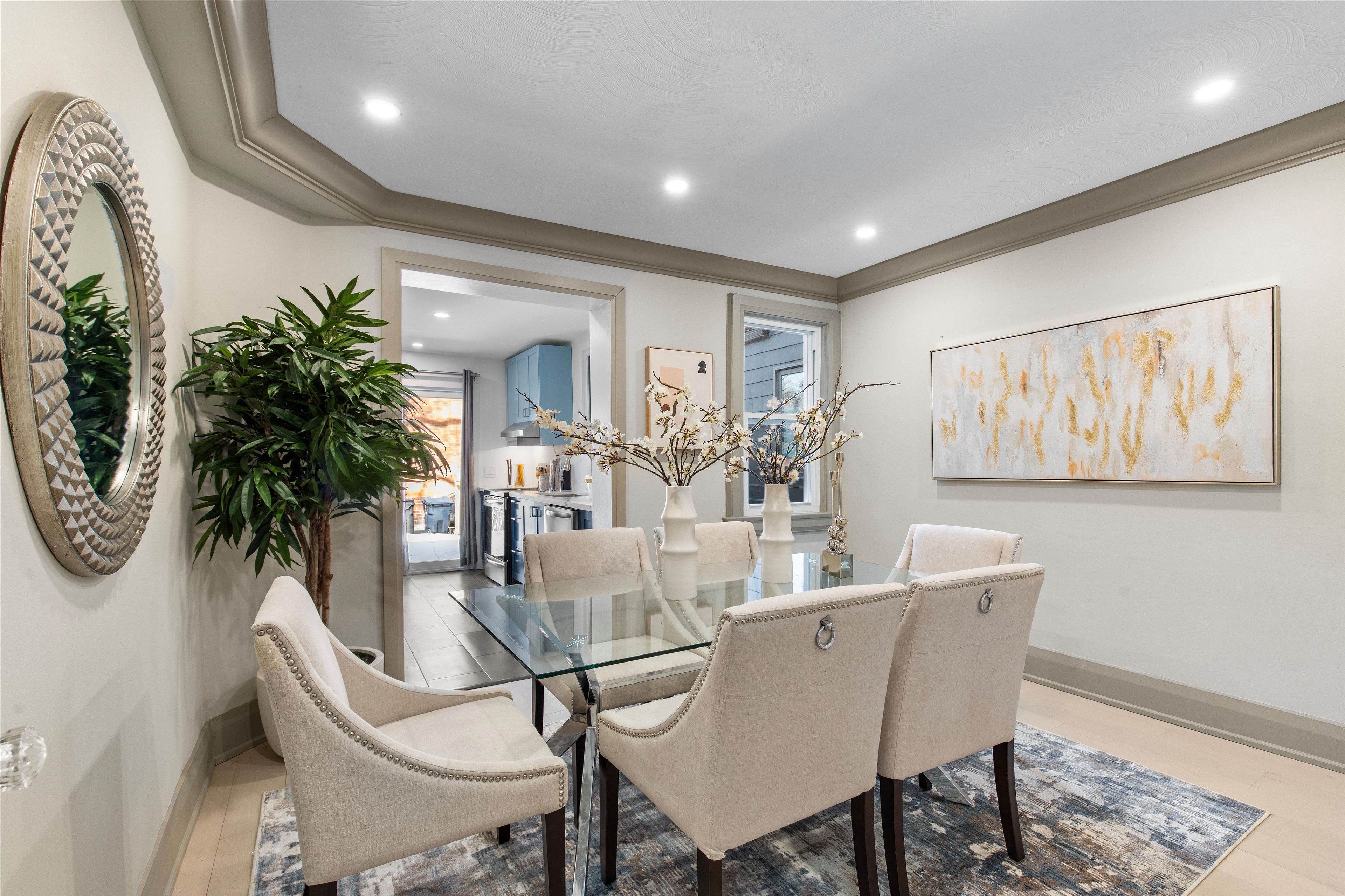 Beautifully renovated 2-bedroom semi with modern upgrades and energy efficiency throughout. Features a fully owned solar-powered hvac system(2022) and newer energy-efficient windows and doors(2022). Bright main floor with new hardwood floors, led lighting, crown moulding, and large windows. Cozy living room, separate dining area, and sleek galley kitchen with stainless steel appliances, quartz counters/backsplash, ample storage, and walkout to a private deck and fenced backyard. Upstairs offers two spacious bedrooms and a fully renovated bath with large vanity and glass-enclosed tub (2025). Finished basement includes a large rec room (ideal as 3rdbedroom), full bath, and laundry with storage. Prime location between junction & bloor west-steps to ttc, shops, cafes, schools (french immersion), parks, trails, humber river & baby point club.