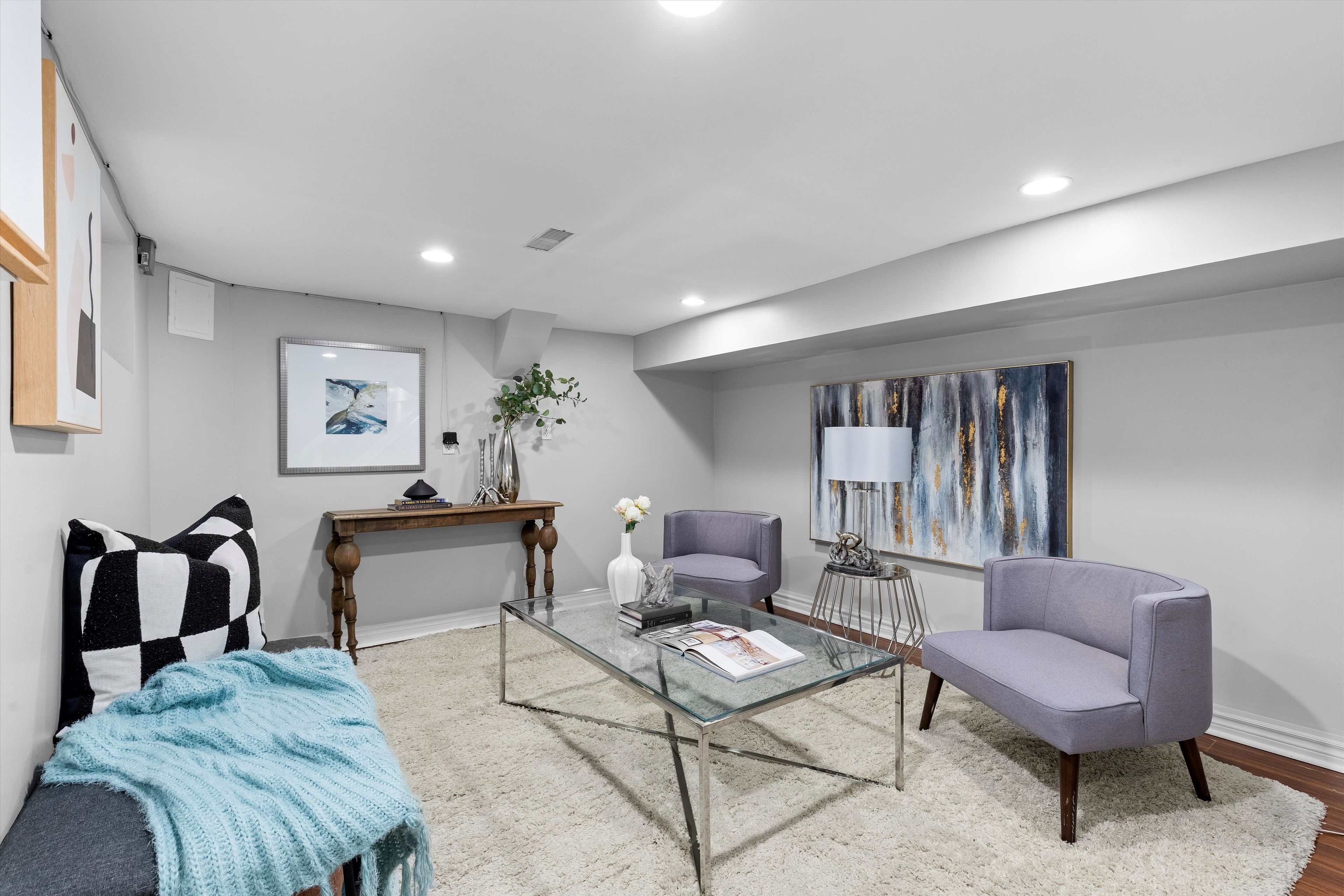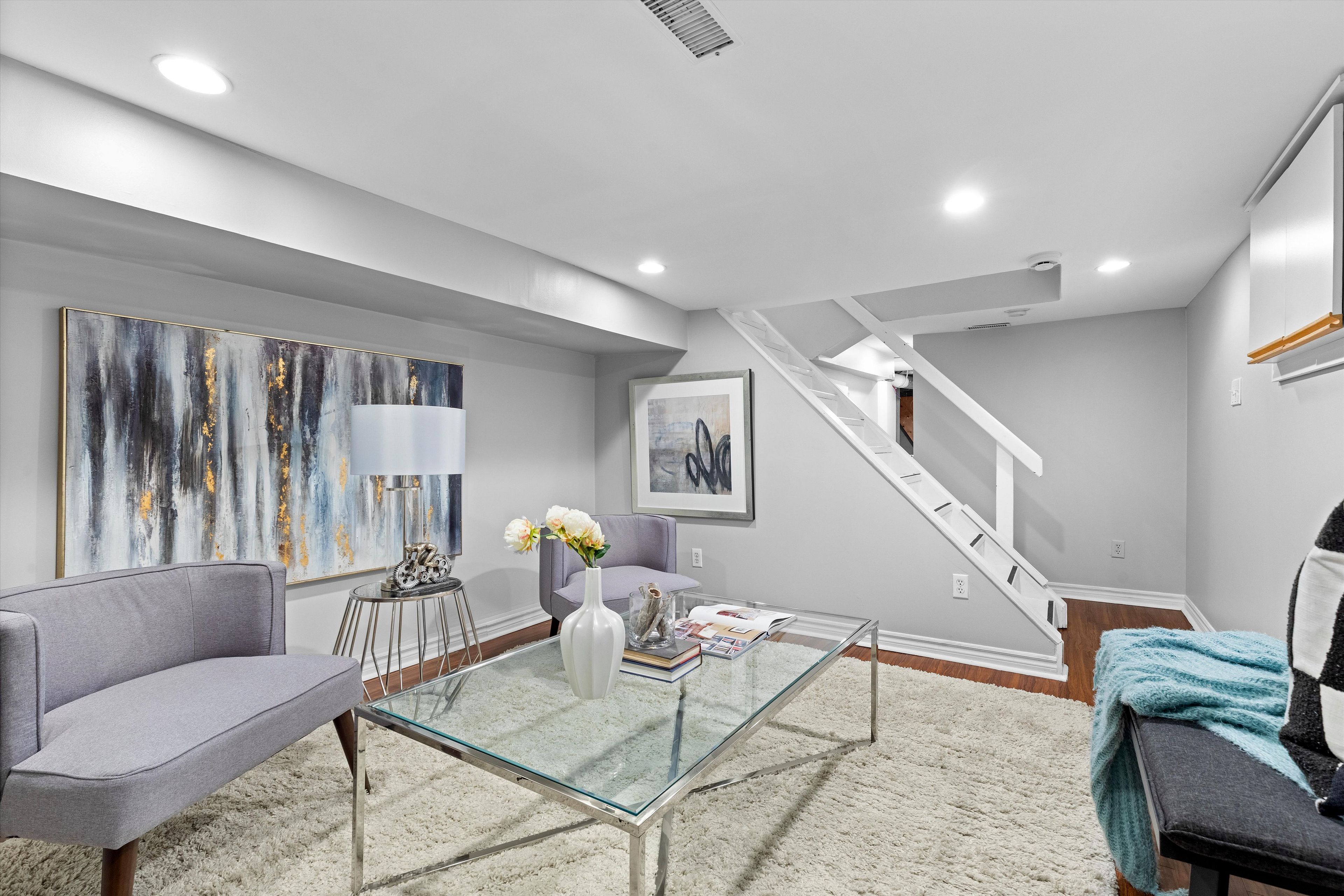 • Finished basement with rec room and full bath, adding extra space.