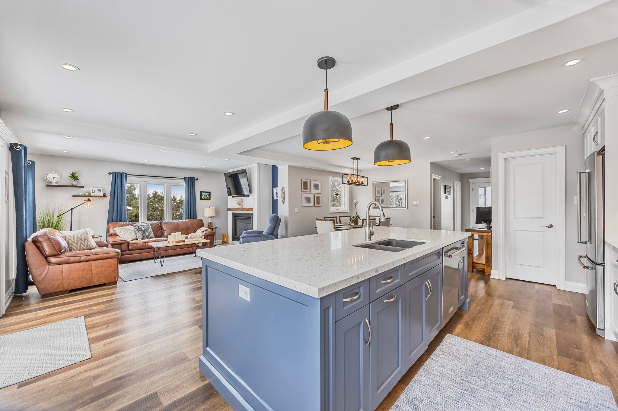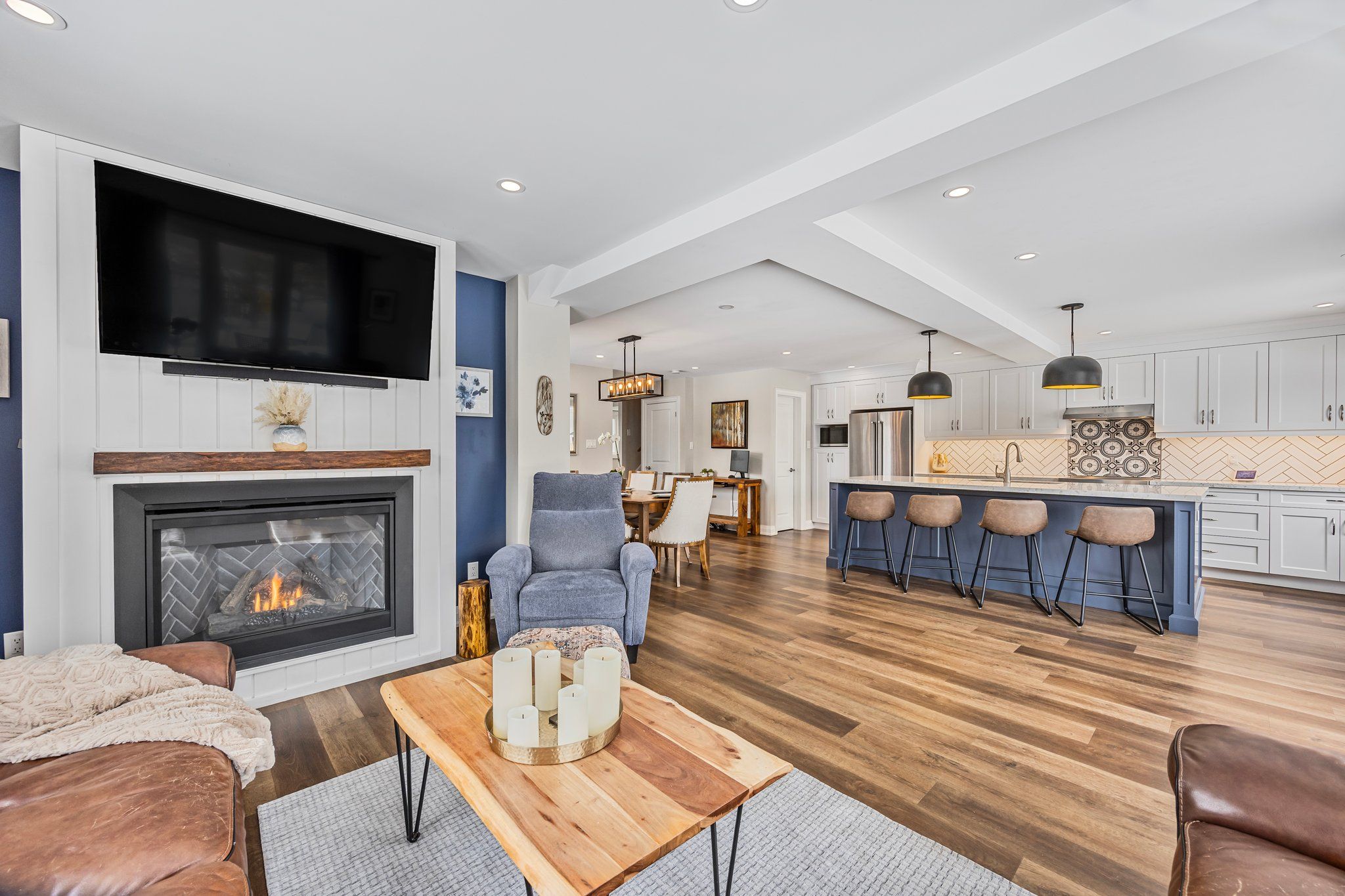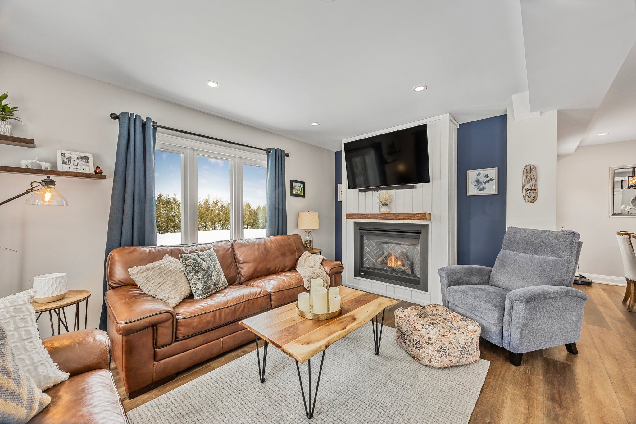 • Cozy gas fireplace and open-concept layout for comfortable living.