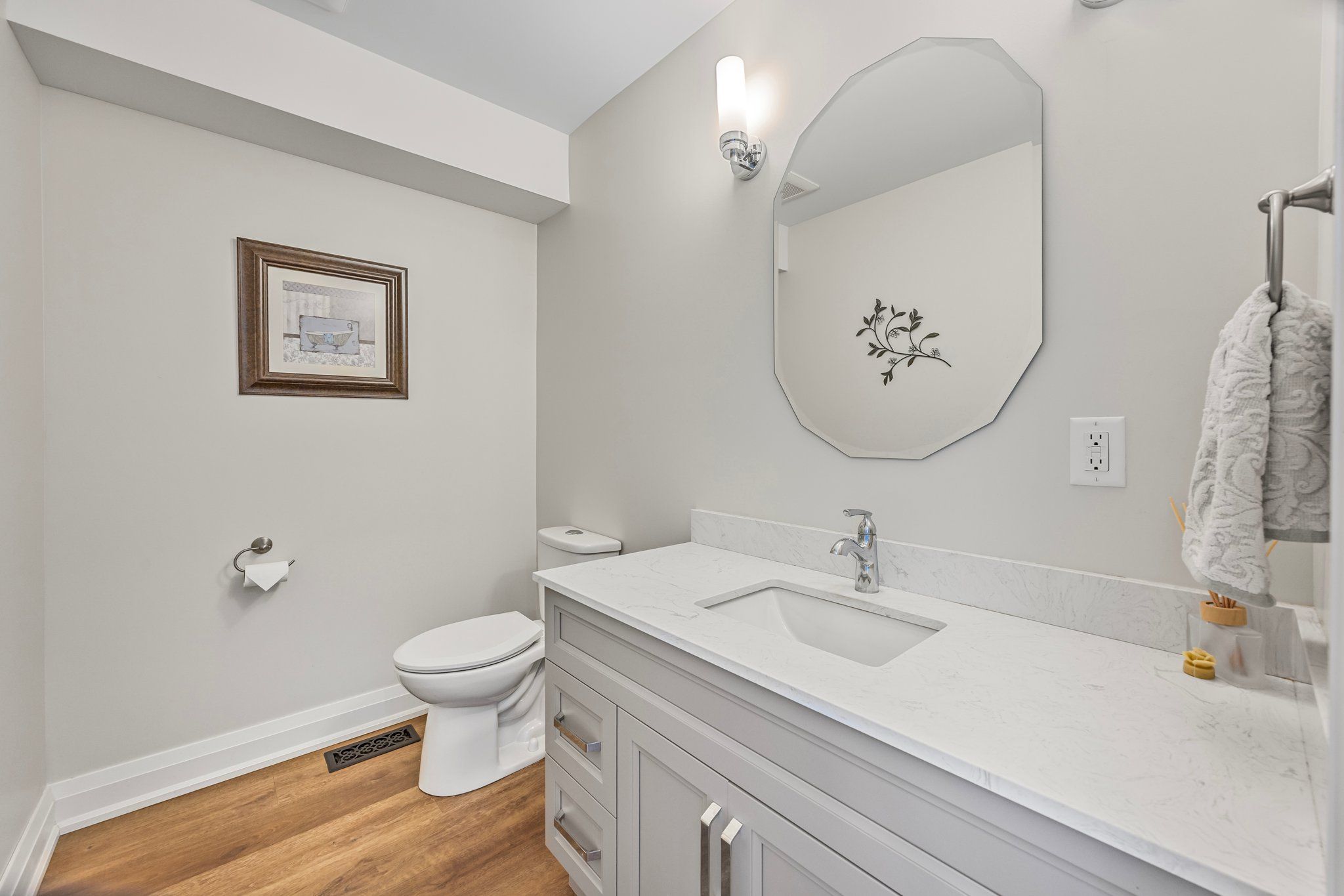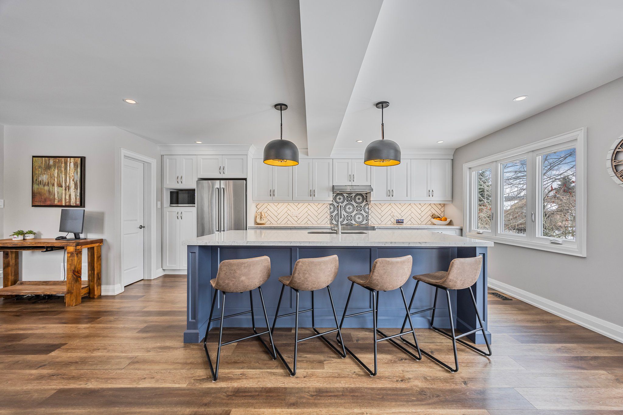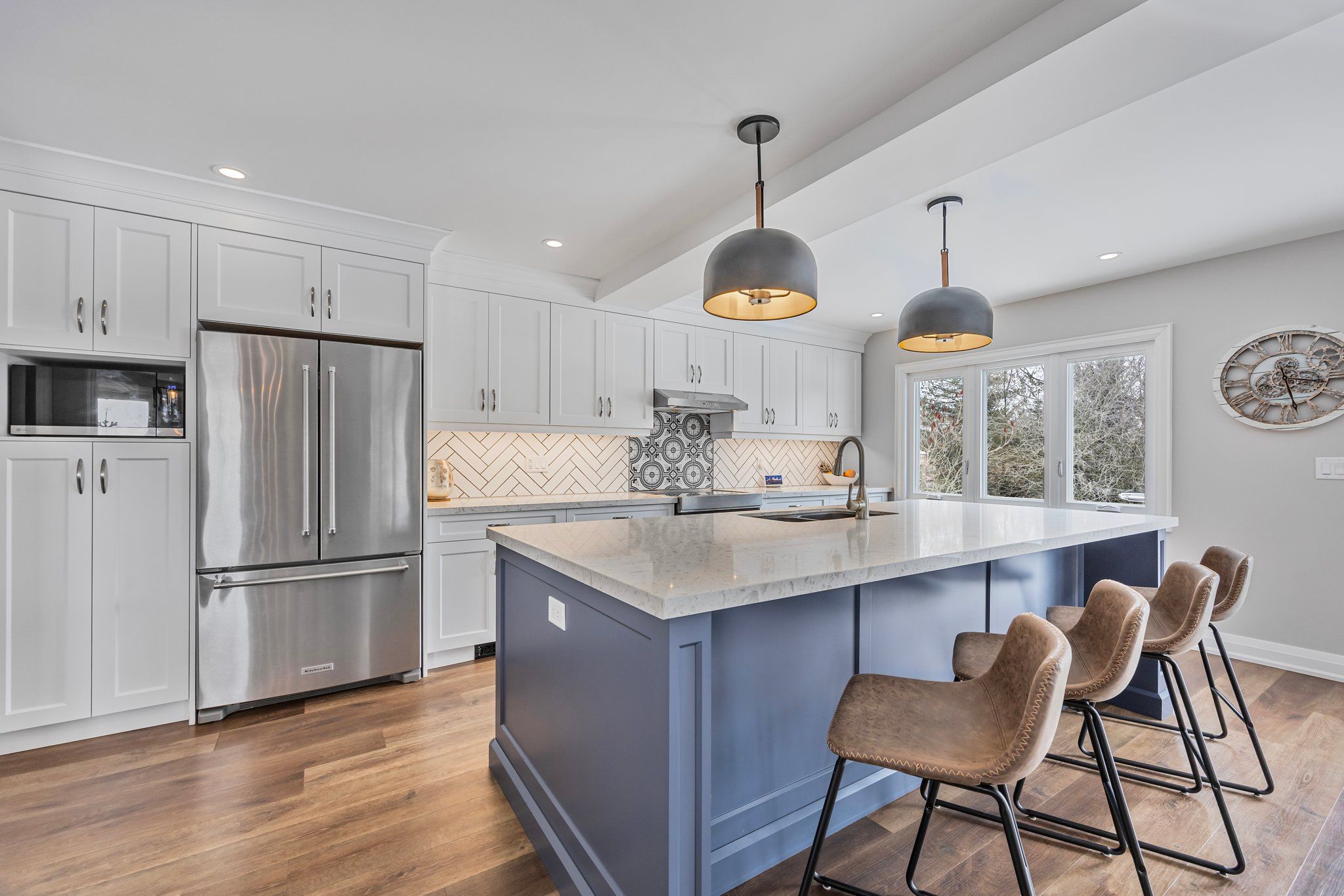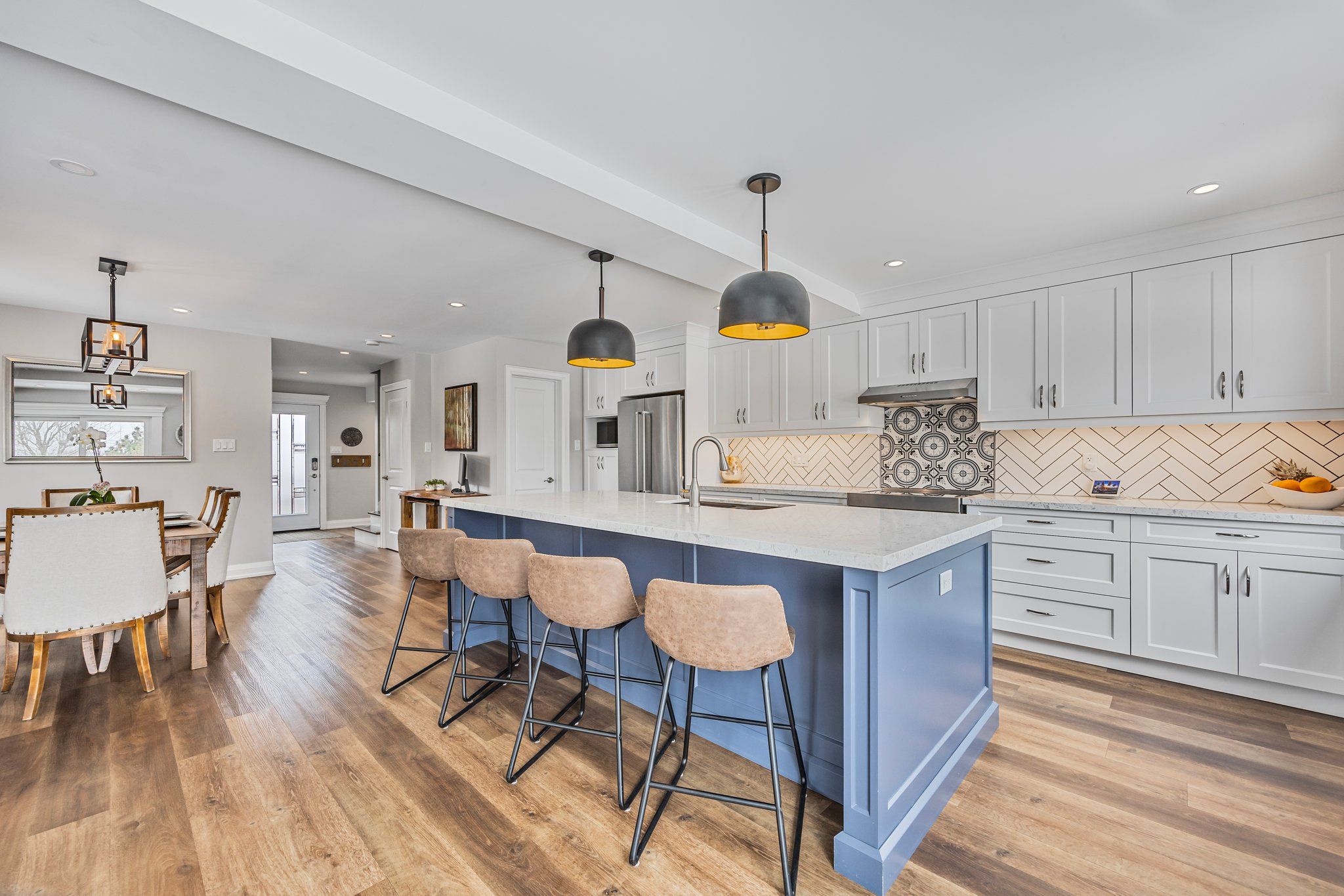 • Updated kitchen with quartz island and new stainless steel appliances.