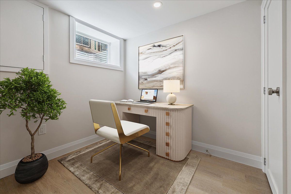 • Bright primary bedroom and den ideal for living or remote work.