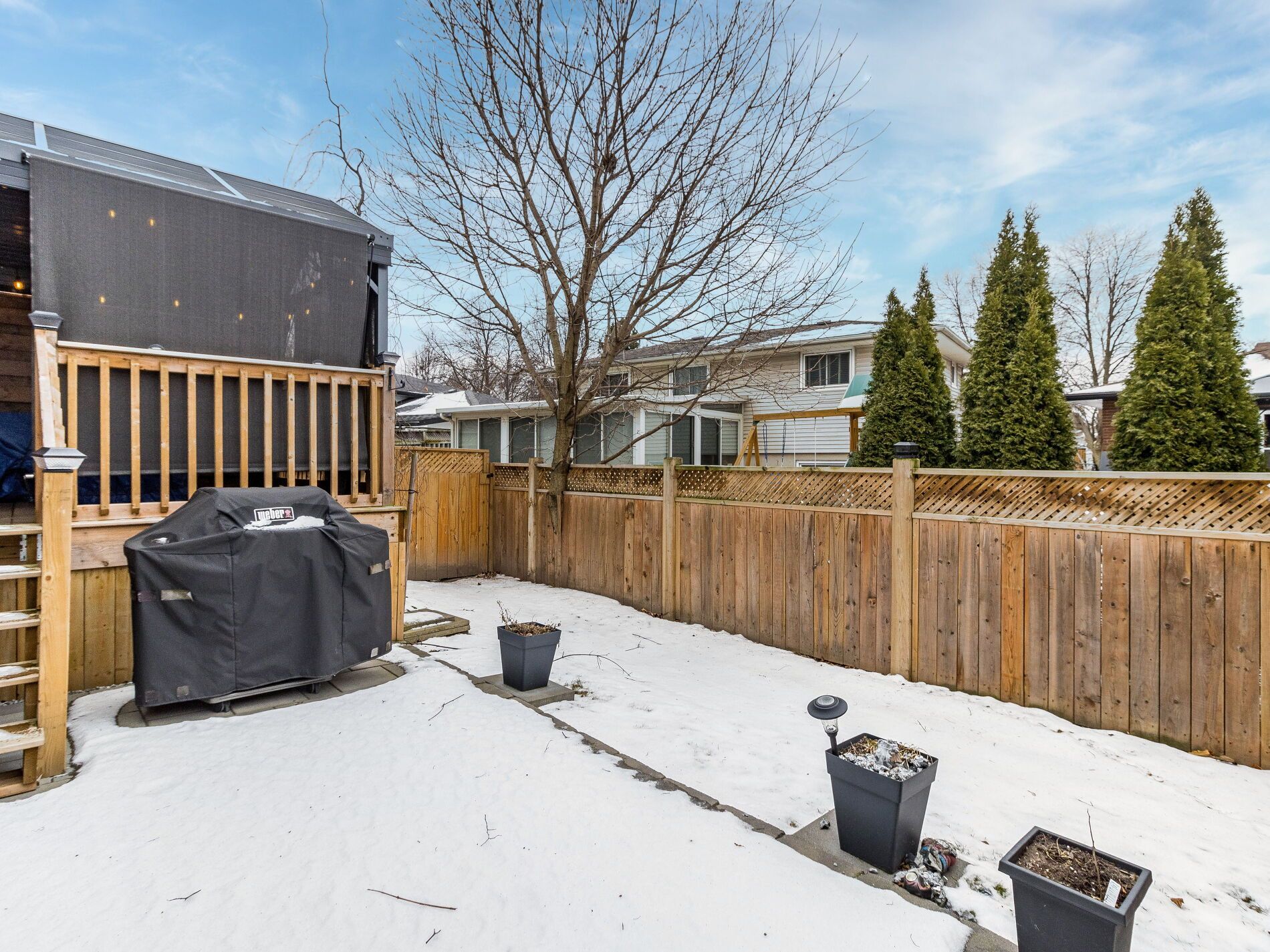 • Backyard includes a covered deck, perfect for entertaining and relaxing.