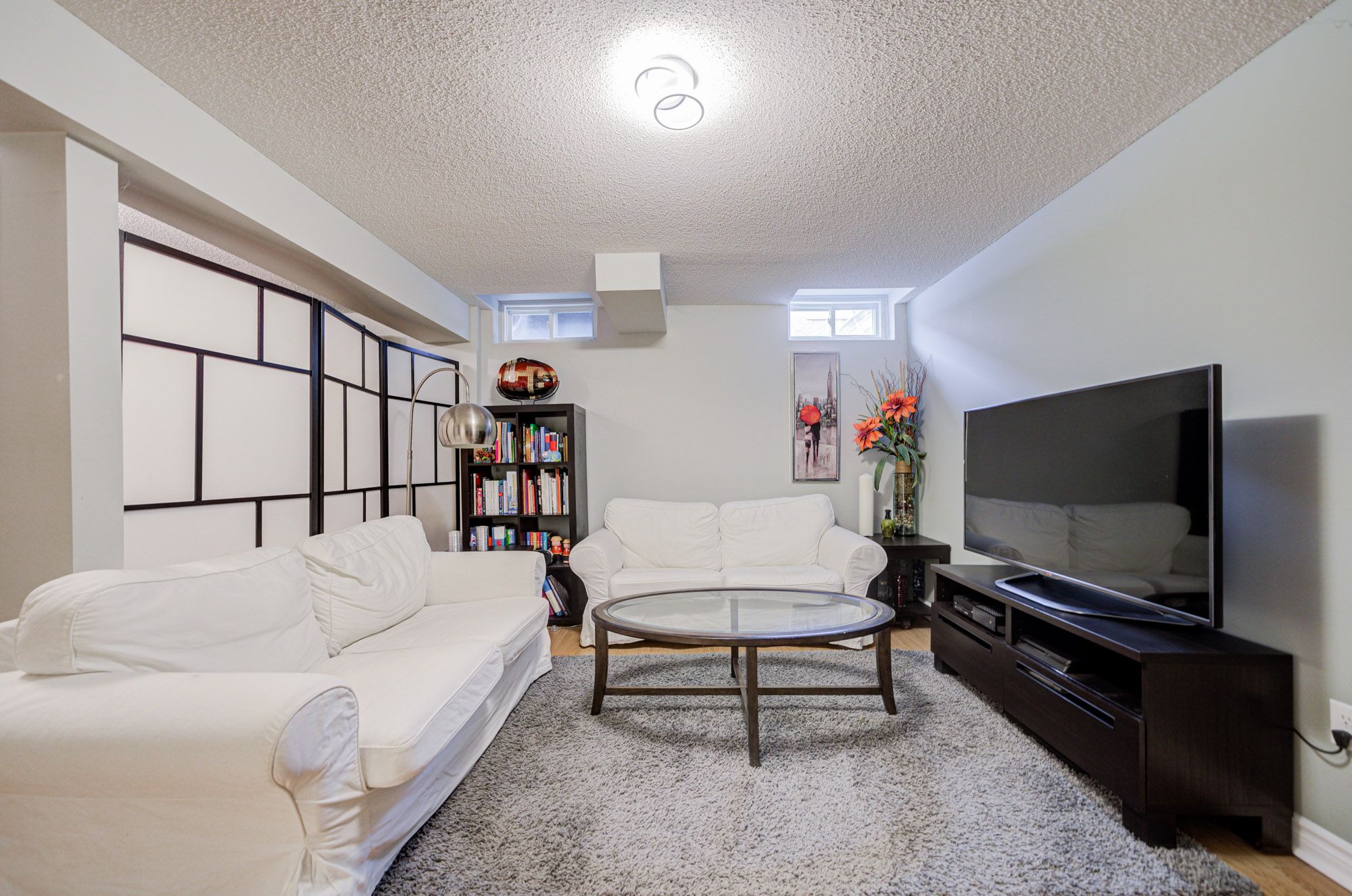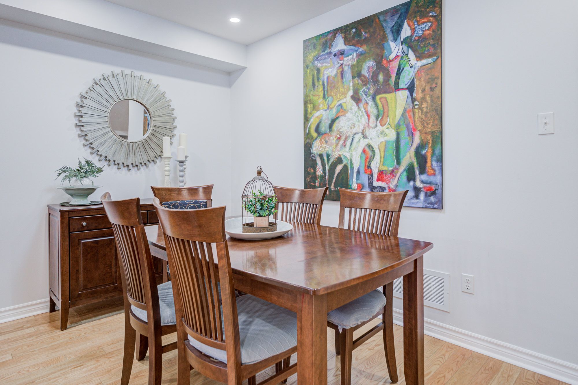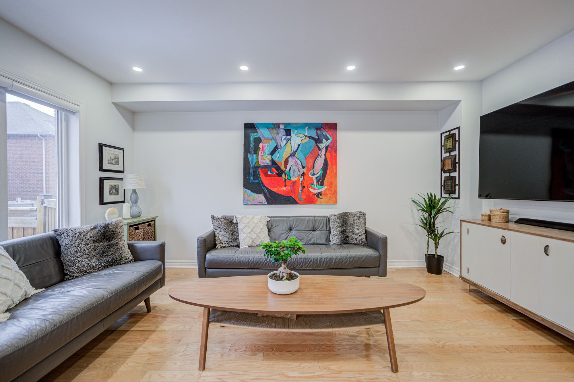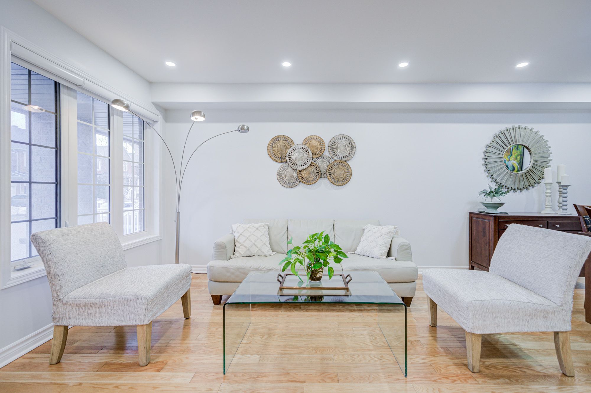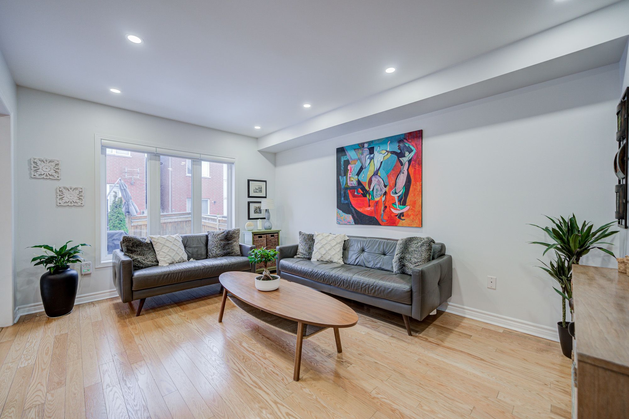 • Bright open-concept living area featuring hardwood flooring and pot lights.