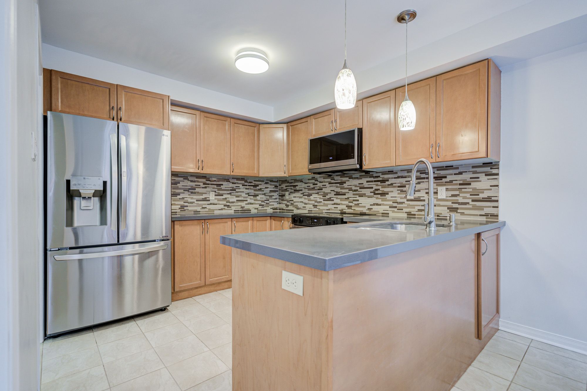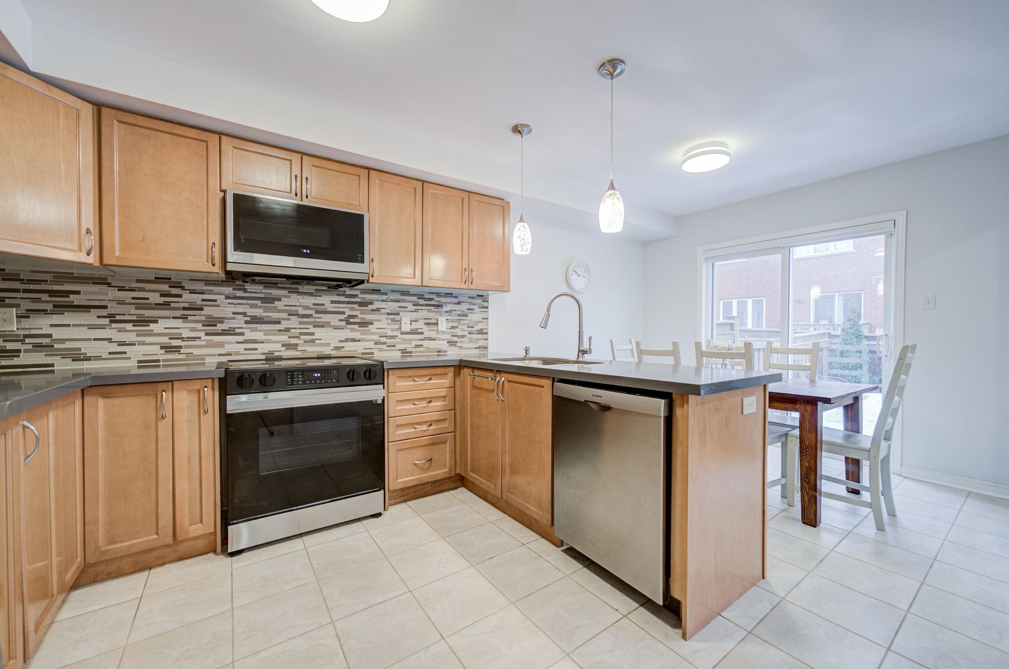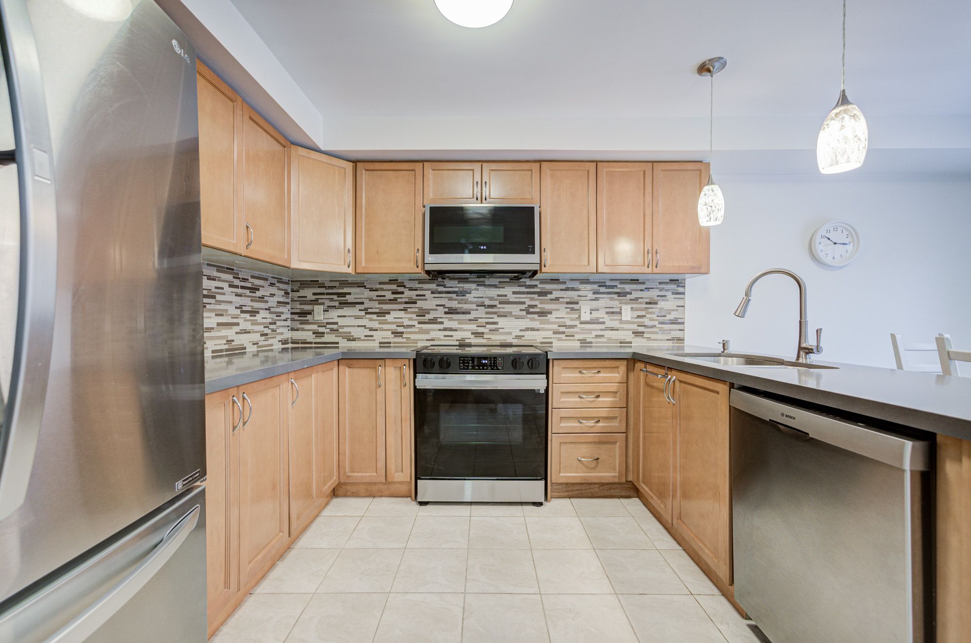 • Modern kitchen with custom cabinetry, quartz countertops, and high-end appliances.