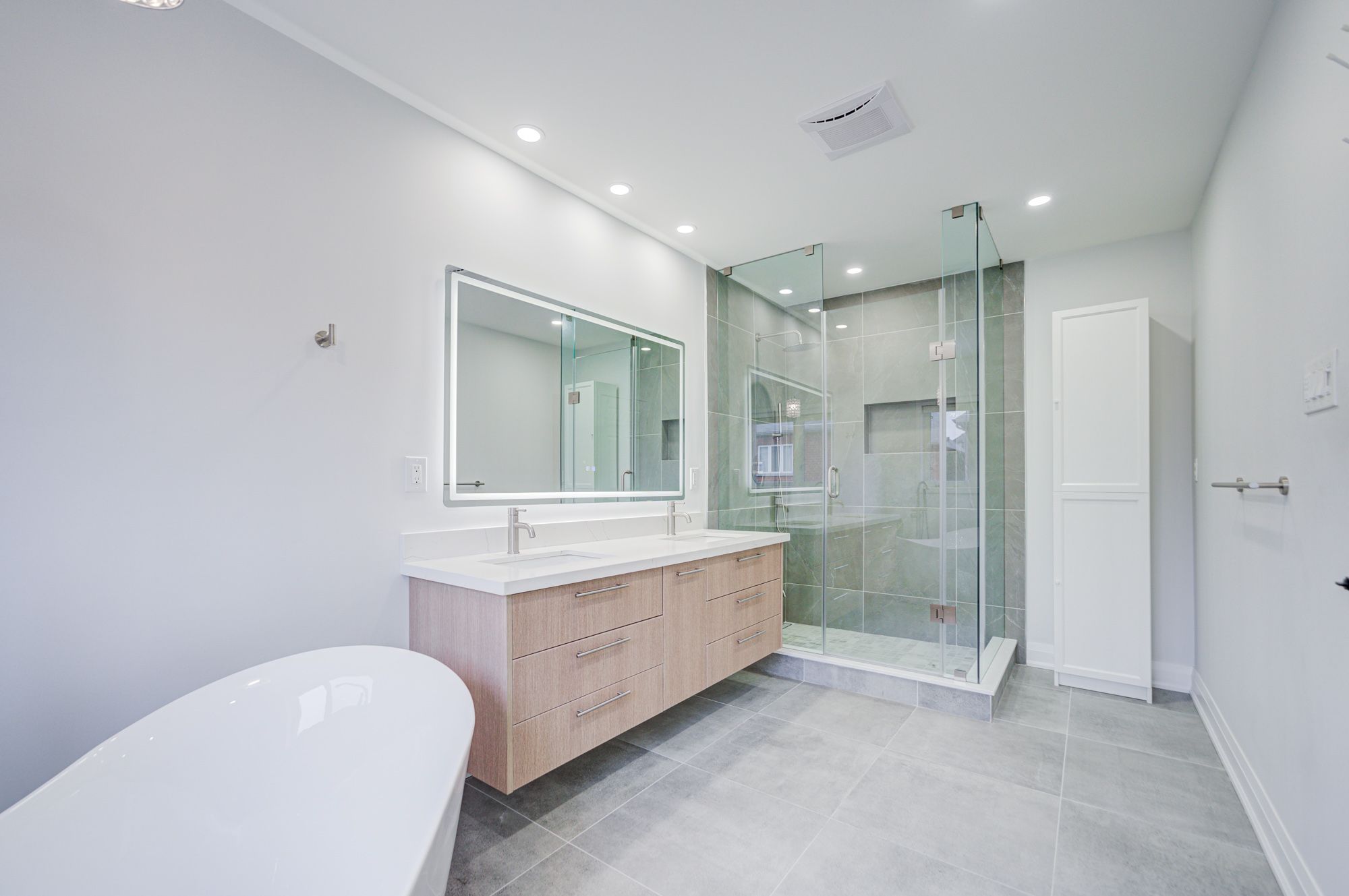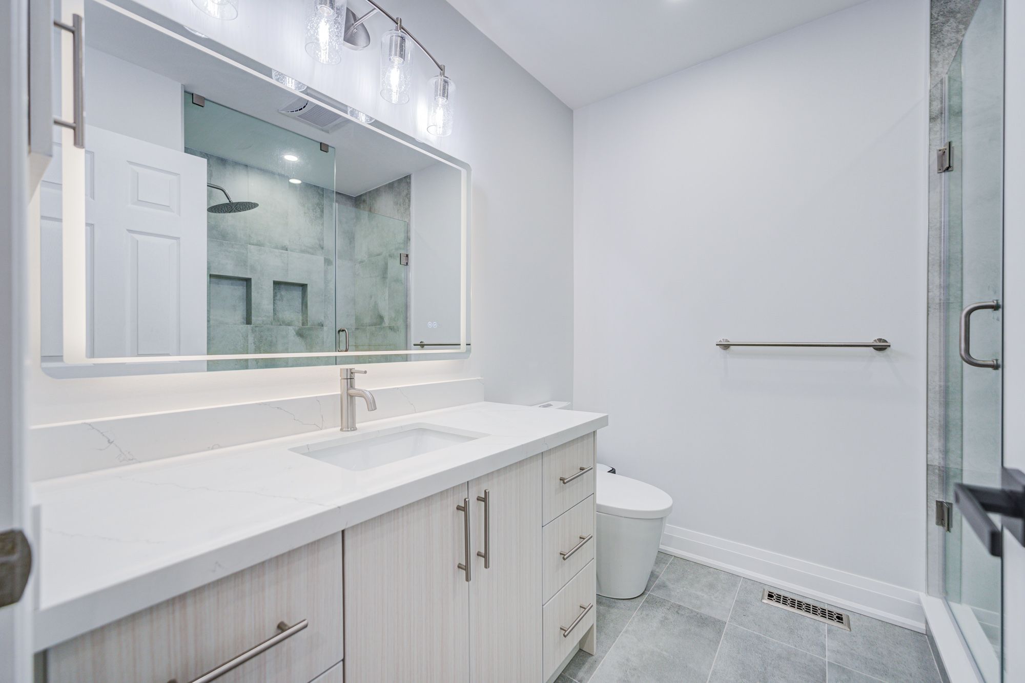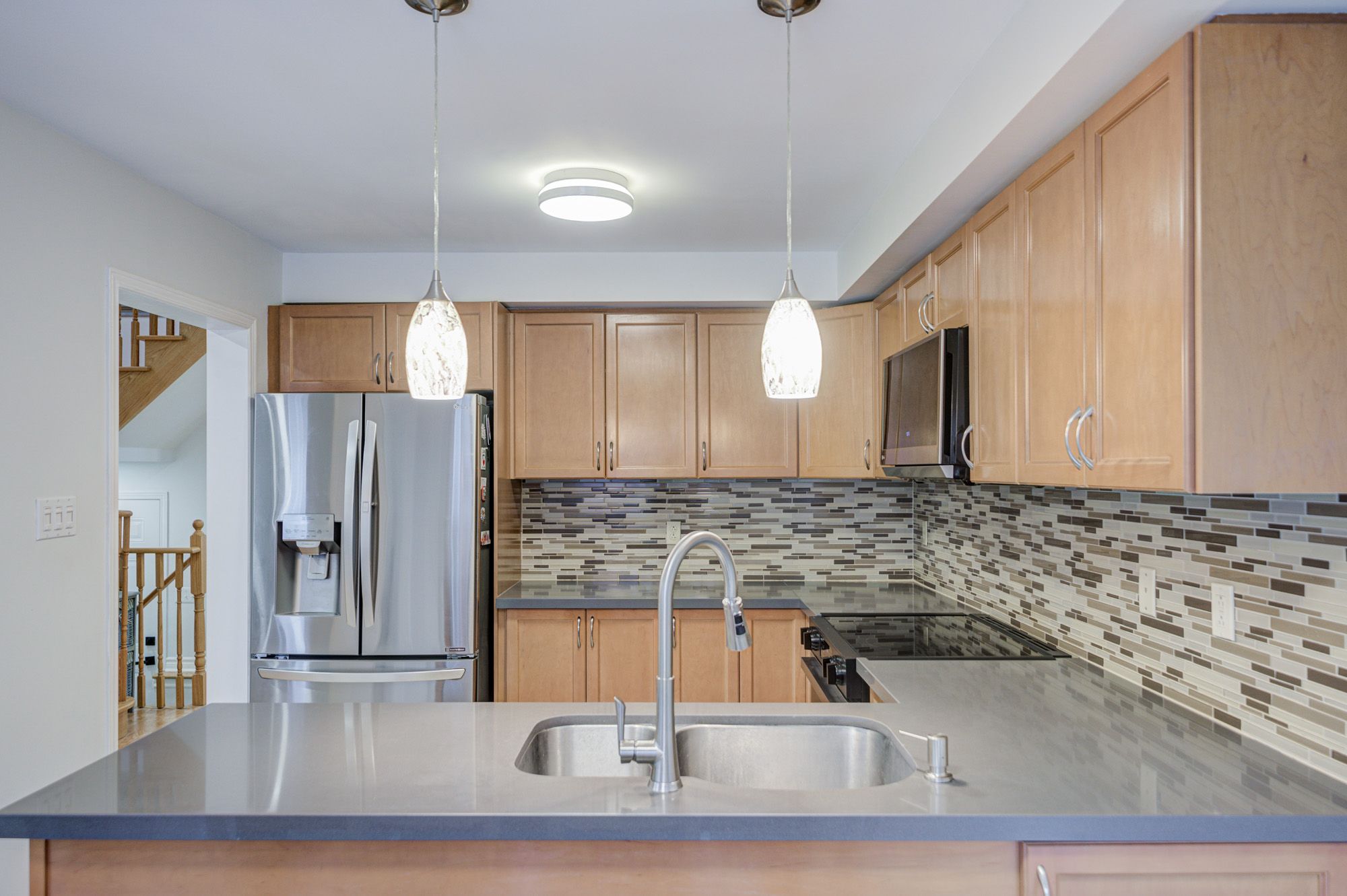 • Modern kitchen with custom cabinetry, quartz countertops, and high-end appliances.