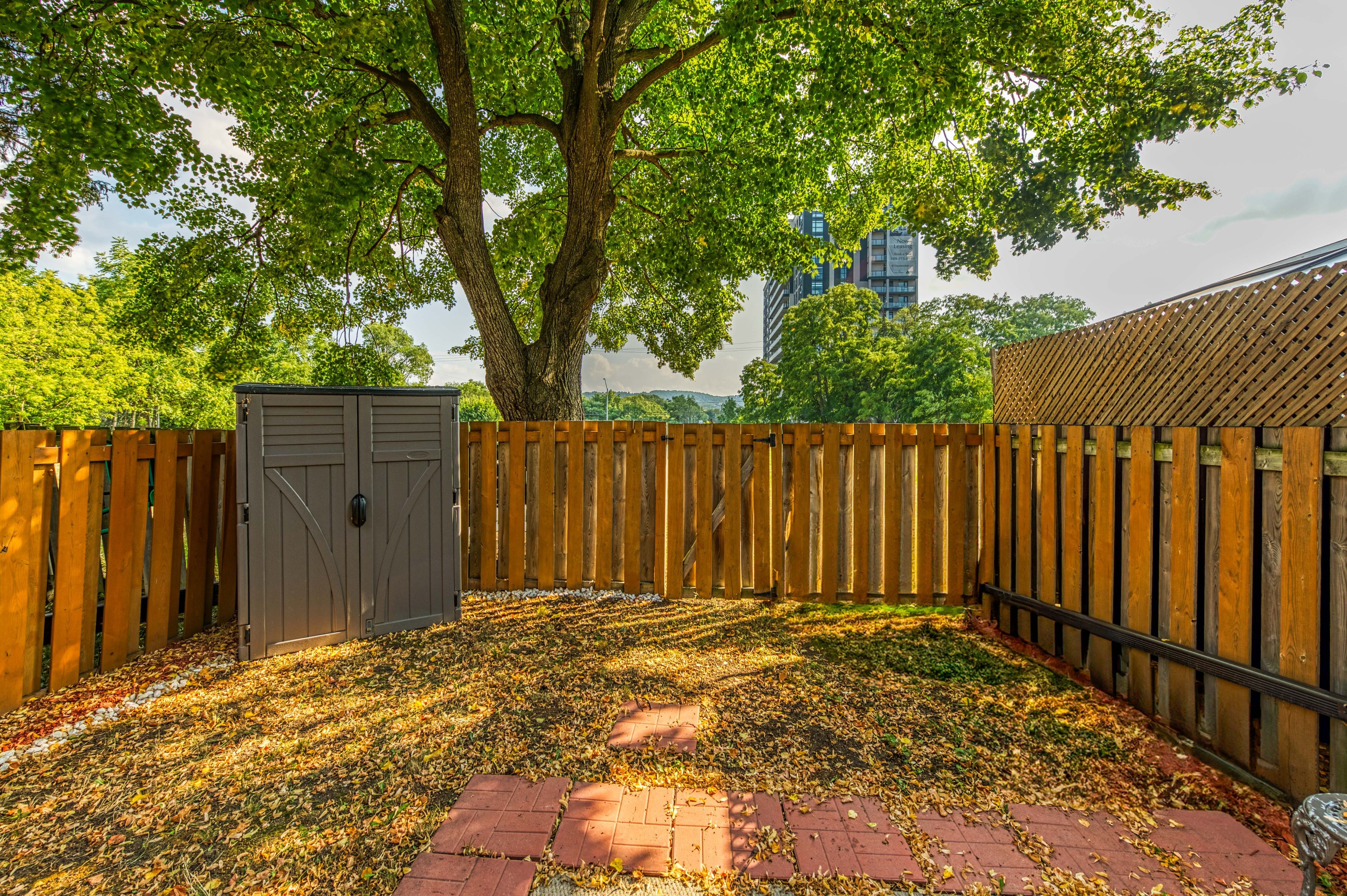 2-storey end unit, 3 bedroom, 2 bathroom townhome with a finished basement and no rear neighbors! This lovely home offers over 1300 square feet of finished living space featuring an updated kitchen, bathrooms, flooring, and a landscaped backyard patio. Condo fee's cover roof, windows, doors, fence, cable tv, water, parking, visitor parking & common elements maintenance. Located in a well maintained quiet complex, steps away from the new centennial parkway go station, shopping malls, schools, parks, library & public transit. 15 minute drive to burlington, 30 minutes to mississauga.