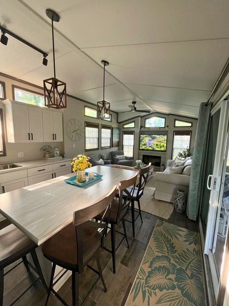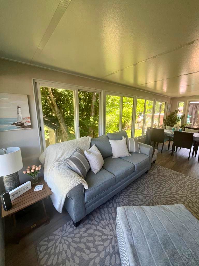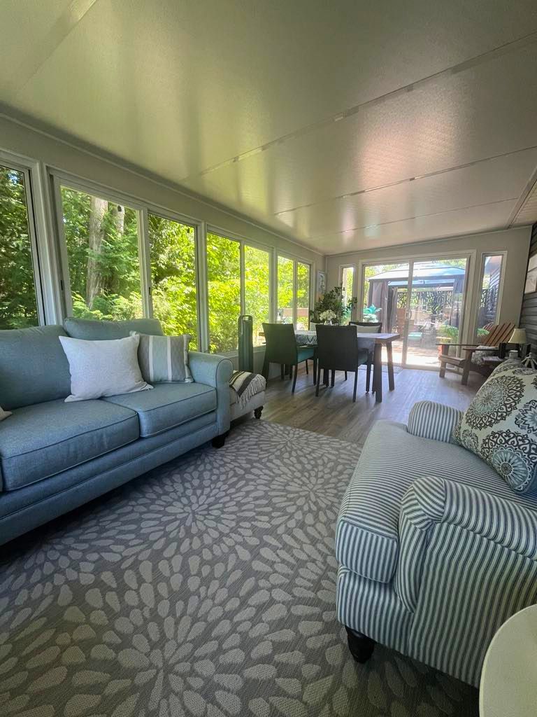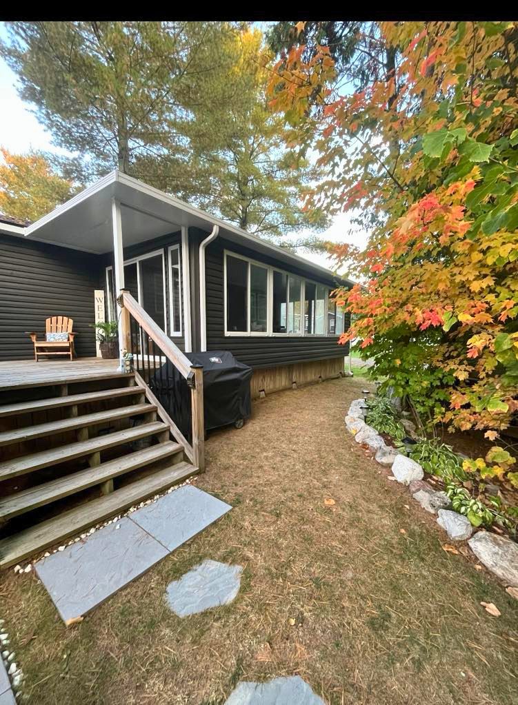 Turnkey 2-bedroom seasonal retreat on a premium private ravine-backed lot in the highly sought-after pioneer point community, offering the perfect balance of privacy and vibrant resort living. This impeccably maintained 2019 general coach manchester model includes a bright 23' x 11' sunroom addition, stainless steel appliances (2024), modern lighting, moen and kohler fixtures, and stylish high-end furnishings throughout. The outdoor space is designed for entertaining and relaxation with a large deck (45') + 120' patio + 30'x11' hardtop gazebo, fire pit, weber bbq, and beautifully landscaped grounds, all surrounded by mature trees with only one neighboring property. Inside features two bedrooms including a queen and double bunk configuration with a douglas mattress (never been used), plus central air, furnace heat, electric fireplace, and a fully equipped kitchen with island. Pioneer point resort is a vibrant, family-friendly gated community offering a wide range of amenities, including two heated pools, a private sandy beach, pickleball courts, beach volleyball, horseshoe pits, a bouncy pillow, kids club, and weekly summer events for all ages. The resort operates seasonally from may 8th to october 31st, providing a low maintenance summer lifestyle. Optional dock rentals are available, with convenient access to nearby beaches, shopping, dining, and local attractions. With 2026 park fees of $6,181 + hst and $300 hydro deposit already paid, this fully furnished property is a rare, move-in-ready opportunity for a carefree seasonal escape.