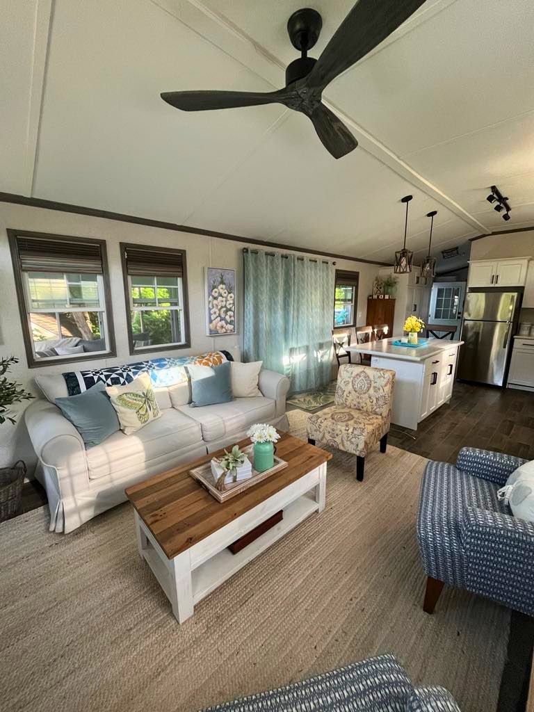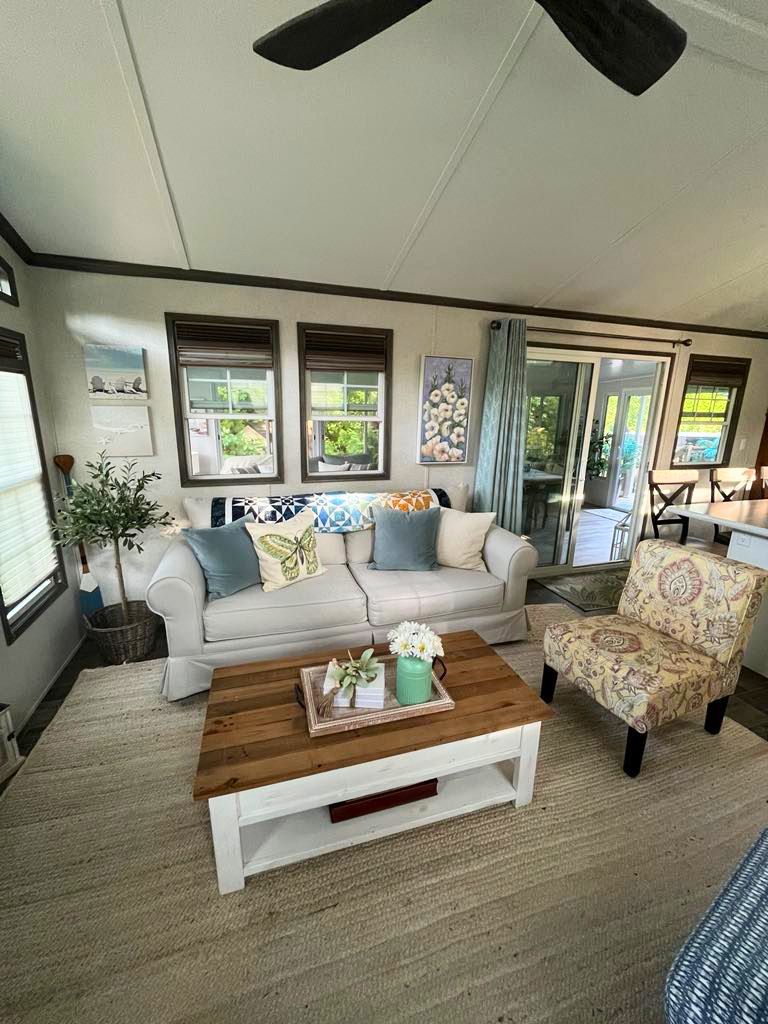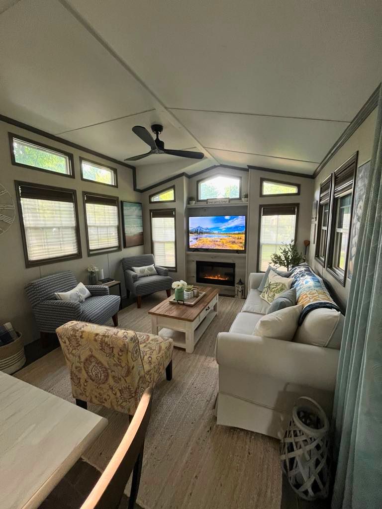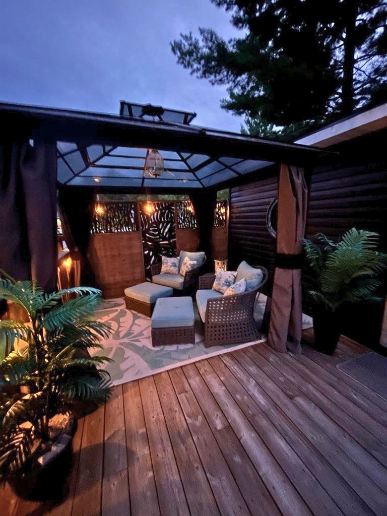 Turnkey 2-bedroom seasonal retreat on a premium private ravine-backed lot in the highly sought-after pioneer point community, offering the perfect balance of privacy and vibrant resort living. This impeccably maintained 2019 general coach manchester model includes a bright 23' x 11' sunroom addition, stainless steel appliances (2024), modern lighting, moen and kohler fixtures, and stylish high-end furnishings throughout. The outdoor space is designed for entertaining and relaxation with a large deck (45') + 120' patio + 30'x11' hardtop gazebo, fire pit, weber bbq, and beautifully landscaped grounds, all surrounded by mature trees with only one neighboring property. Inside features two bedrooms including a queen and double bunk configuration with a douglas mattress (never been used), plus central air, furnace heat, electric fireplace, and a fully equipped kitchen with island. Pioneer point resort is a vibrant, family-friendly gated community offering a wide range of amenities, including two heated pools, a private sandy beach, pickleball courts, beach volleyball, horseshoe pits, a bouncy pillow, kids club, and weekly summer events for all ages. The resort operates seasonally from may 8th to october 31st, providing a low maintenance summer lifestyle. Optional dock rentals are available, with convenient access to nearby beaches, shopping, dining, and local attractions. With 2026 park fees of $6,181 + hst and $300 hydro deposit already paid, this fully furnished property is a rare, move-in-ready opportunity for a carefree seasonal escape.