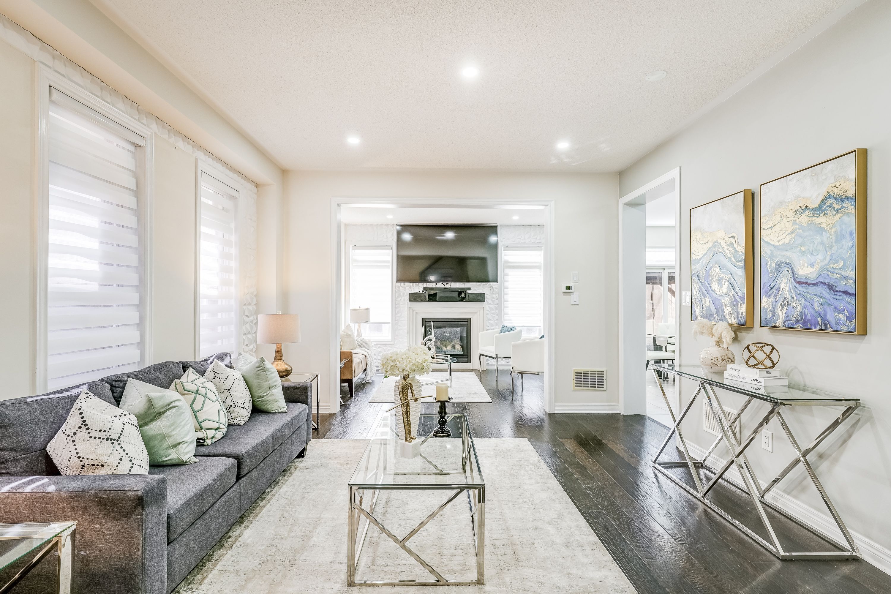 • Hardwood floors, 9' ceilings, and stylish light fixtures throughout.