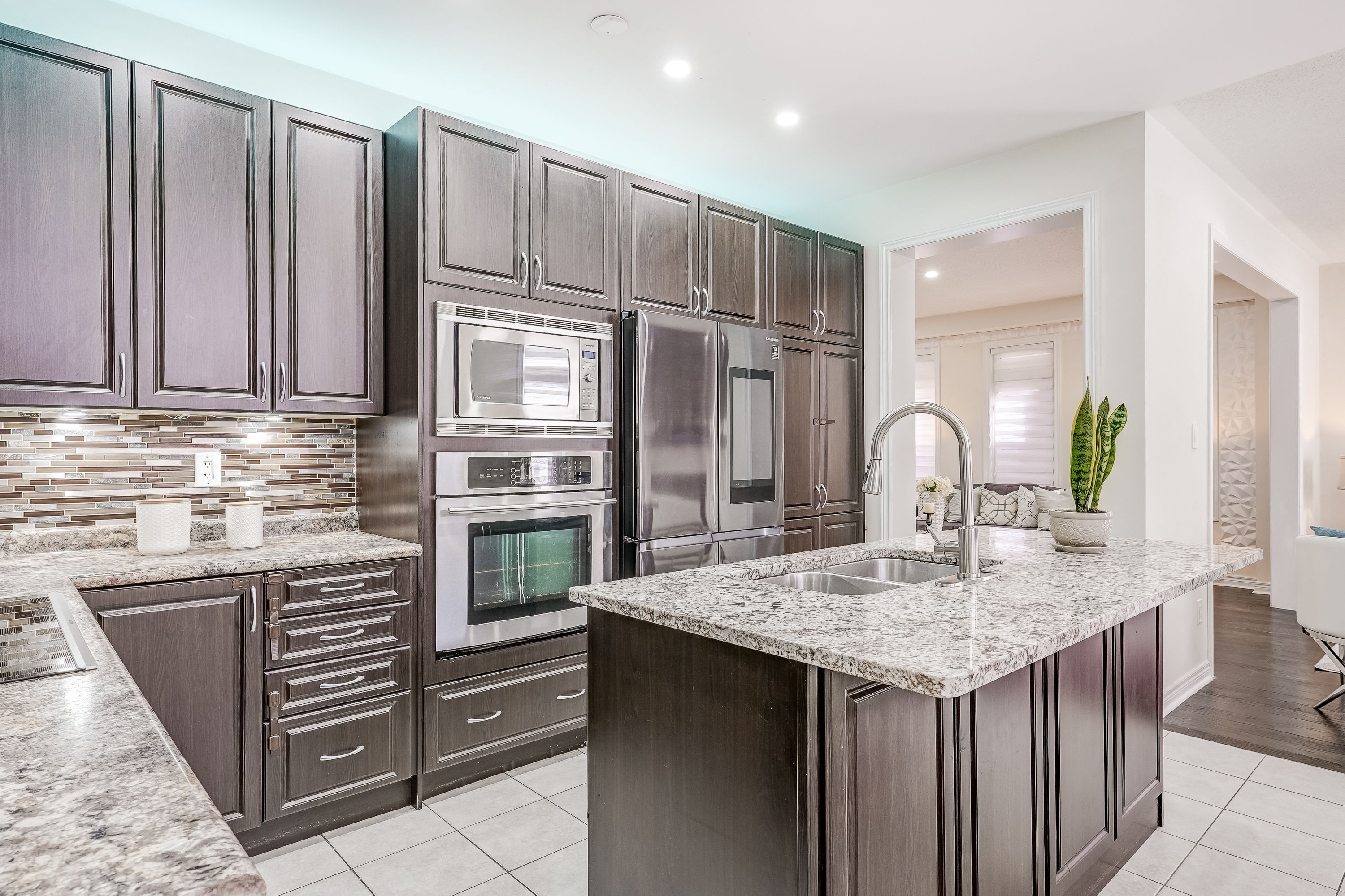 • Upgraded kitchen with stainless steel appliances and custom cabinets.