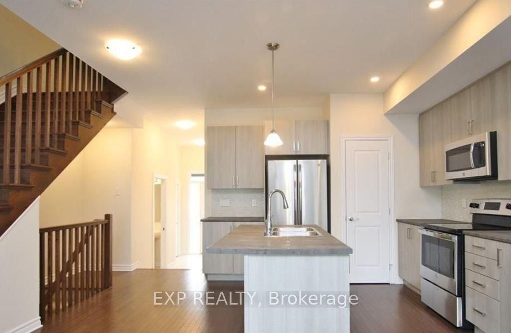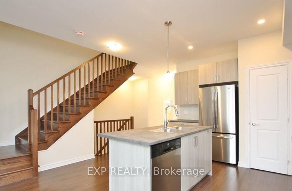 Welcome to this beautifully maintained eq scarlet end-unit townhome, perfectly situated on a quiet crescent in sought-after fernbank crossing. The open-concept main level features 9-foot ceilings and gleaming hardwood floors, creating a bright, stylish, and functional living space. The upgraded kitchen is a chefs dream, complete with stainless steel appliances, an oversized breakfast bar, pot lights, a walk-in pantry, and an over-the-range microwave. Hardwood stairs lead to the second floor, where you will find a spacious primary suite with a walk-in closet and a spa-inspired ensuite boasting double sinks, a soaker tub, and an oversized glass shower. Two additional bedrooms, a convenient second-floor laundry, and a full bath complete this level. The fully finished basement adds versatility with a large rec room and a full bathroom ideal for entertaining, a home office, or overnight guests. With 1,954 sq. Ft. Of living space, this turn-key home offers modern living in a family-friendly community, just minutes from walmart super centre, parks, schools, and scenic trails.