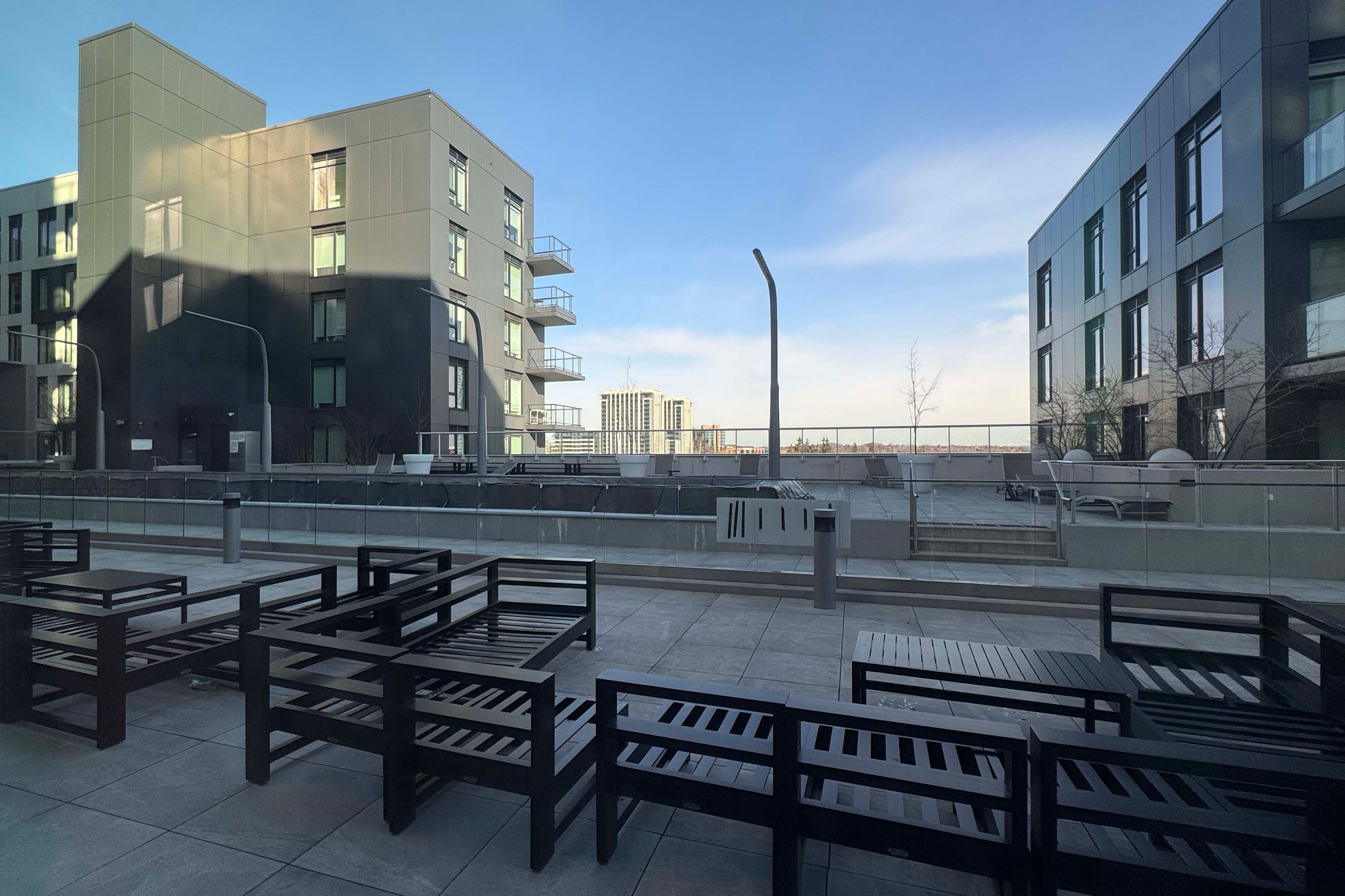• Resort-style features like rooftop terrace, outdoor pool, and fitness room.