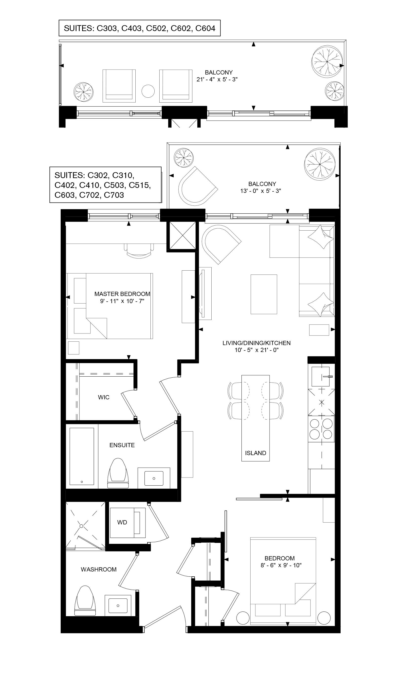• Bright 2-bedroom, 2-bath suite with modern open-concept layout and 9-ft ceilings.