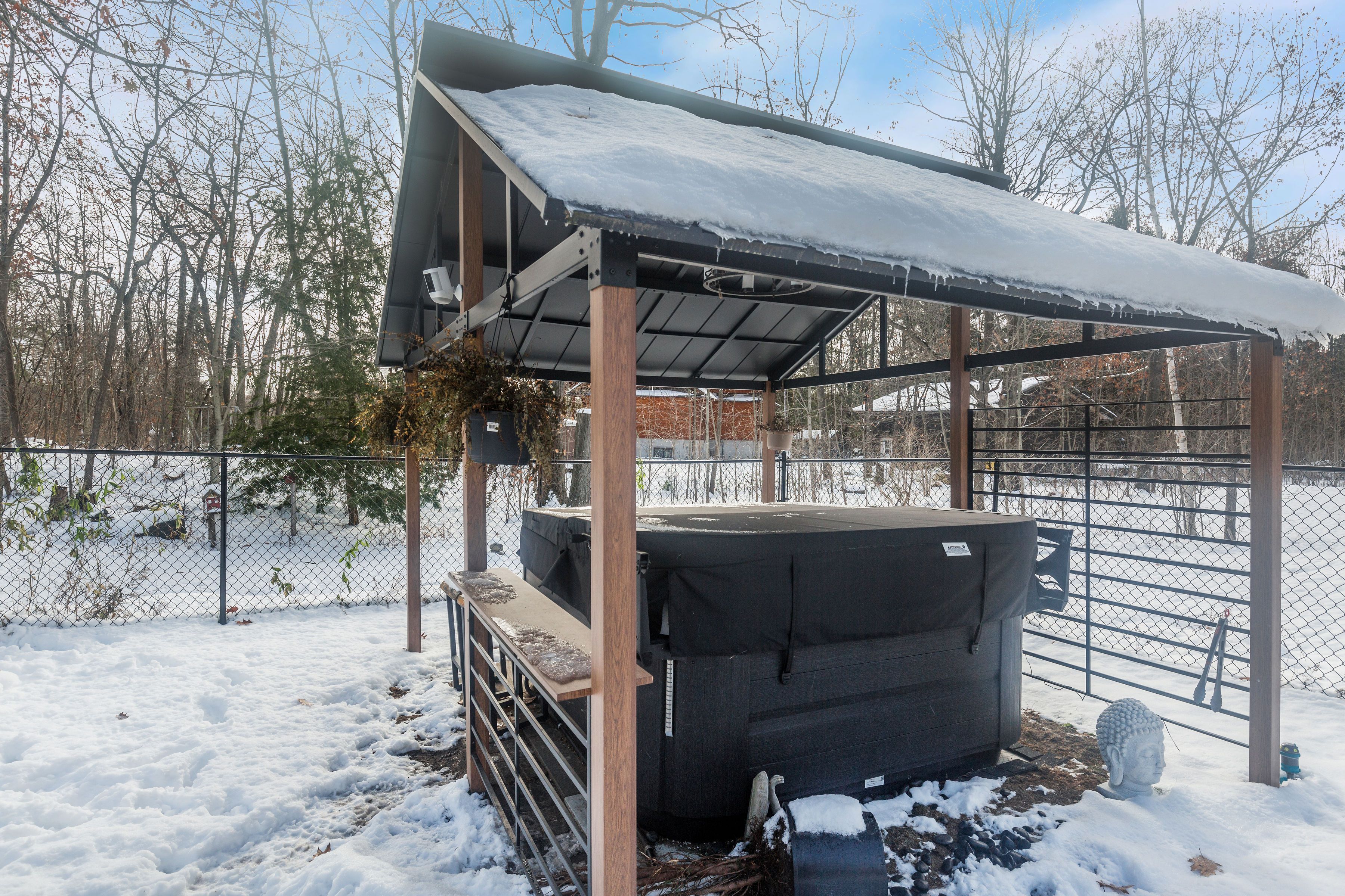 Welcome to 18 sallows dr - a fully renovated bungalow perfectly positioned to enjoy tranquil views of georgian bay. Located on a quiet cul-de-sac in the charming village of victoria harbour, this move-in-ready home offers a thoughtful blend of comfort, style, and modern updates. Step inside to find 3 bedrooms plus a dedicated office, along with a spacious eat-in kitchen featuring brand-new appliances. The home has seen extensive renovations, including new shingles (2018/2019), new air-conditioner, a vaulted ceiling with r31 spray foam insulation, new lvp flooring, updated lighting, and a fully renovated bathroom. Enjoy outdoor living on this generous property complete with a detached garage and powered shed, plus parking for up to 5 vehicles. A major bonus for the new owner is the new jacuzzi j-435 hot tub, perfect for relaxing year-round. Ideally situated just minutes from marinas, golf courses, ski hills, and the renowned tay rail trail - which features over 17 km of scenic paved pathways - this location offers endless opportunities for recreation and relaxation.