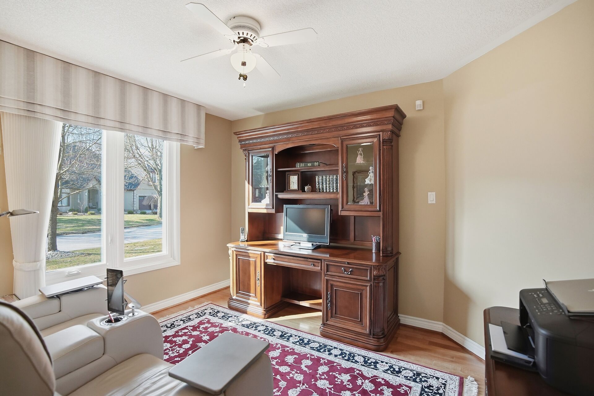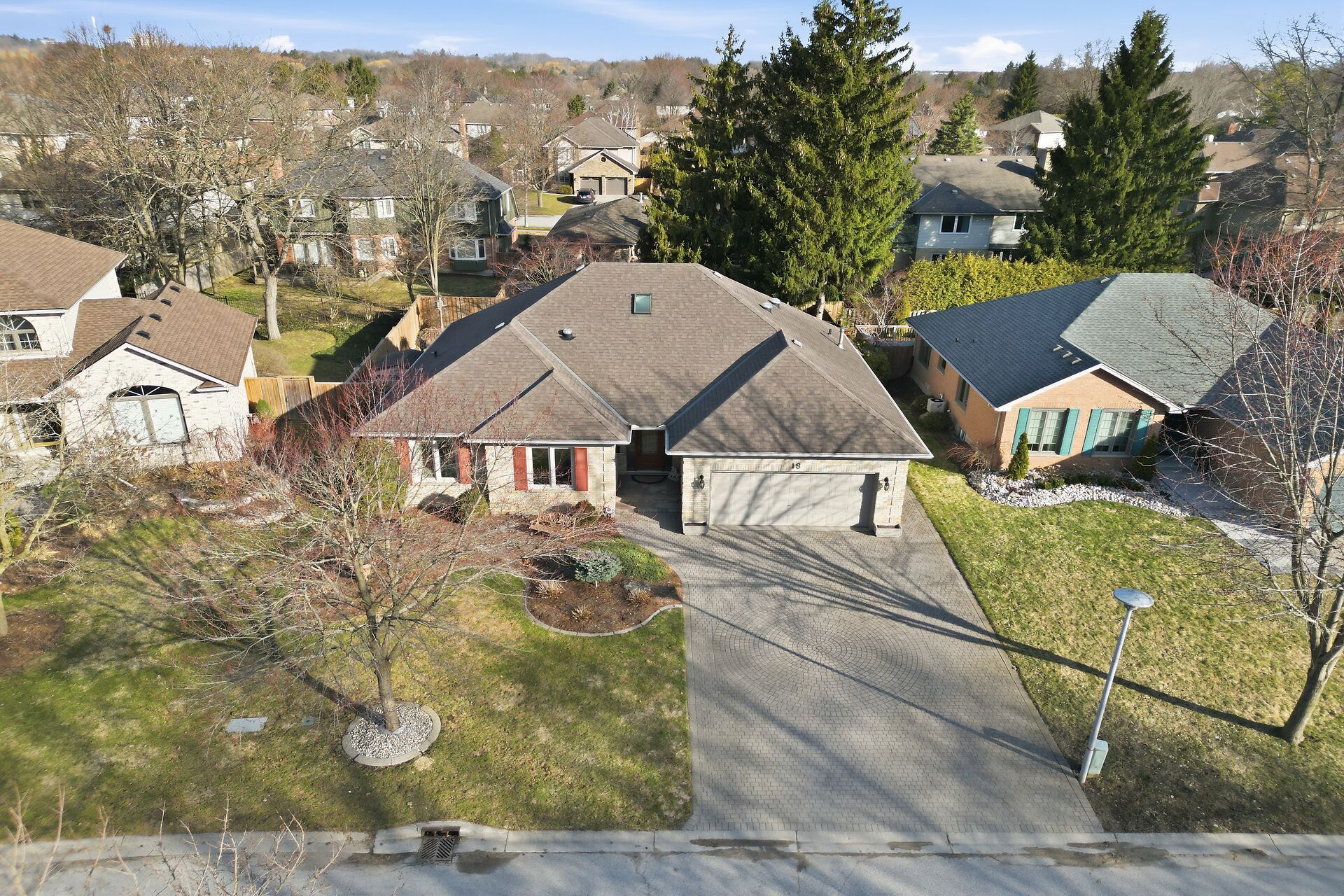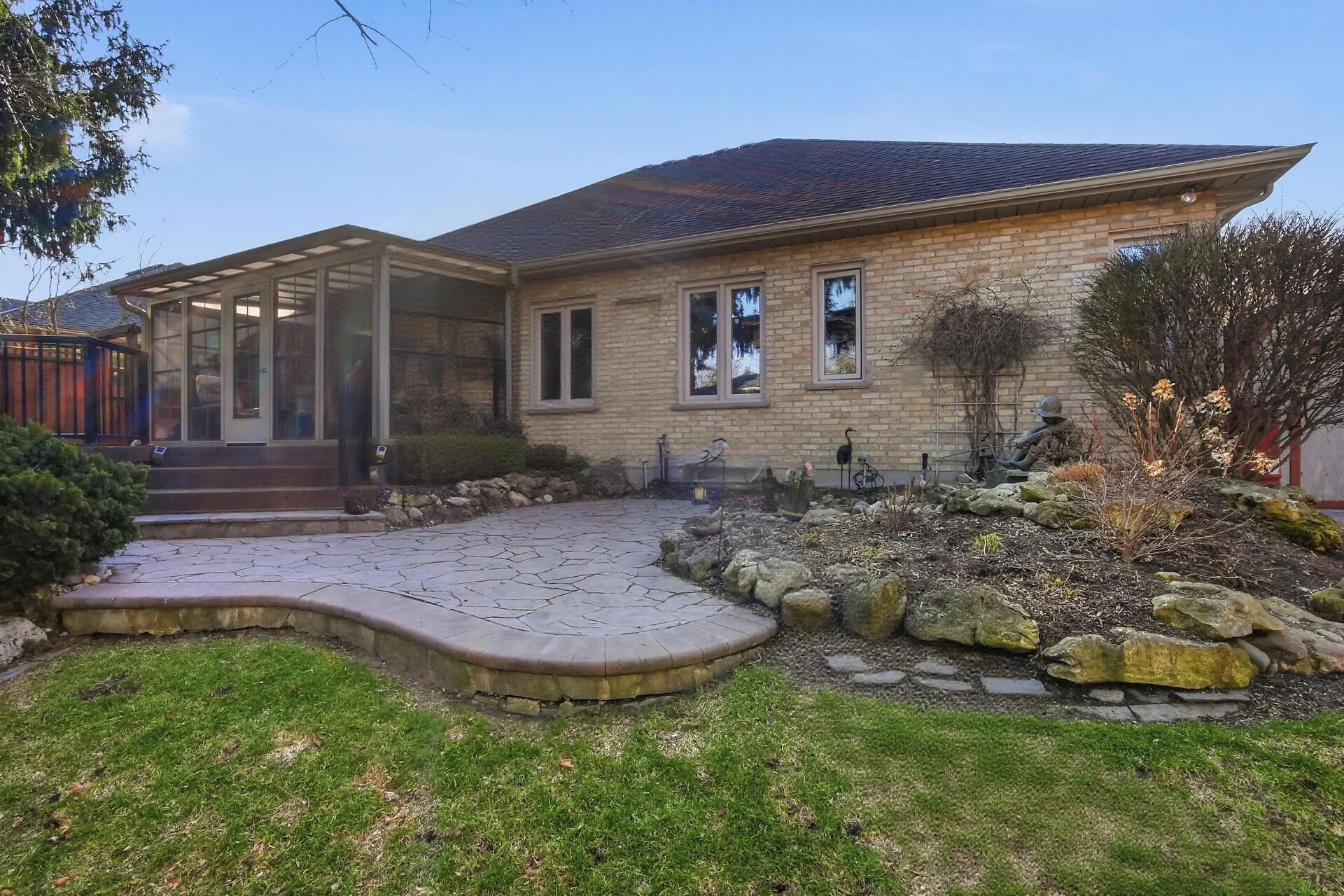 Welcome to this beautifully maintained home, showcasing true pride of ownership throughout. Kept in like-new condition, it features original hardwood through most of the home and a warm, inviting layout where no detail has been overlooked. The main living space is highlighted by soaring 12-ft vaulted ceilings and a cozy gas fireplace, with a separate dining room and bright three-season sunroom adding to the home's functionality and charm. The kitchen is equipped with newer ge appliances, including a built-in wall oven and countertop stove, complemented by sleek silestone countertops. Upstairs offers two bedrooms plus a versatile den, along with two full bathrooms, including a primary ensuite with walk-in closet. The finished basement provides two additional bedrooms, a third full bathroom, new carpeting, a cold cellar, and a spacious utility room with ample storage. With a walk-up to the garage and ceiling height suitable for a potential secondary kitchen, the space offers excellent flexibility. Outside, enjoy a fully landscaped backyard complete with a beautiful deck and water feature-perfect for relaxing or entertaining. The double car garage and interlocking driveway provide parking for multiple vehicles with ease. Additional updates include newer carpet in the basement, eavestrough covers, and an on demand water heater. Located in a sought-after neighbourhood close to western university, the university hospital, and masonville mall, this is a rare opportunity to own a beautiful home that has been exceptionally cared for.