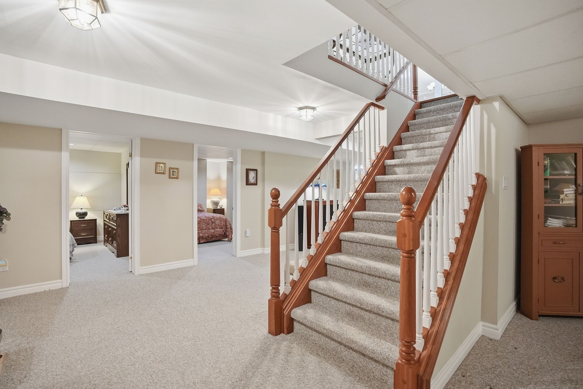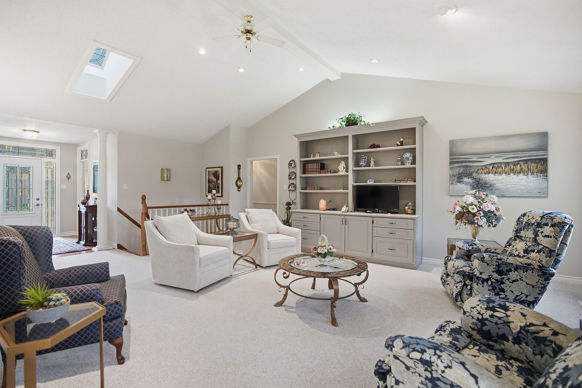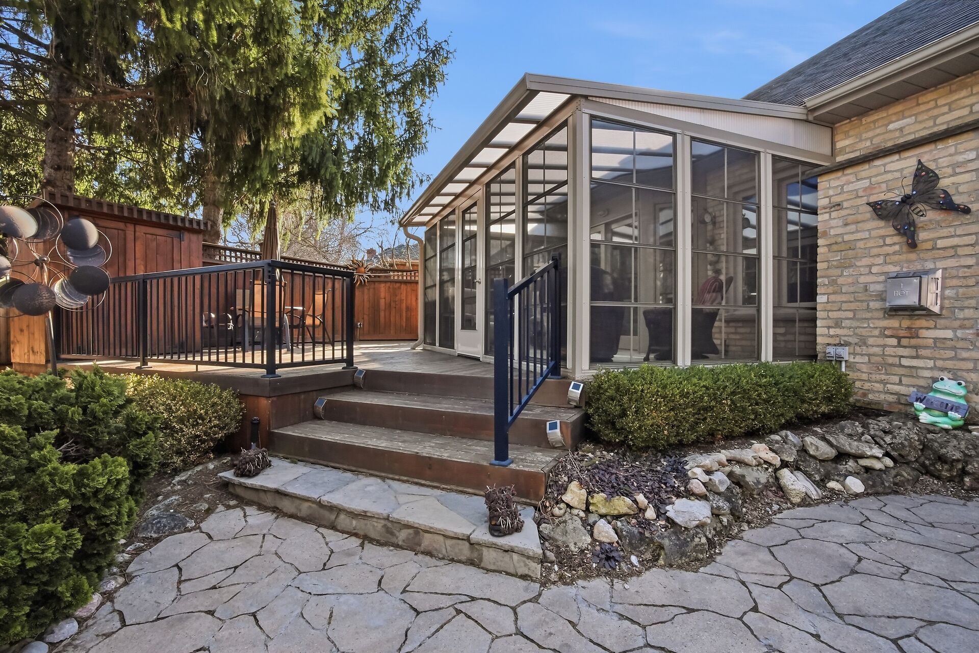 Welcome to this beautifully maintained home, showcasing true pride of ownership throughout. Kept in like-new condition, it features original hardwood through most of the home and a warm, inviting layout where no detail has been overlooked. The main living space is highlighted by soaring 12-ft vaulted ceilings and a cozy gas fireplace, with a separate dining room and bright three-season sunroom adding to the home's functionality and charm. The kitchen is equipped with newer ge appliances, including a built-in wall oven and countertop stove, complemented by sleek silestone countertops. Upstairs offers two bedrooms plus a versatile den, along with two full bathrooms, including a primary ensuite with walk-in closet. The finished basement provides two additional bedrooms, a third full bathroom, new carpeting, a cold cellar, and a spacious utility room with ample storage. With a walk-up to the garage and ceiling height suitable for a potential secondary kitchen, the space offers excellent flexibility. Outside, enjoy a fully landscaped backyard complete with a beautiful deck and water feature-perfect for relaxing or entertaining. The double car garage and interlocking driveway provide parking for multiple vehicles with ease. Additional updates include newer carpet in the basement, eavestrough covers, and an on demand water heater. Located in a sought-after neighbourhood close to western university, the university hospital, and masonville mall, this is a rare opportunity to own a beautiful home that has been exceptionally cared for.