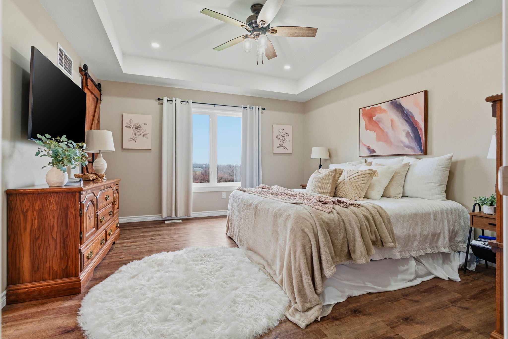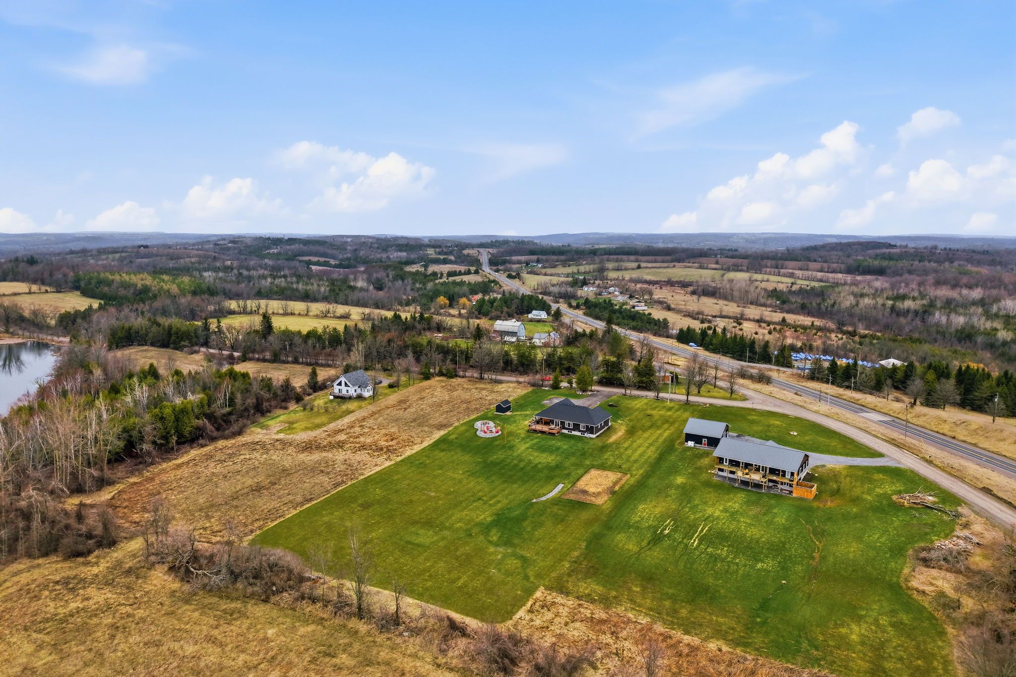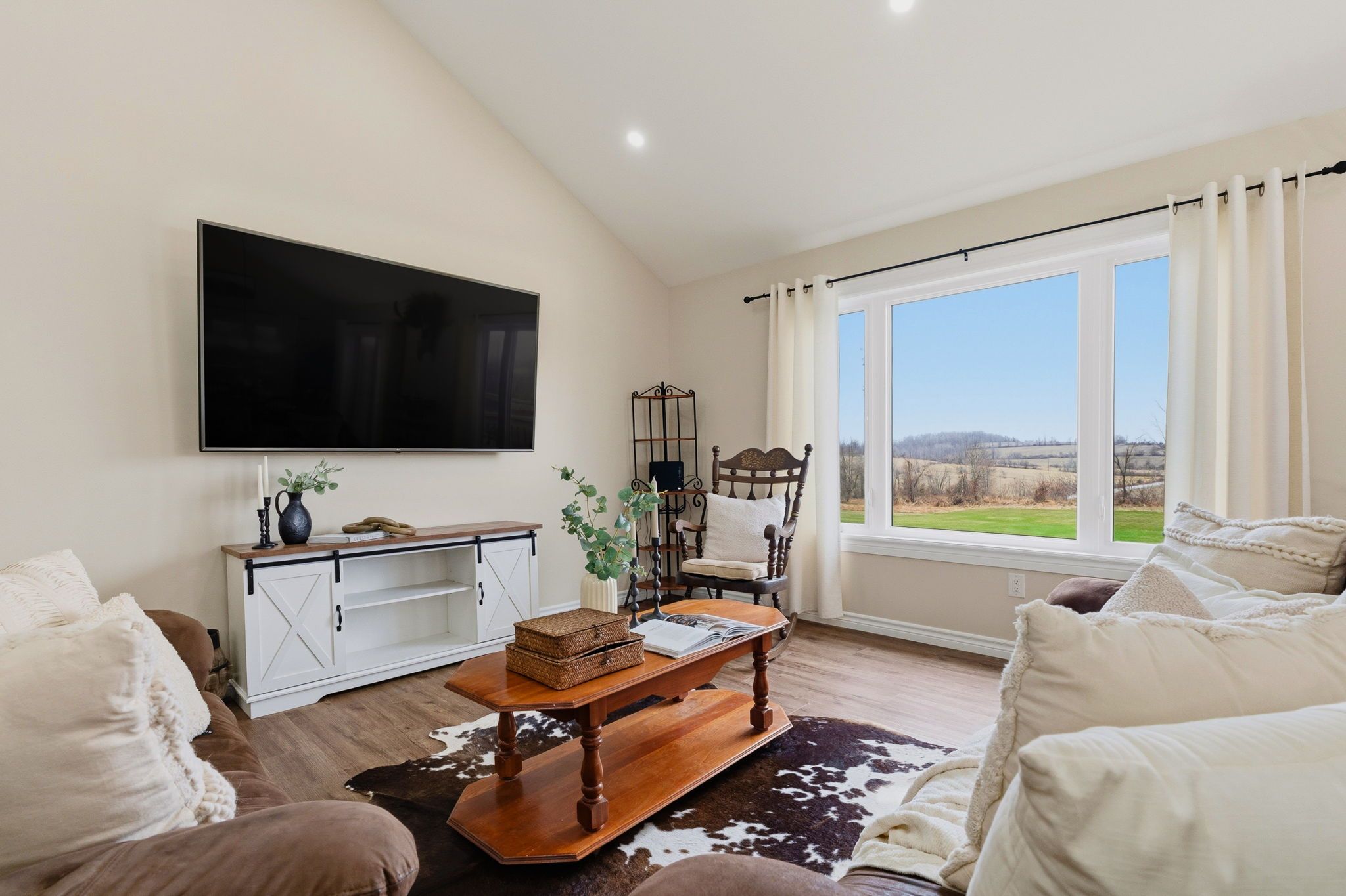 Well maintained 2020 built bungalow on 2 acres, offering a country setting with the comfort of nearby neighbours. Thoughtfully designed for main floor living with 3 bedrooms, including a primary with 4 piece ensuite, plus a second full 4 piece bath. Main floor laundry and direct access from the attached 2 car garage add everyday convenience. Open concept kitchen, dining and living space with warm, rustic character and an easy, functional flow. The attached 2 car garage includes a separate bonus room, ideal for a home business, workshop, or hobby space. Enjoy the outdoors with a large back deck, expansive yard, and a dedicated fire pit area with built in swings. Additional shed provides practical storage for tools and equipment. A solid, move in ready home on a generous lot, offering space both inside and out.