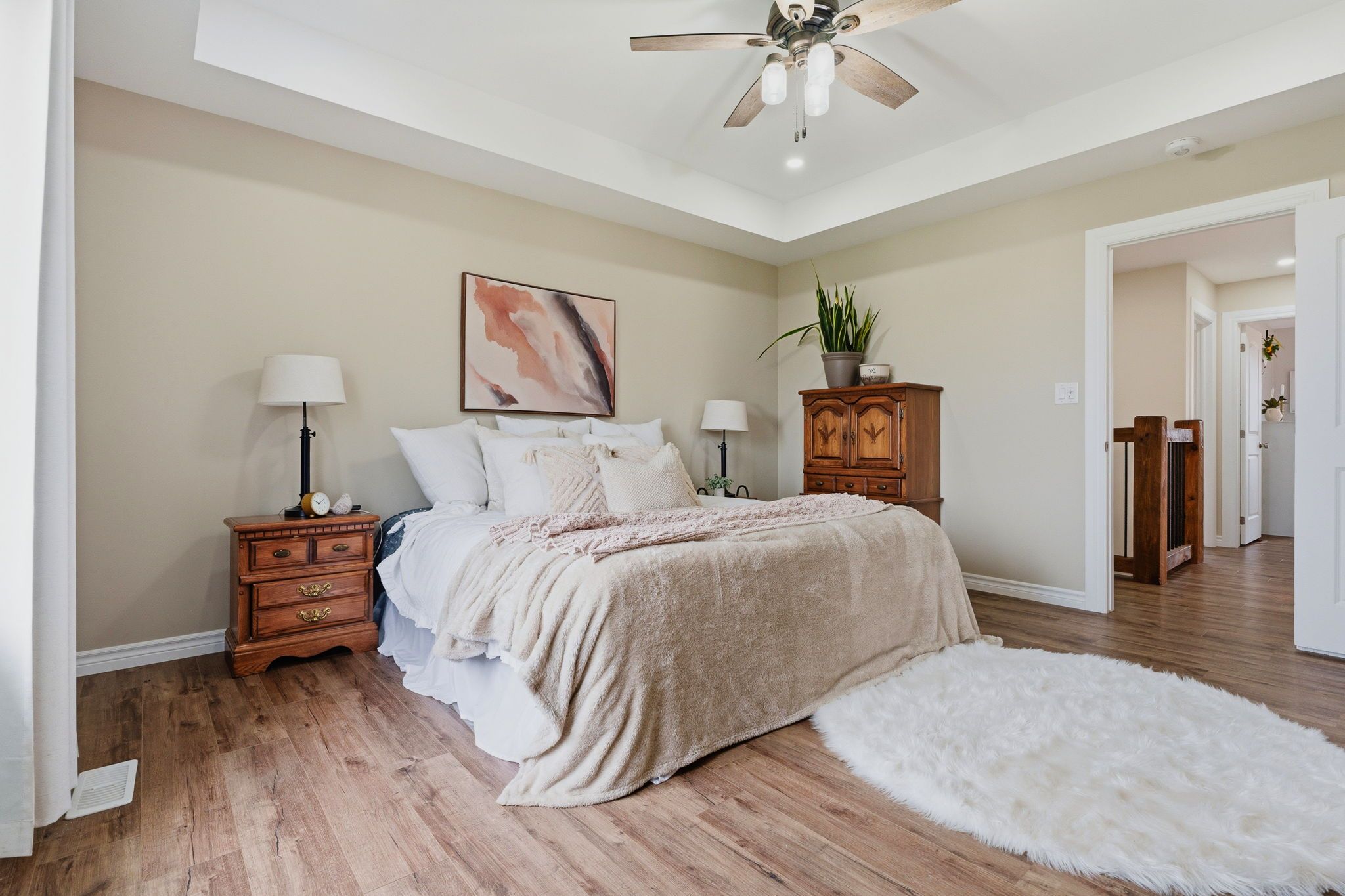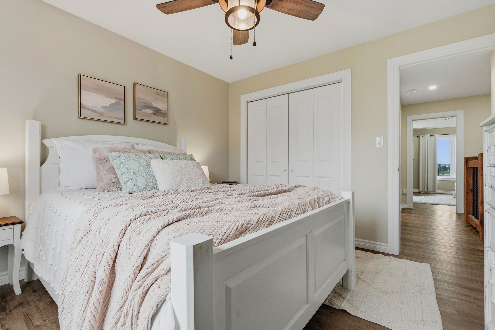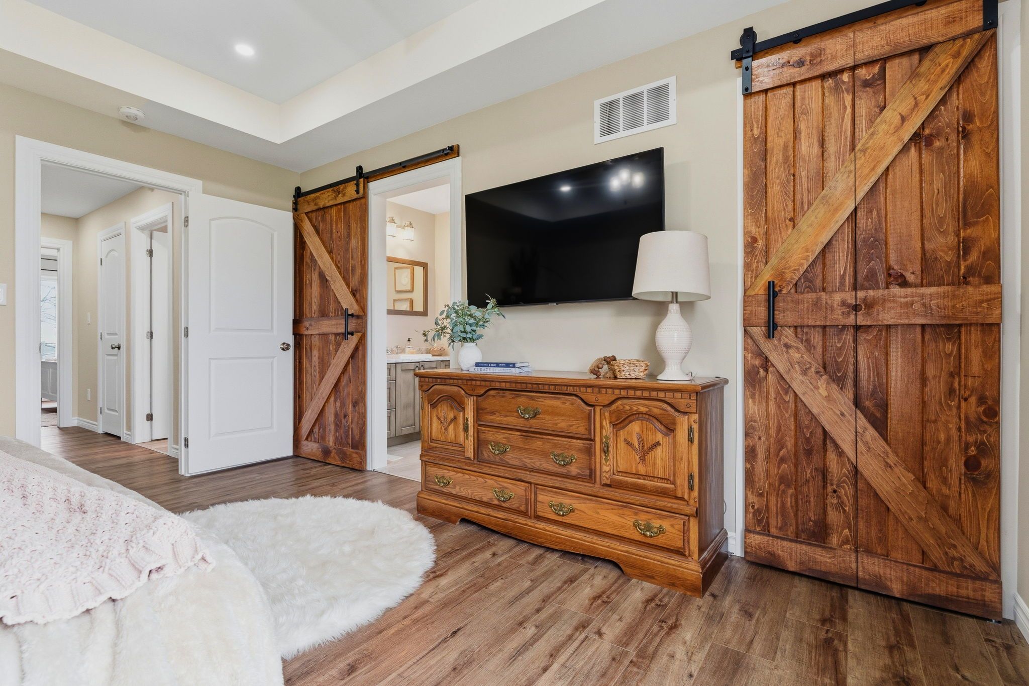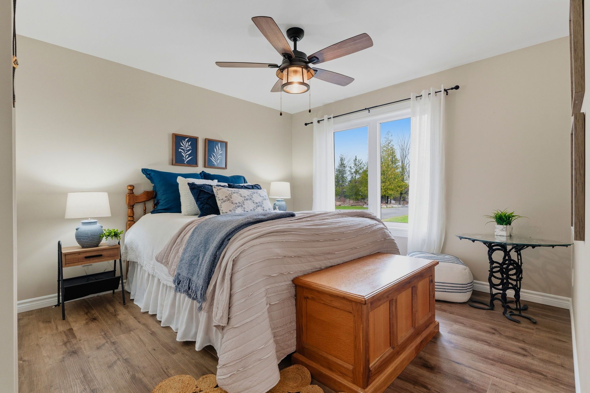 Well maintained 2020 built bungalow on 2 acres, offering a country setting with the comfort of nearby neighbours. Thoughtfully designed for main floor living with 3 bedrooms, including a primary with 4 piece ensuite, plus a second full 4 piece bath. Main floor laundry and direct access from the attached 2 car garage add everyday convenience. Open concept kitchen, dining and living space with warm, rustic character and an easy, functional flow. The attached 2 car garage includes a separate bonus room, ideal for a home business, workshop, or hobby space. Enjoy the outdoors with a large back deck, expansive yard, and a dedicated fire pit area with built in swings. Additional shed provides practical storage for tools and equipment. A solid, move in ready home on a generous lot, offering space both inside and out.
