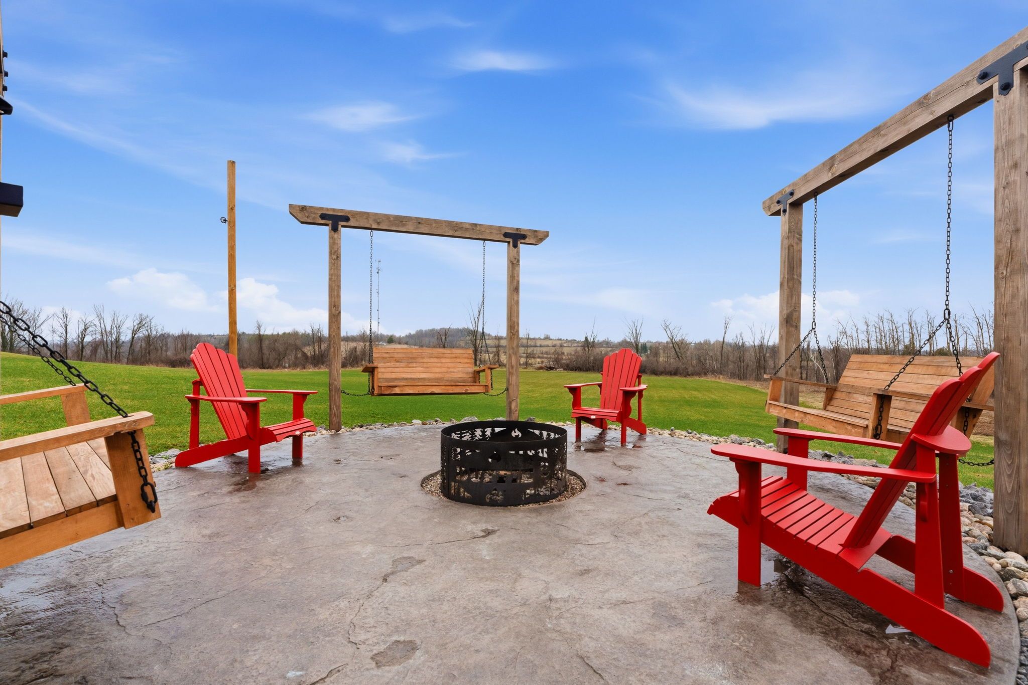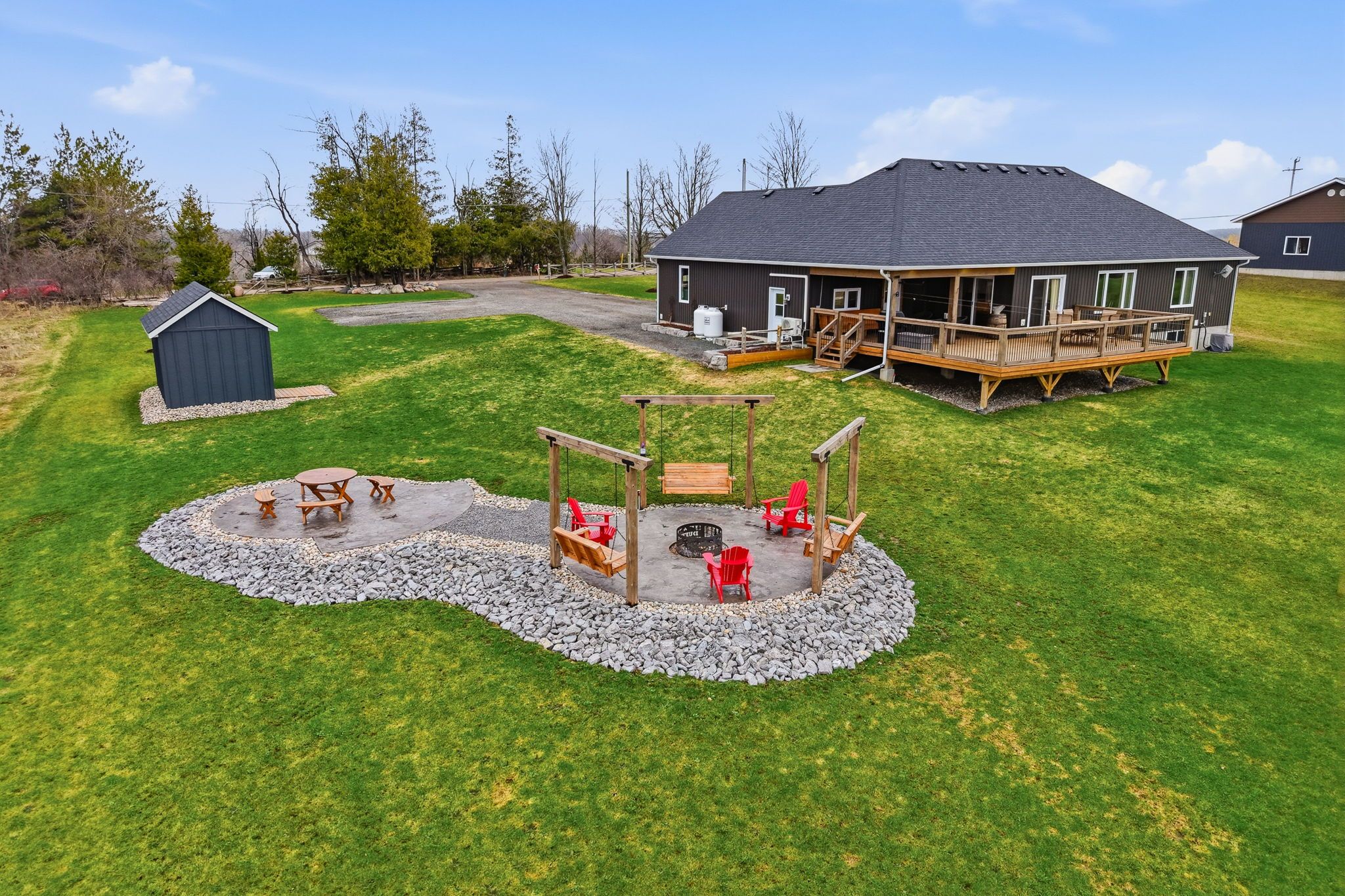 • Large back deck and fire pit area, perfect for outdoor gatherings.