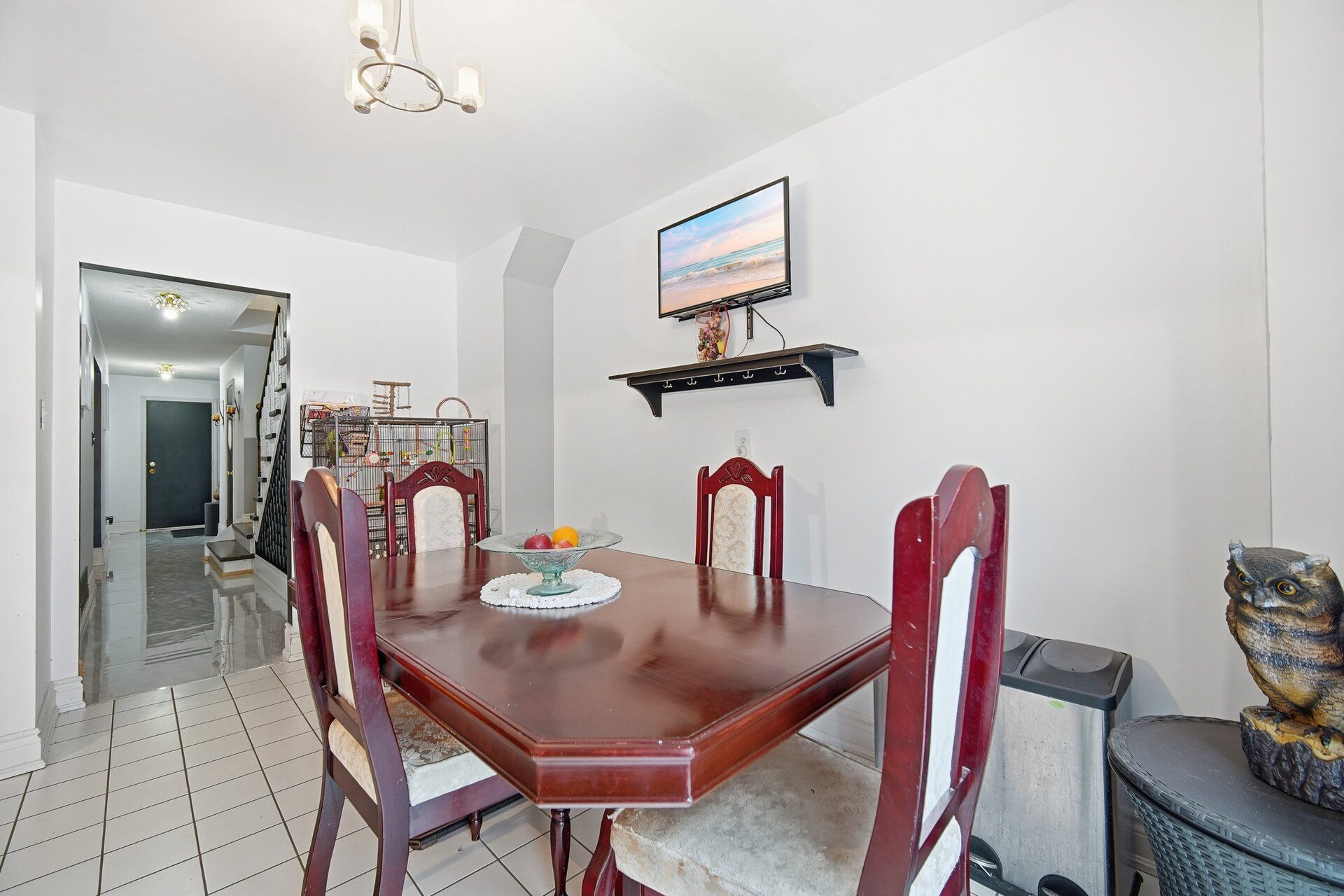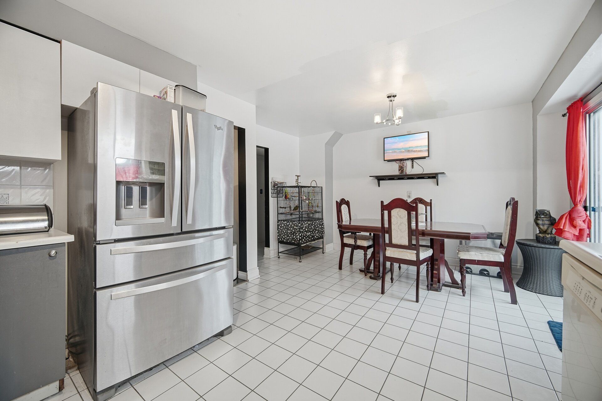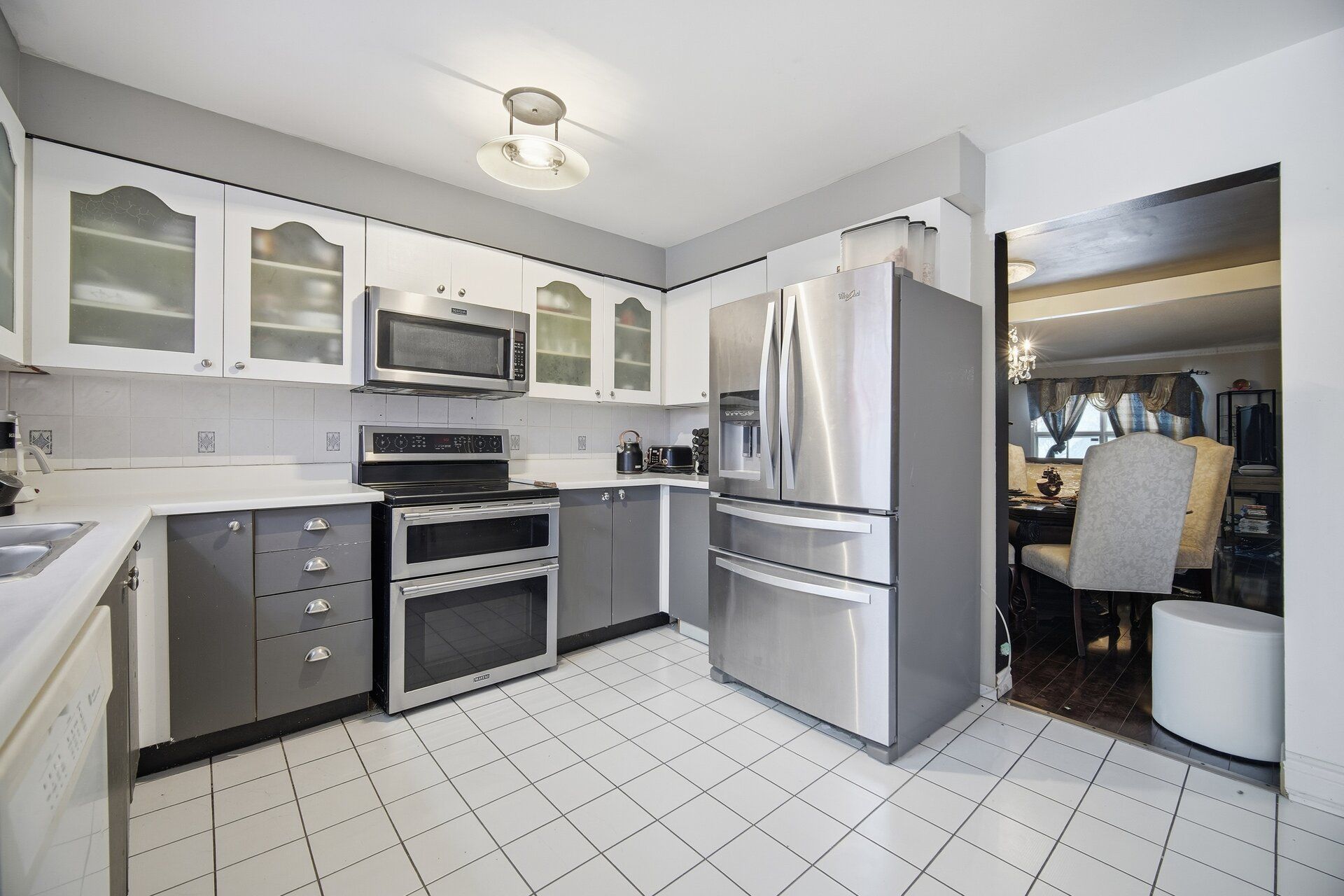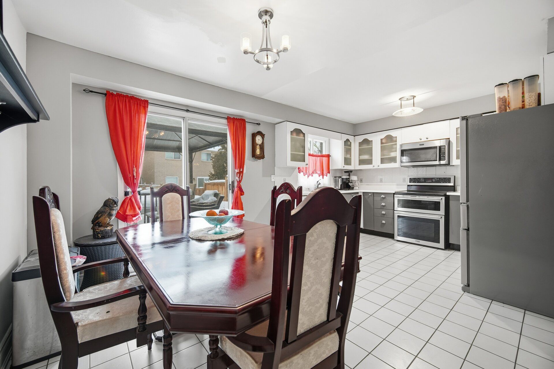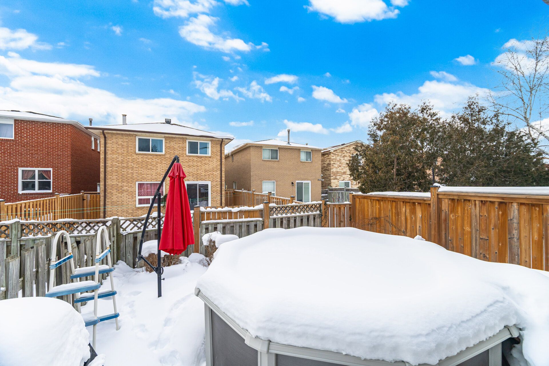 • Eat-in kitchen with walkout to private yard and above-ground pool.