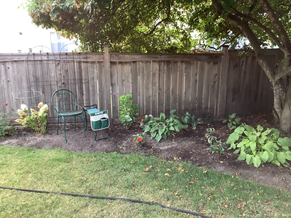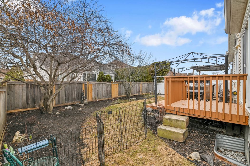 • Fully fenced south-facing backyard with a deck and patio.