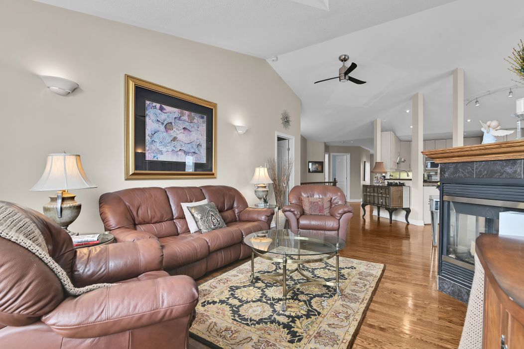 Welcome to 18 spinney way in barrhaven. This beautiful tartan banff bungalow model features approximately 1,747 sq. Ft. Of living space. The main level offers a bright, light-filled open-concept layout, with vaulted ceilings and large windows. It includes a large living room, dining area, 3-sided gas fireplace and kitchen with island, all with hardwood floors. You will find a spacious foyer, a large study/office at the entrance, suitable for professionals working from home and meeting clients. It boasts two bedrooms. Some families have adapted the office to serve as a third main-floor bedroom. Recent updates to the home include new hardwood floors, fresh neutral paint, refinished kitchen cabinets, and a new dishwasher. The double garage comes with built-in shelving, has been freshly painted, and features an entry to the main floor laundry room, along with a new garage door opener. The primary suite has new hardwood floors and an updated bathroom, with a glass shower and double sinks. A bright solarium off the dining room has new hardwood floors, and leads to a fully fenced south-facing backyard, complete with a deck, patio and perennial gardens. The lower level features an additional bedroom, 4 pc bathroom and a large family room with a gas fireplace, currently rented. The front of the home showcases a brick patio overlooking a serene forest park. The neutral carpets on the stairs and in the lower level were replaced in 2022. The roof was replaced approximately 7-8 years ago, and the furnace was replaced in approximately 2019 (currently rented). Located on a quiet street, this community was originally built with 50 bungalows on two streets and is friendly to those aged 55 and older. The area is conveniently close to bus routes, stores, movati, and excellent catholic and public elementary and high schools within walking distance. You will also find great neighbours in this welcoming community! 24-hour irrevocable on offers.