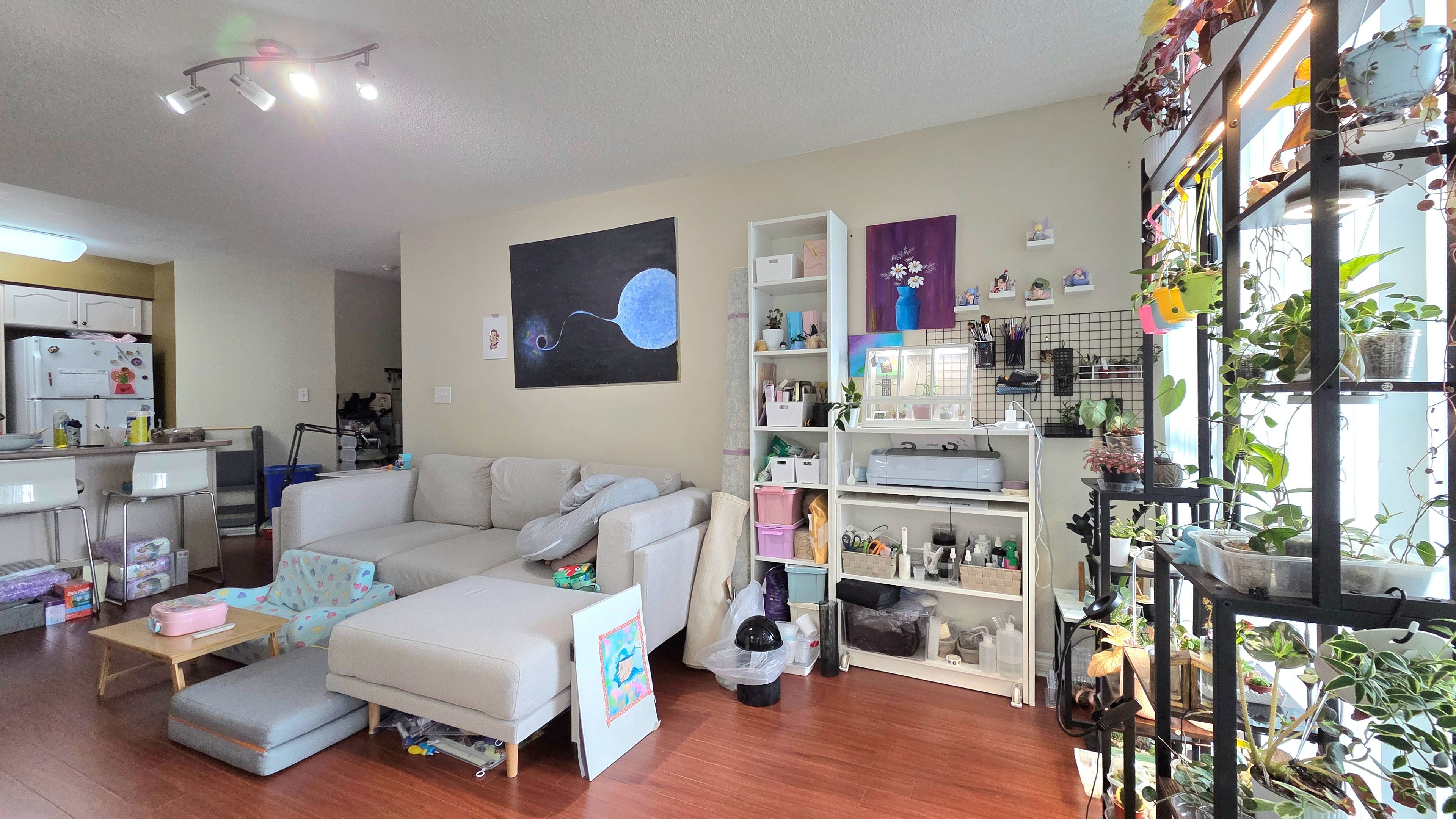 • Open-concept living area with a functional kitchen and breakfast bar.