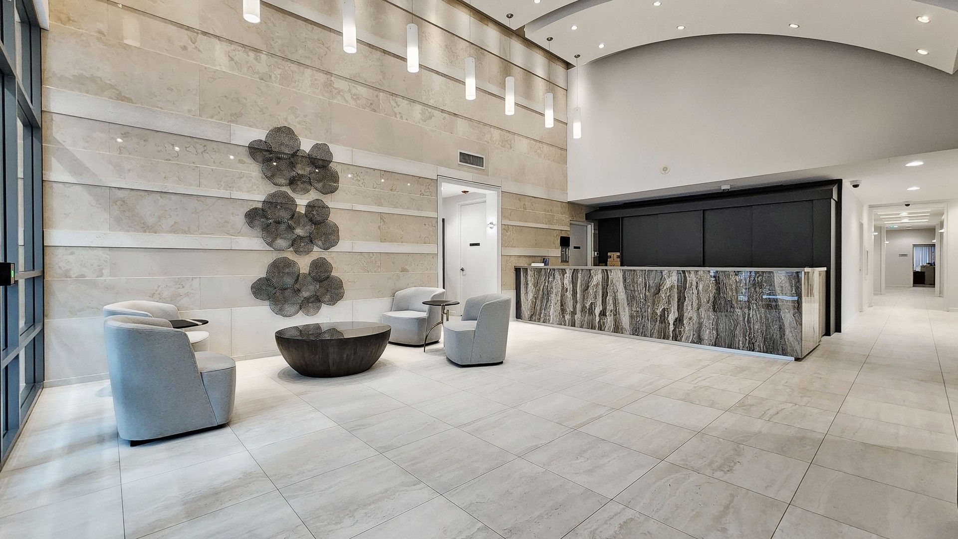 • Building amenities include indoor pool, sauna, bowling alley, and theater room.