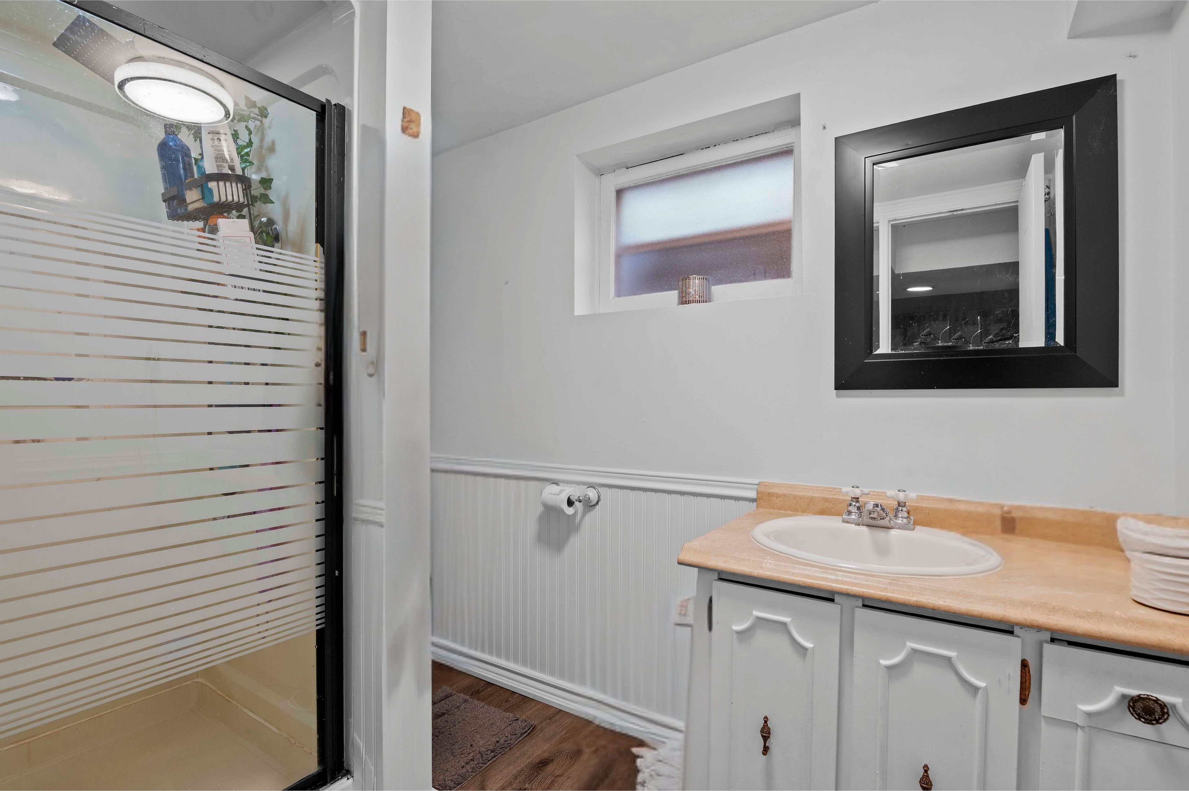 • Finished basement includes full bathroom, great for guests and recreation.