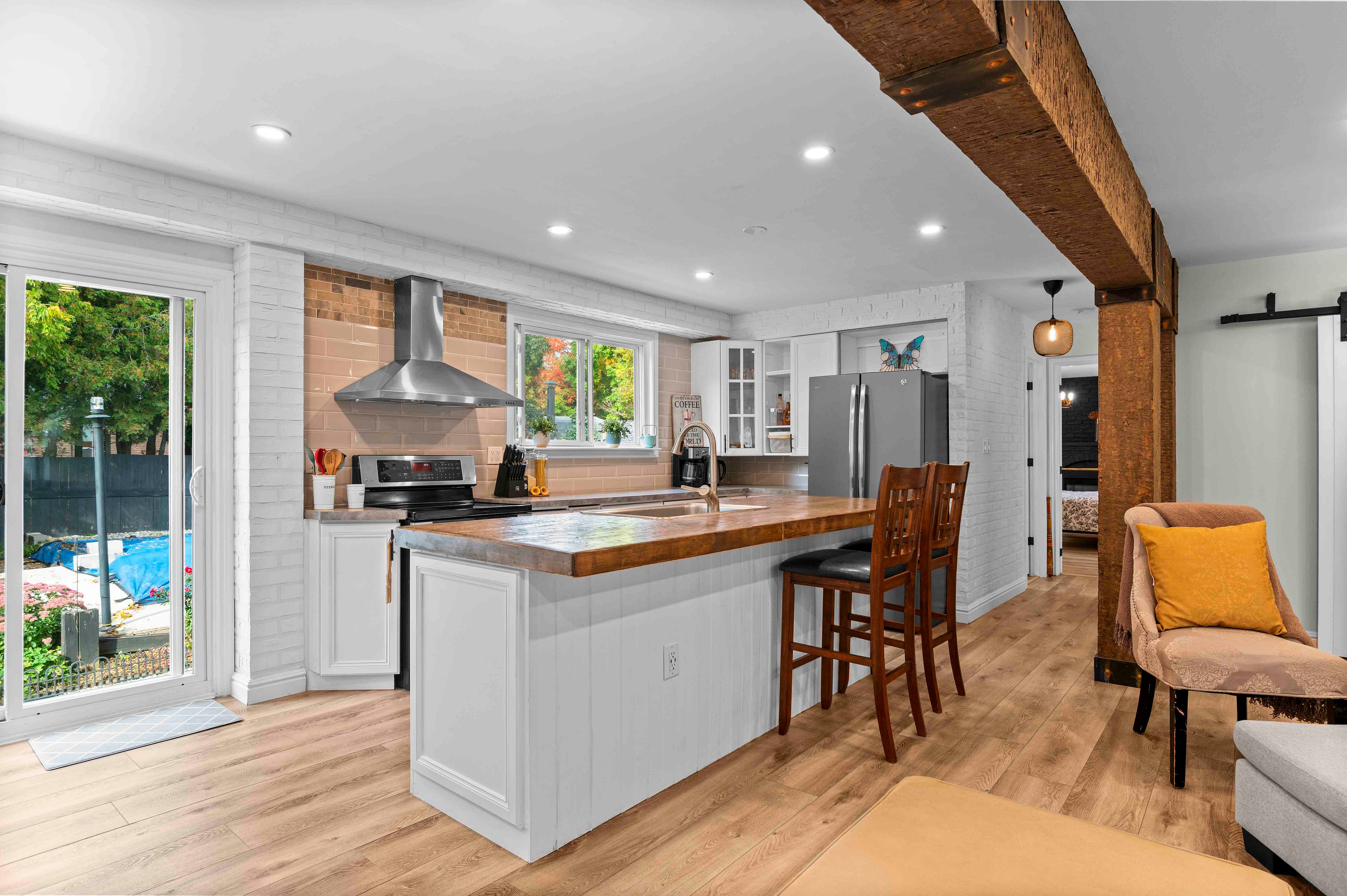A versatile, move-in ready home offering a rare combination of space, updates, and backyard amenities. With 5 bedrooms, 3 full bathrooms, and a finished basement, the home easily adapts to a variety of needs, whether that means extra bedrooms, a home office, or additional living space. Tasteful refurbishments throughout create a warm, inviting feel, while the kitchen remains the heart of the home, connecting naturally with the main living areas. The finished basement adds even more usable space and includes a full bathroom, making it ideal for guests, recreation, or family use. Outside, the landscaped backyard is built for enjoyment, complete with an in-ground pool and three convenient access points, including one directly from a bathroom, a thoughtful feature for pool days. Set in a mature grand valley neighbourhood and within walking distance to the school and rec centre, this home offers comfort, versatility, and a lifestyle that's easy to settle into.