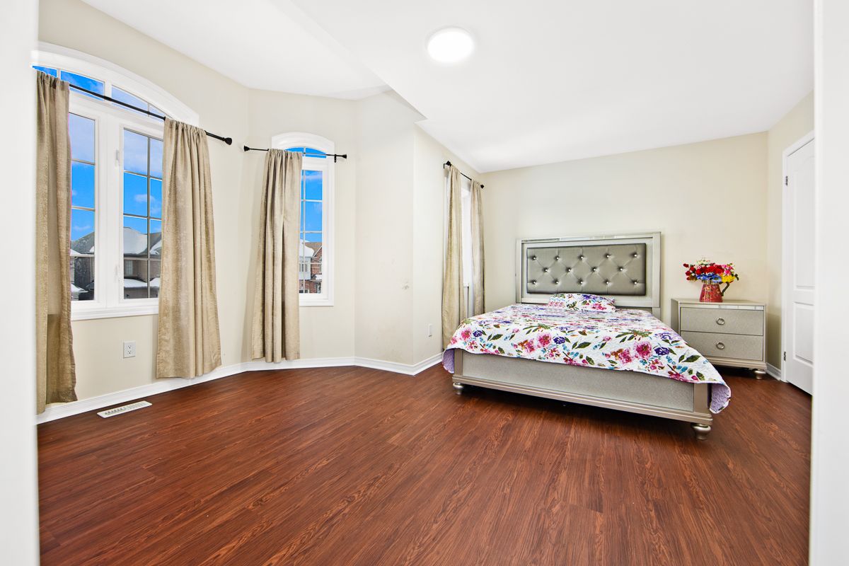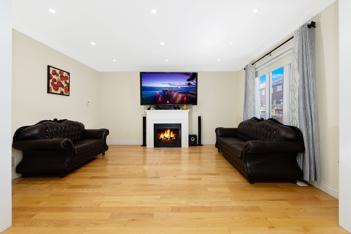 Bright and spacious 4+3 bedroom, 5 bathroom detached home with finished basement and no sidewalk. Main floor features include crown molding and pot lights in the family room and kitchen, stainless steel kitchen appliances, tankless hot water system, nine-foot smooth ceilings, kitchen with breakfast area overlooking the backyard, and a separate main-floor study/office. The home offers two bedrooms with private ensuites and two bedrooms connected by a jack-and-jill ensuite. Finished basement includes a kitchen, three bedrooms, and a bathroom. Interior access to the garage. Partially interlocked front driveway with six total parking spaces. Located near schools, parks, transit, and shopping.