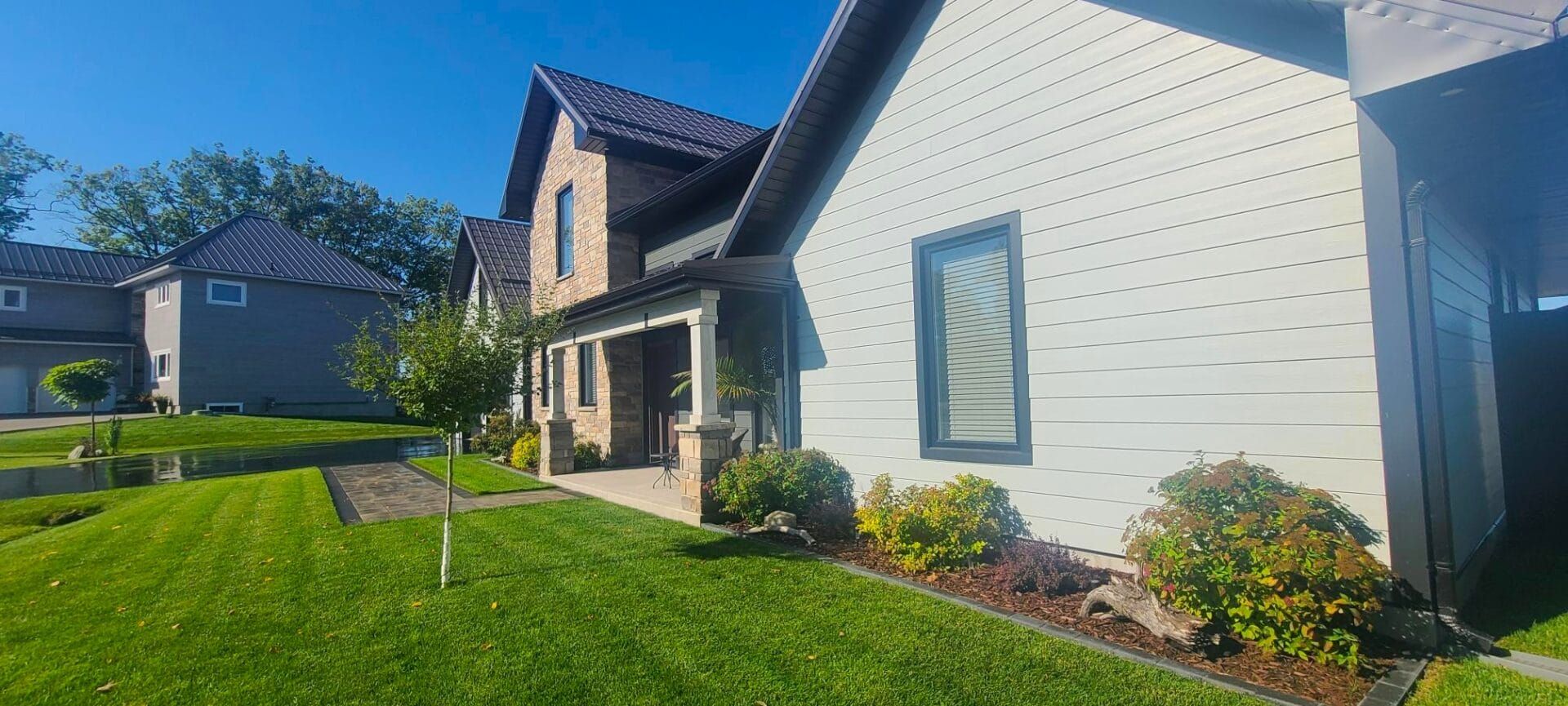 Welcome to picturesque swan lane, where luxury meets tranquility. It is located in a cul-de-sac, on a large premium & private waterfront lot. Wake up to the warmth of the morning sunrise on the front porch and unwind with breathtaking sunset views from the back patio. It is beautifully landscaped with kentucky bluegrass, an assortment of trees, shrubs, lighting & walkways and is equipped with a b-hyve irrigation system. It is heated with a navien combie-boiler for radiant in-floor heating throughout the main floor/garage and a furnace to heat the second floor. It is also equipped with central air, a central vac and an hrv. It has a newly paved driveway & a large double wide ev-ready garage. The master is on the main floor and the 2 bedrooms are on the second floor. On this level, there is large bonus room that could easily be converted into a secondary master. The living boasts a one-of-a-kind accent wall, 18' high ceilings, a modern 50" double glass, 3-sided gas fireplace with driftwood logs & a 72" eight blade fan. The kitchen features soft close cabinetry, built-in stainless-steel appliances, a pot filler, 1 1/4" quartz countertops and a walk-in pantry with a bar fridge. The peace and serenity that this property offers, along with seclusion, nature and wildlife, are sure to make a lasting impression. Words cannot justify this gem of a property, as this is a once in a lifetime opportunity. Let the end of our dream, be the beginning of yours. Vacant land condominium. Monthly maintenance fee of $170. 26 covers the maintenance of common areas. *for additional property details click the brochure icon below*
