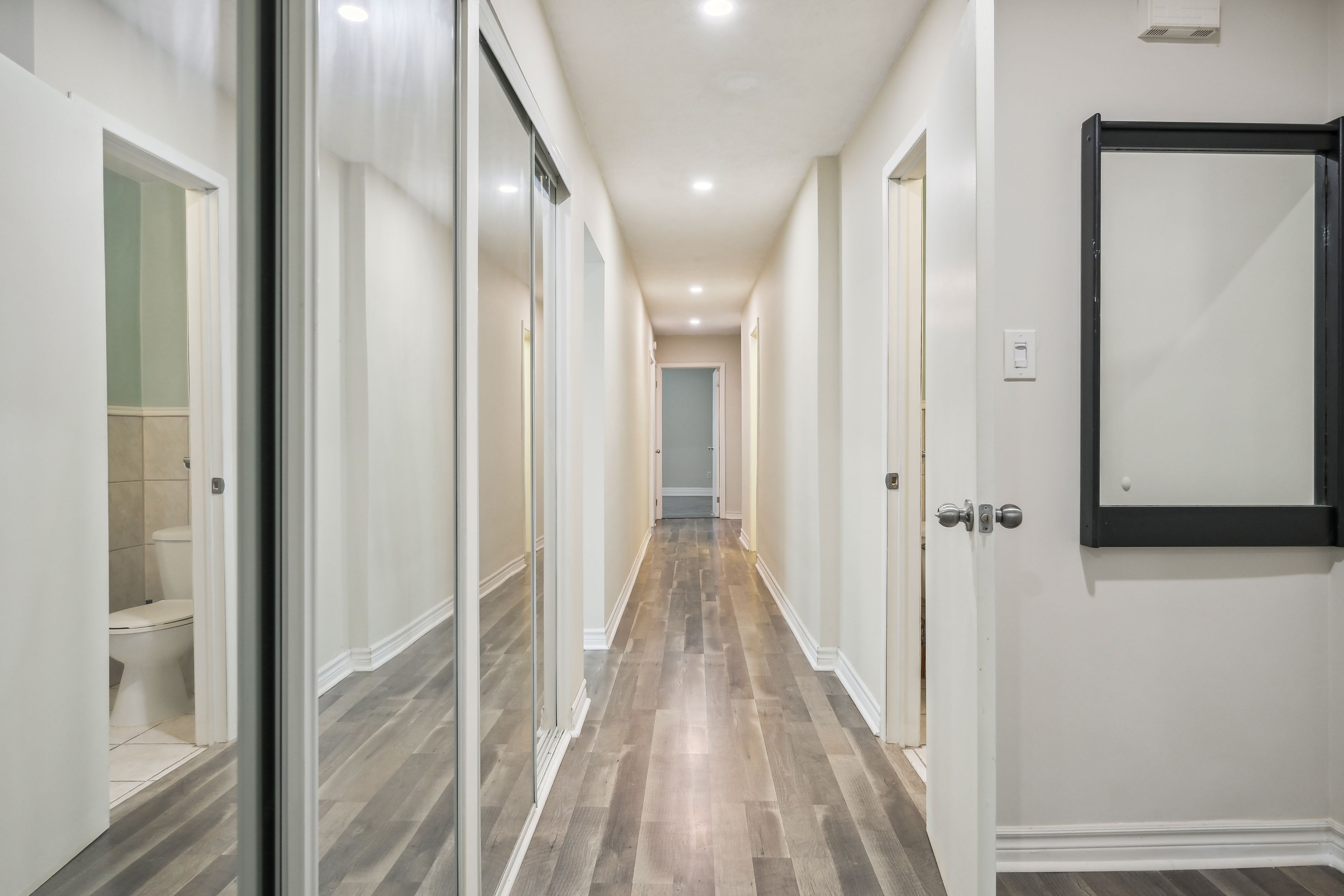Experience convenient living in one of long branch's most sought-after neighbourhoods in etobicoke, toronto, just steps from the lake. This beautifully appointed 2-bedroom, 1. 5-bathroom unit offers comfort and style. Enjoy an open balcony perfect for relaxing, with bright living and dining areas enhanced by pot lights and laminate flooring throughout. The unit is fully renovated, sound proofed, with brand new air conditioner installed, and with in-suite laundry and balcony and gated parking. Front and back door entry/exit. Tenant green space in front and back, great curb appeal with brick exterior, walking distance to junior and high schools, lake ontario, parks, ttc, gardiner expressway, close to long branch go train. **extras** gated electronic parking - use of one surface parking. Pets allowed with restrictions.